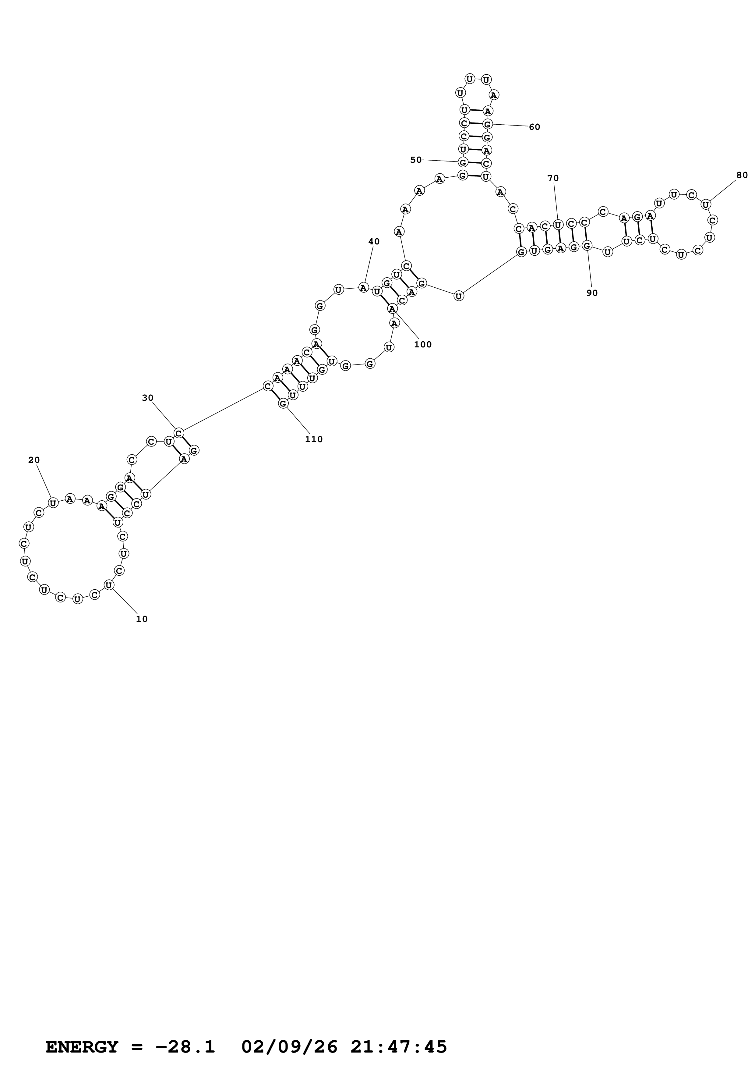 Fold Fold.fasta Fold.ct --loop 30 --maximum 20 --percent 10 --temperature 310.15 --window 3
