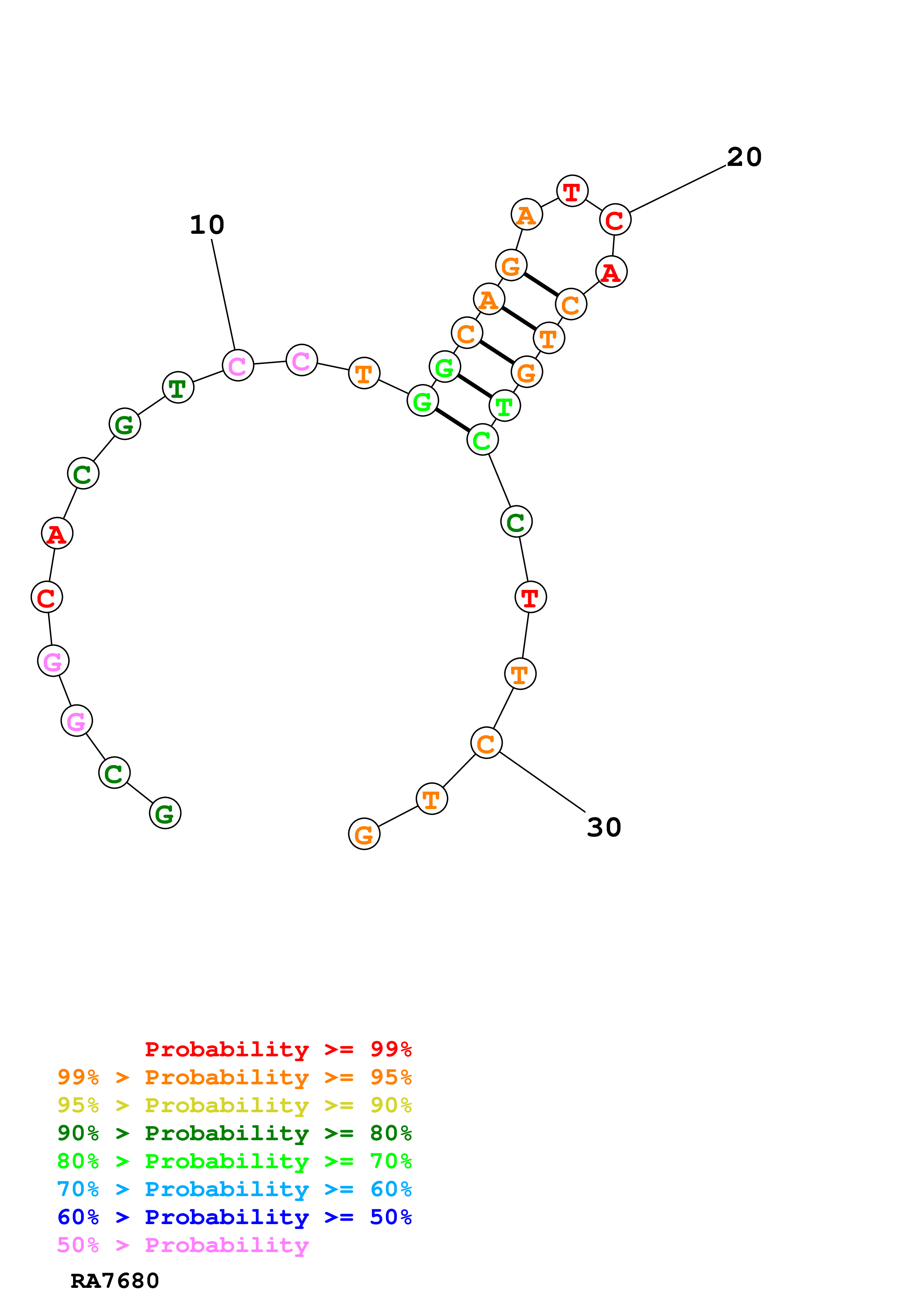 (Predict a secondary structure of probable base pairs, which might include pseudoknots.)