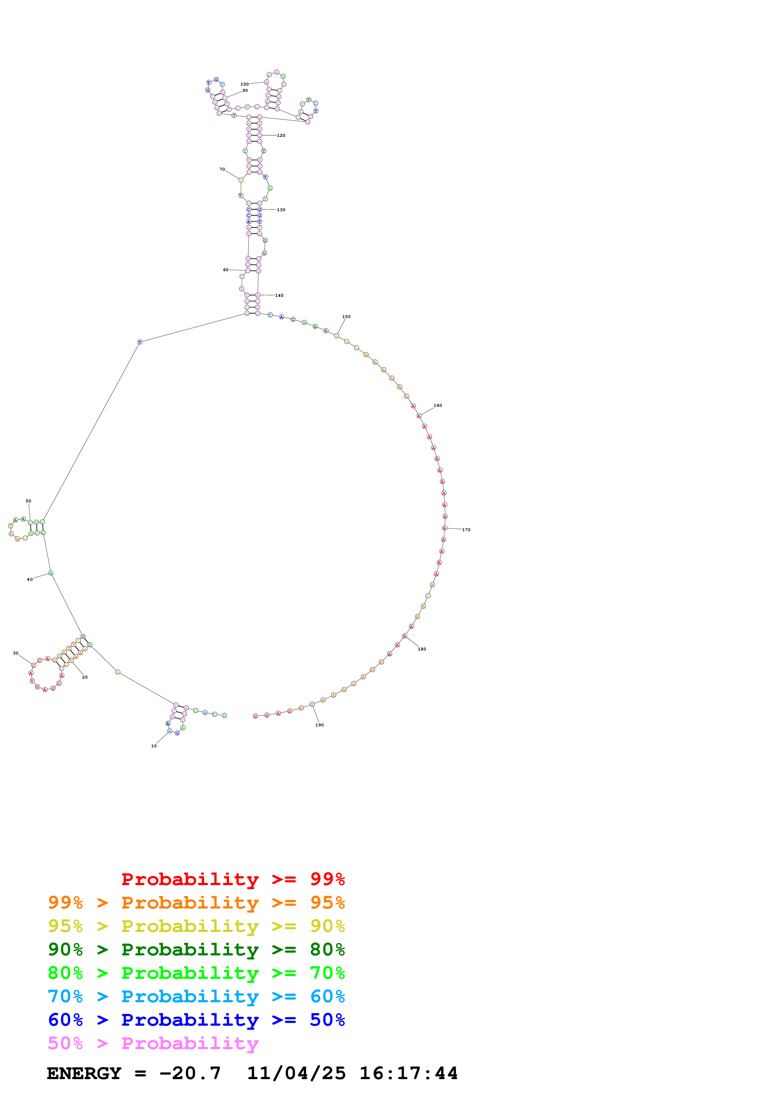 (Predict a secondary structure of probable base pairs, which might include pseudoknots.)