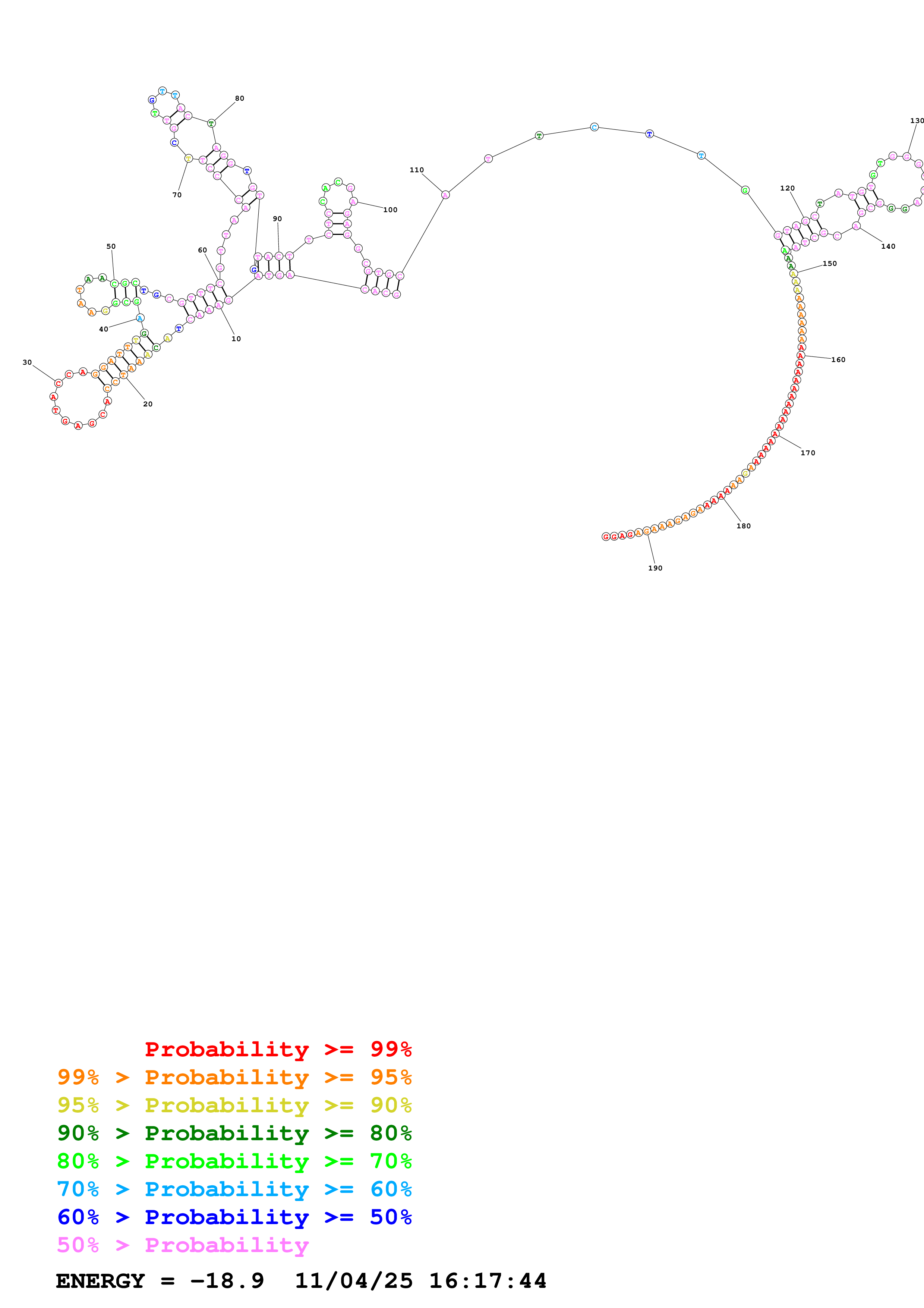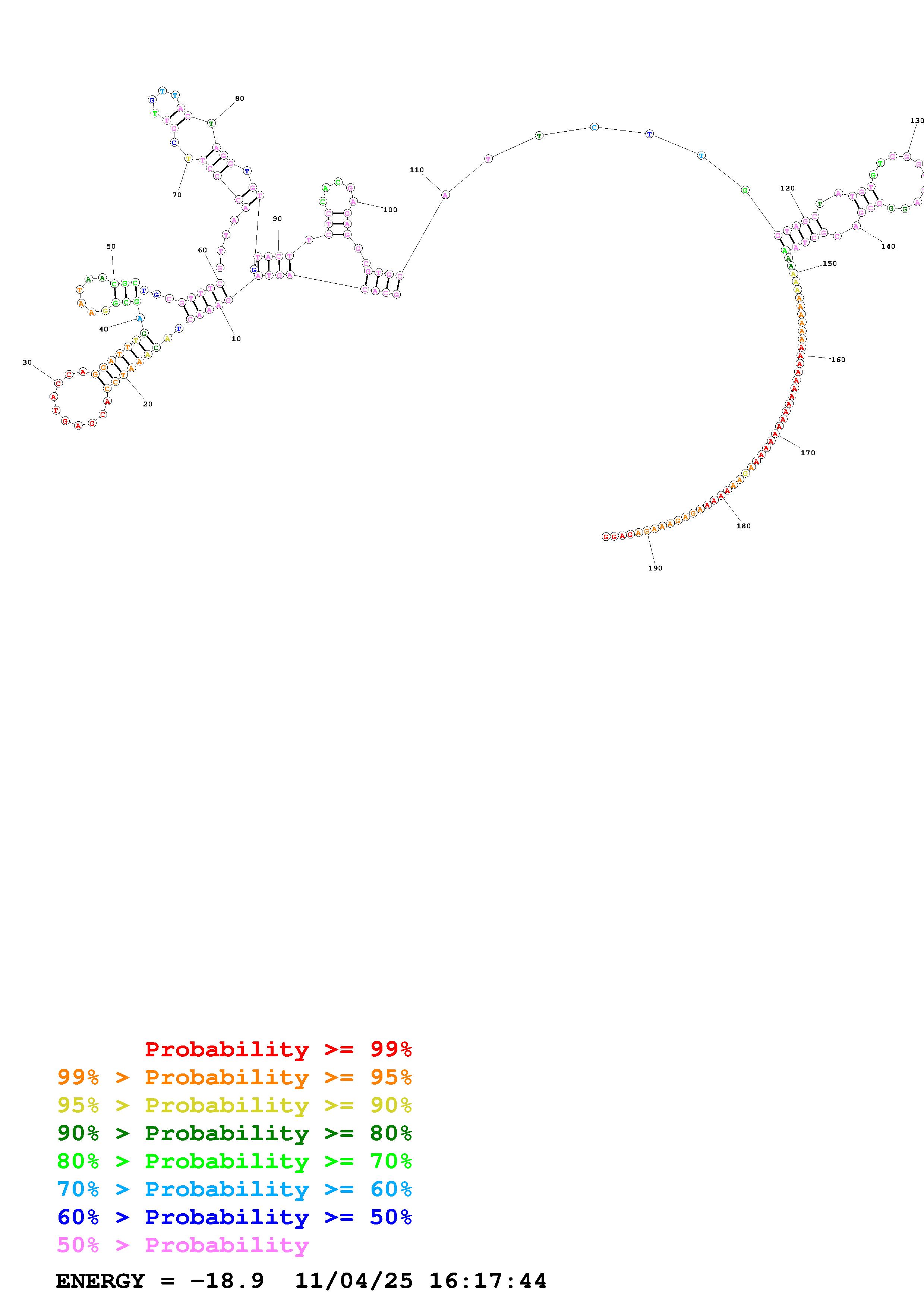 Fold Predict1.fasta Fold.ct --DNA --loop 30 --maximum 20 --percent 10 --temperature 310.15 --window 3