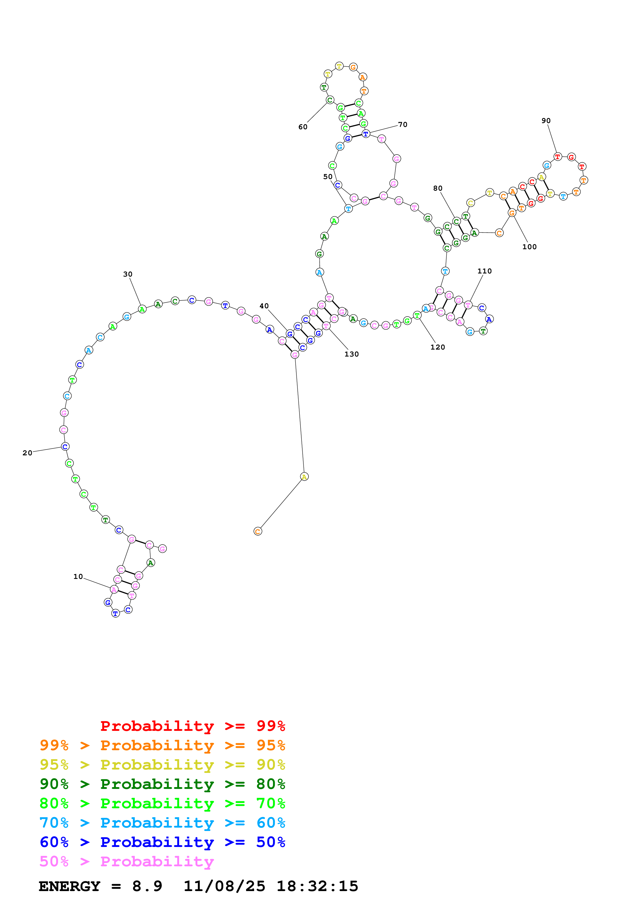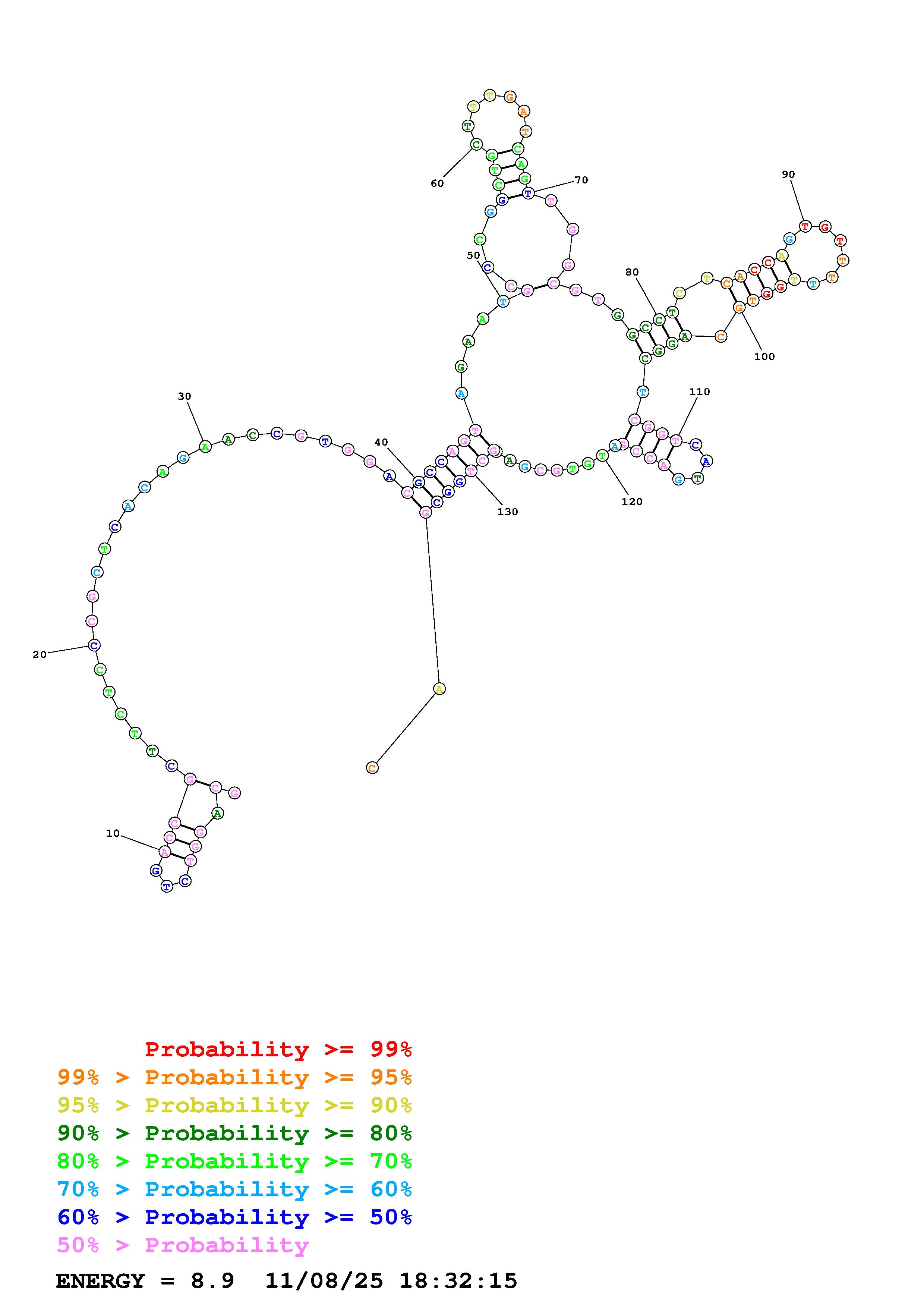 Fold Predict1.fasta Fold.ct --DNA --loop 30 --maximum 20 --percent 10 --temperature 310.15 --window 3