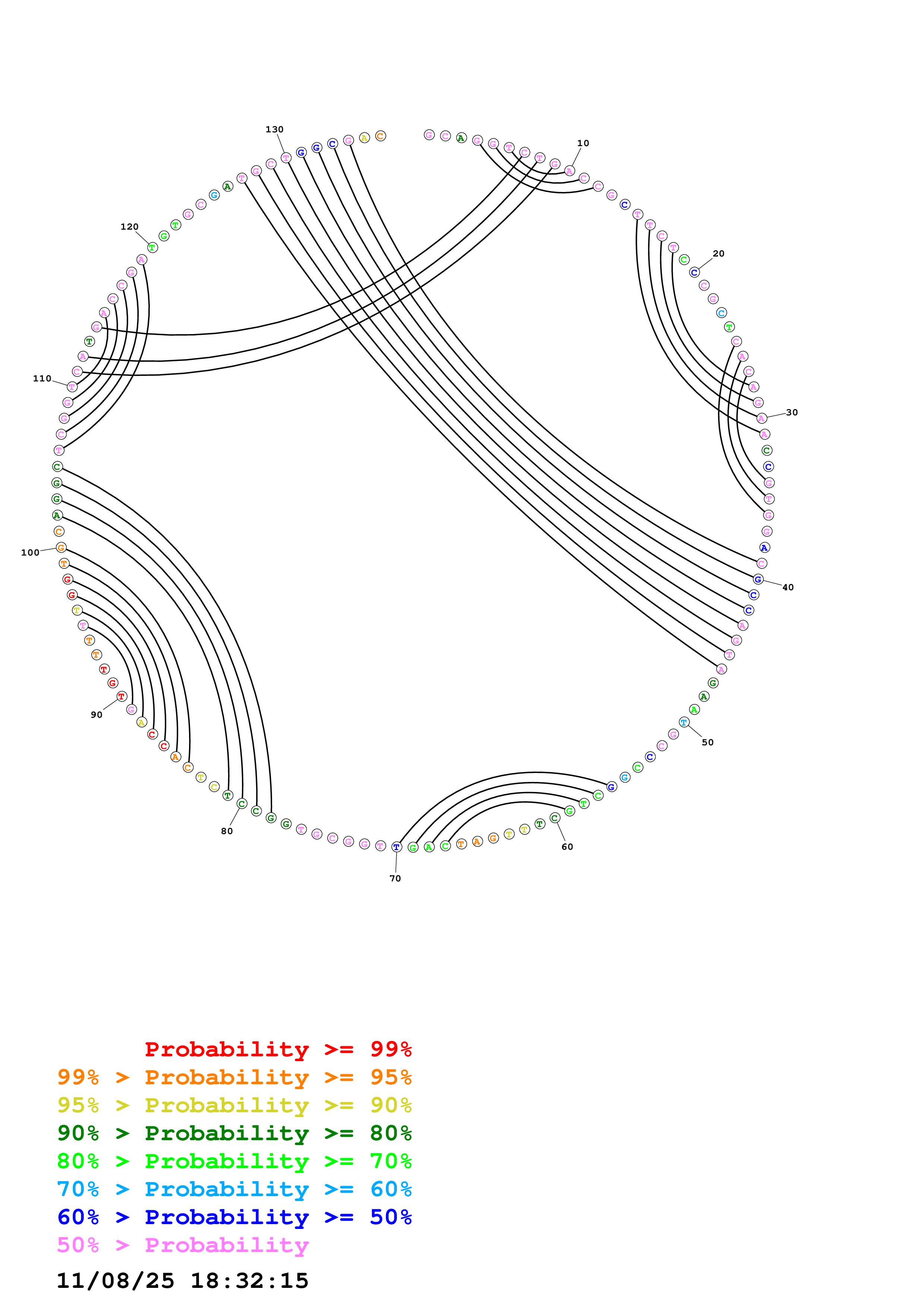 (Predict a secondary structure of probable base pairs, which might include pseudoknots.)