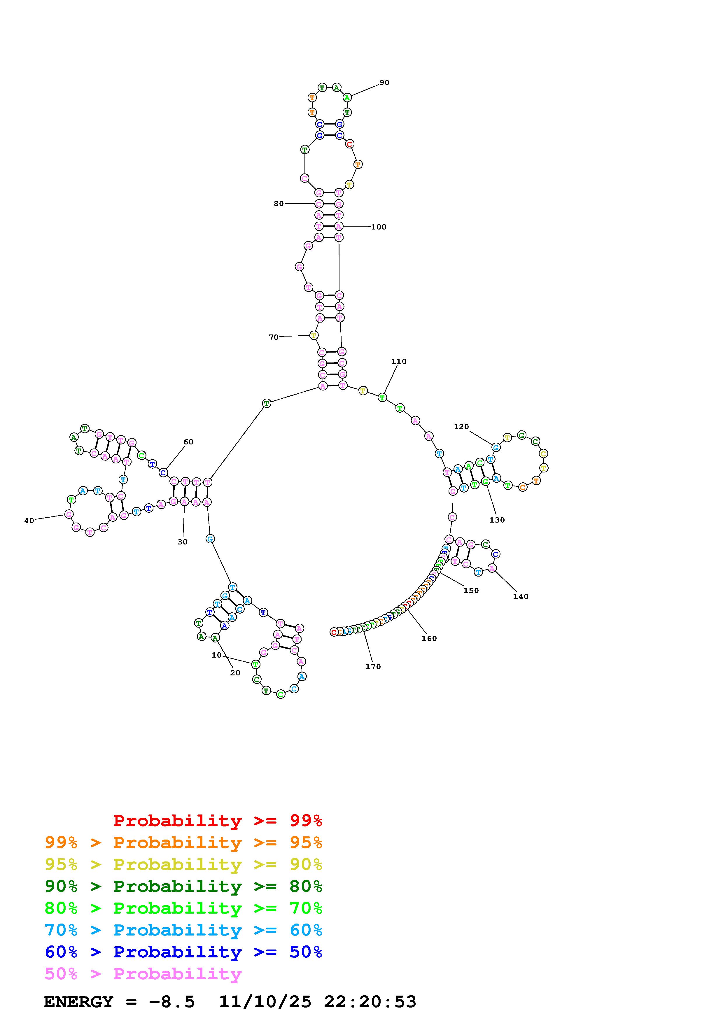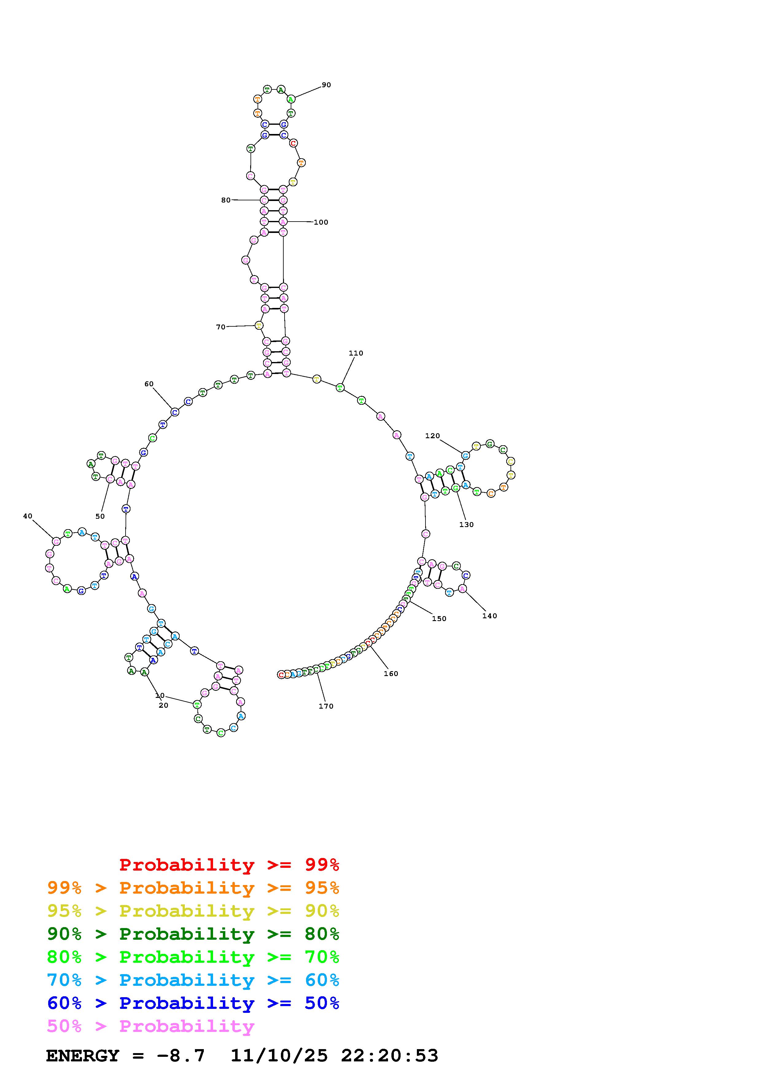 Fold Predict1.fasta Fold.ct --DNA --loop 30 --maximum 20 --percent 10 --temperature 310.15 --window 3