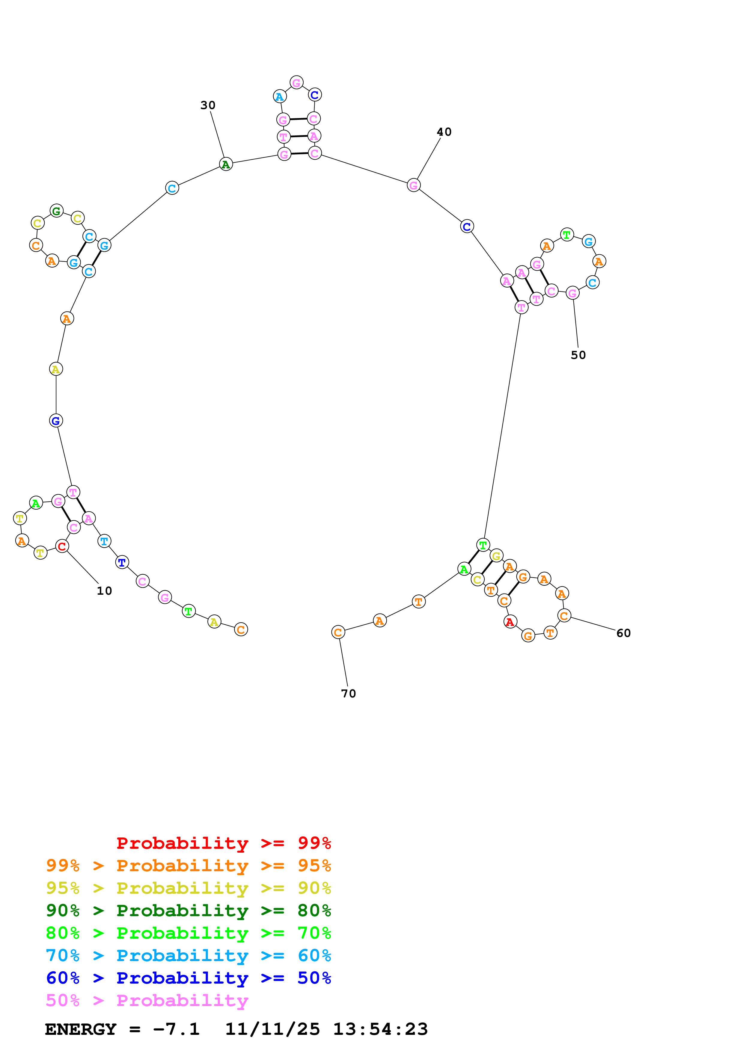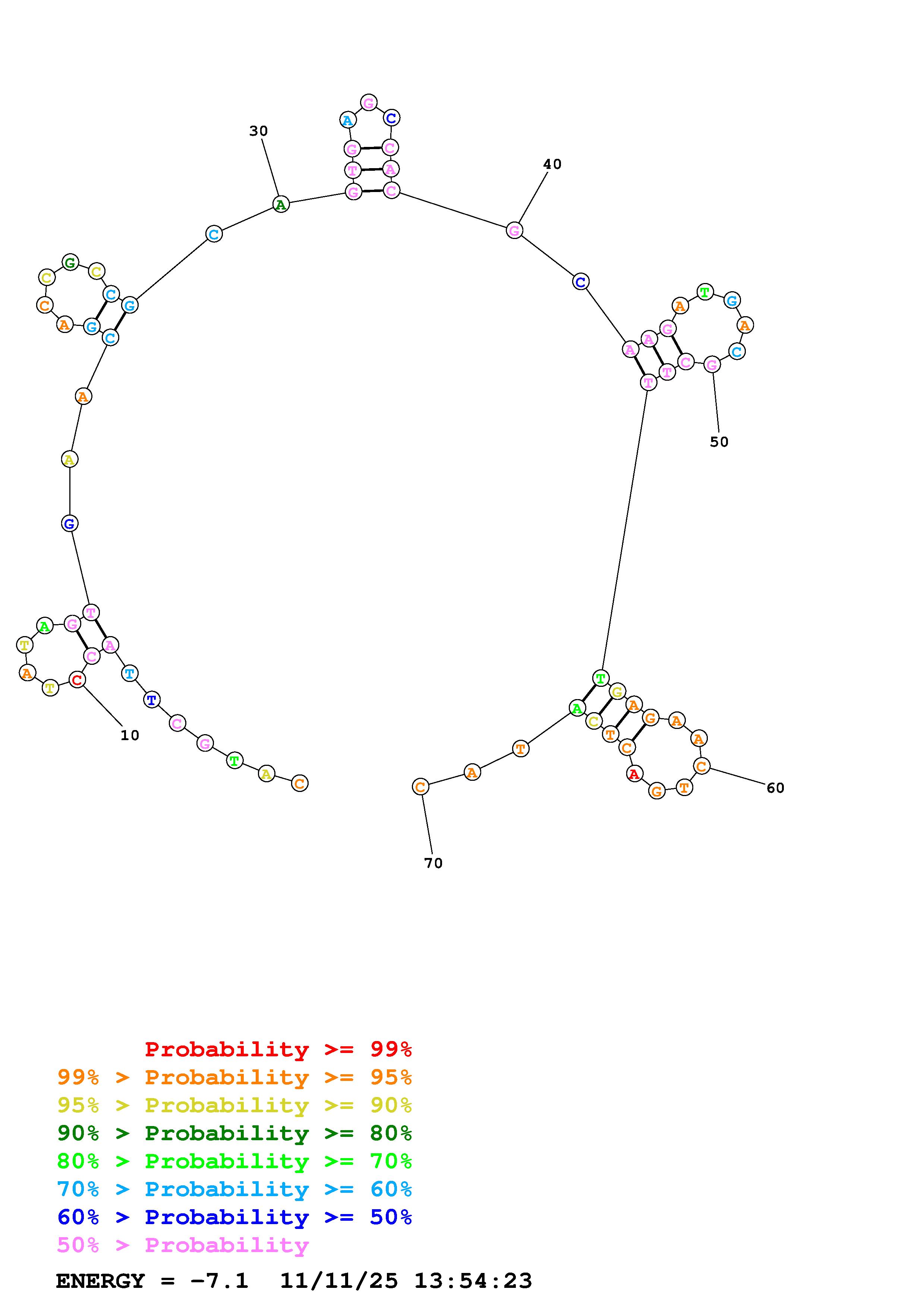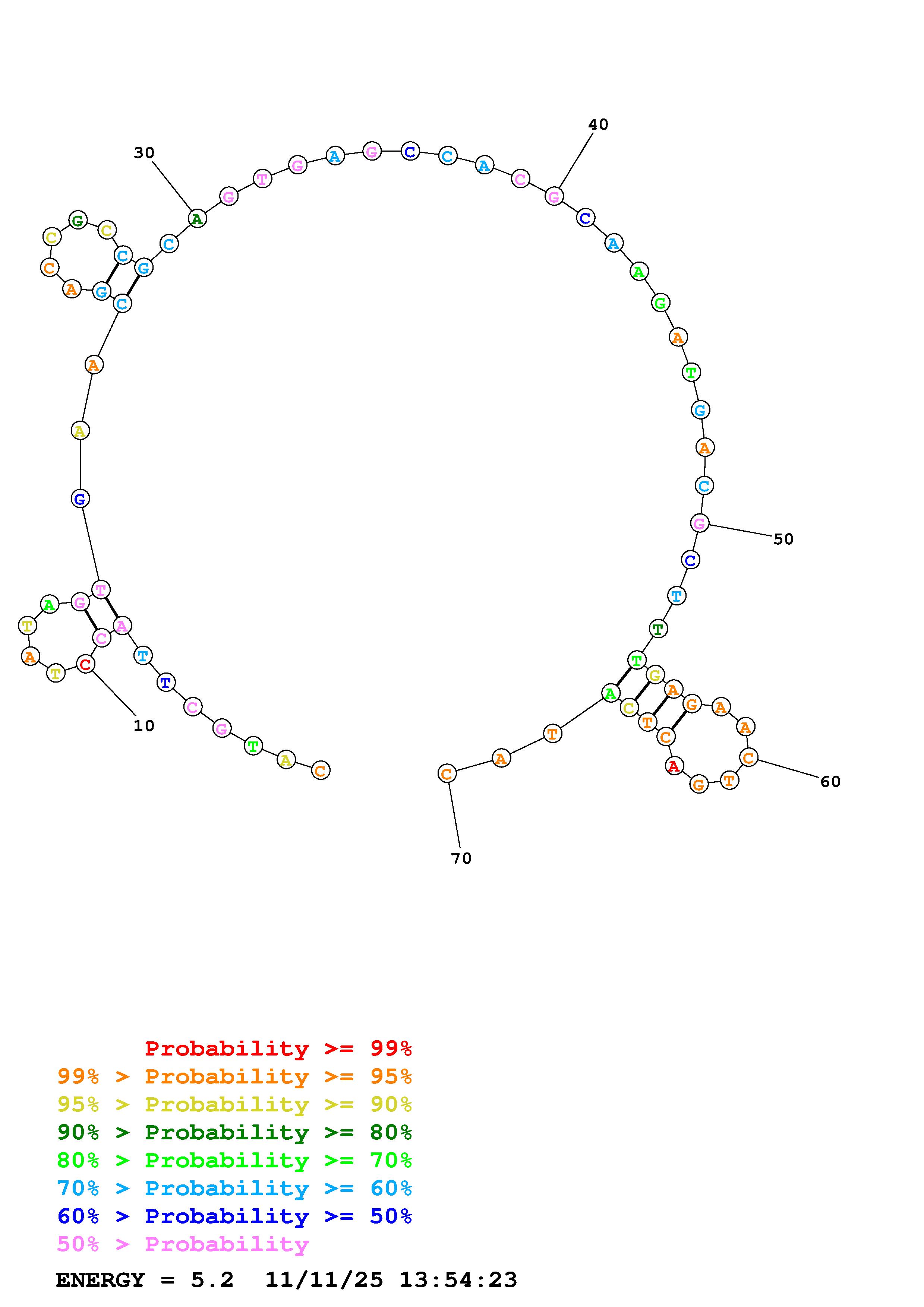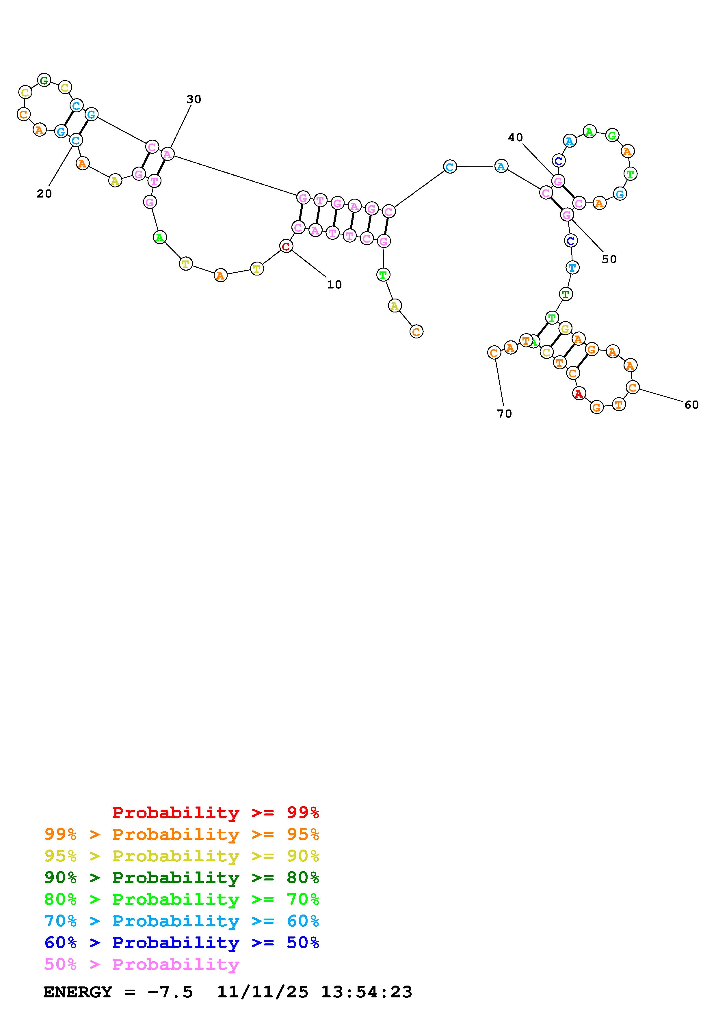 Fold Predict1.fasta Fold.ct --DNA --loop 30 --maximum 20 --percent 10 --temperature 298.15 --window 3