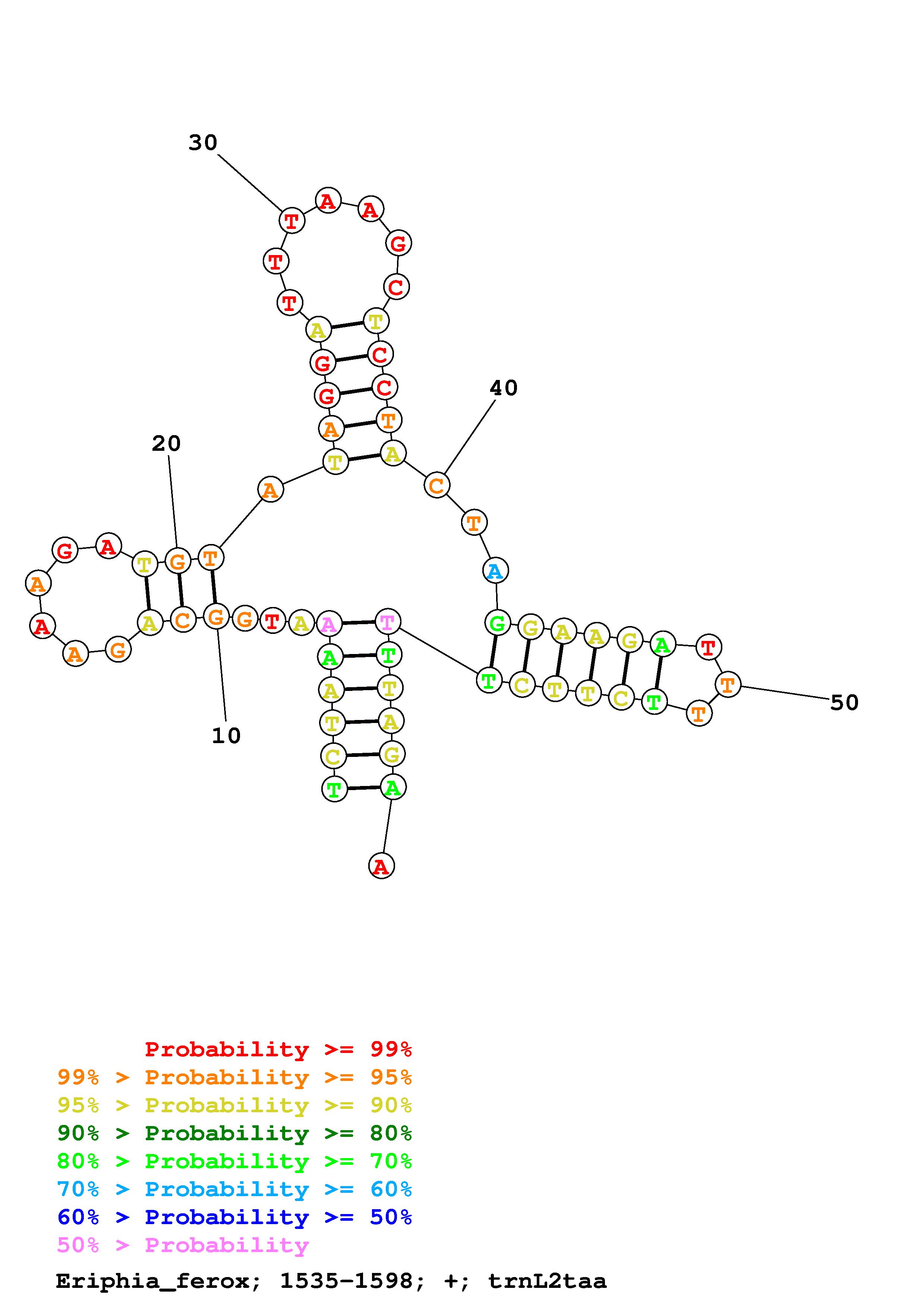 Fold tRNA.fasta Fold.ct --loop 30 --maximum 20 --percent 10 --temperature 310.15 --window 3