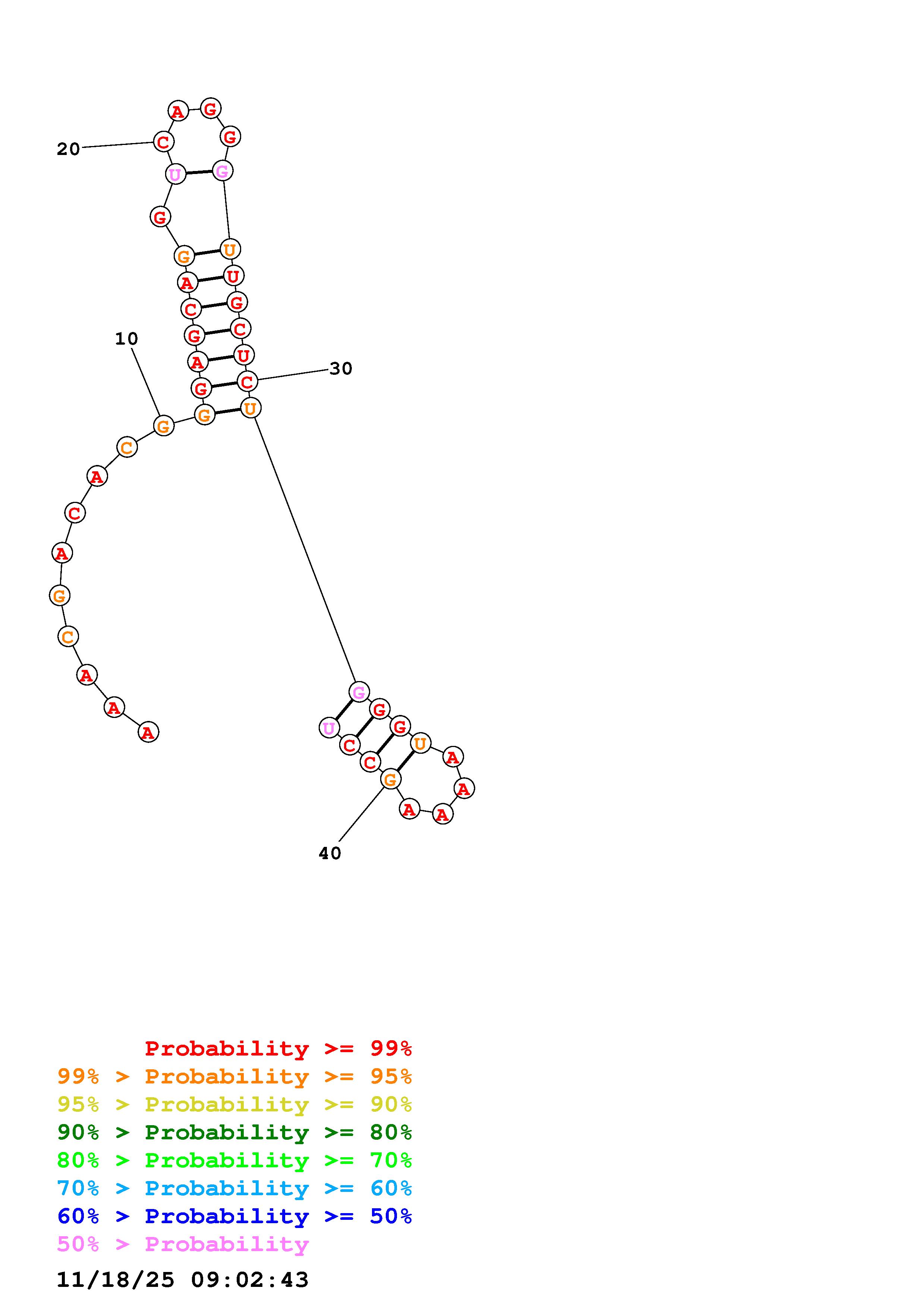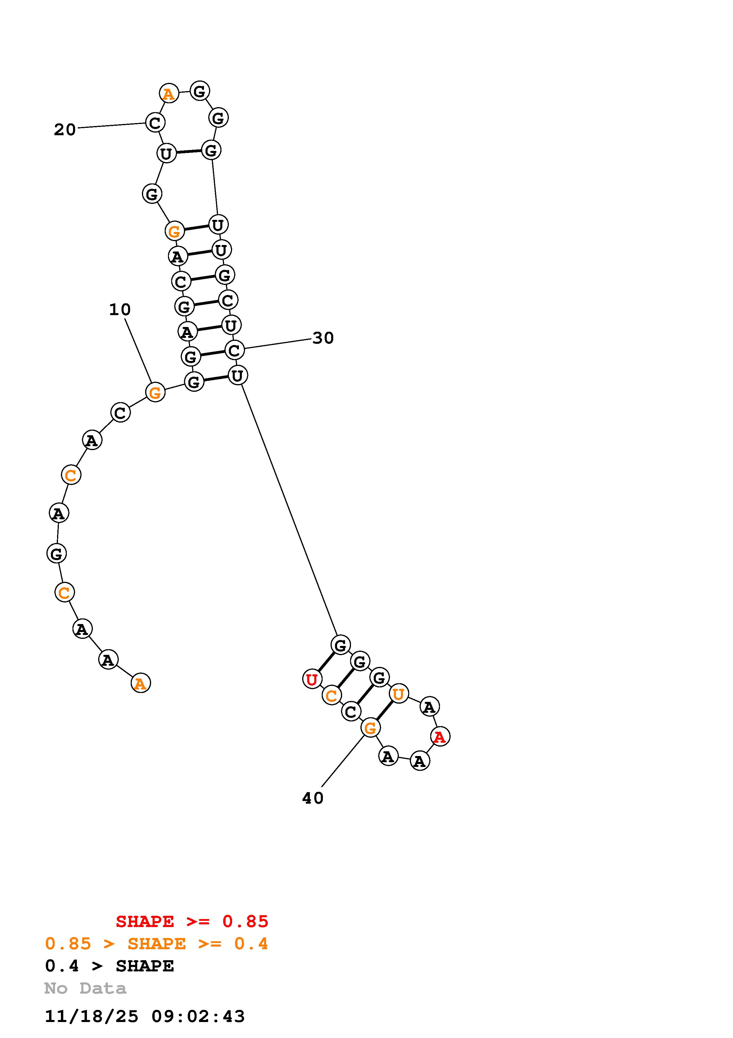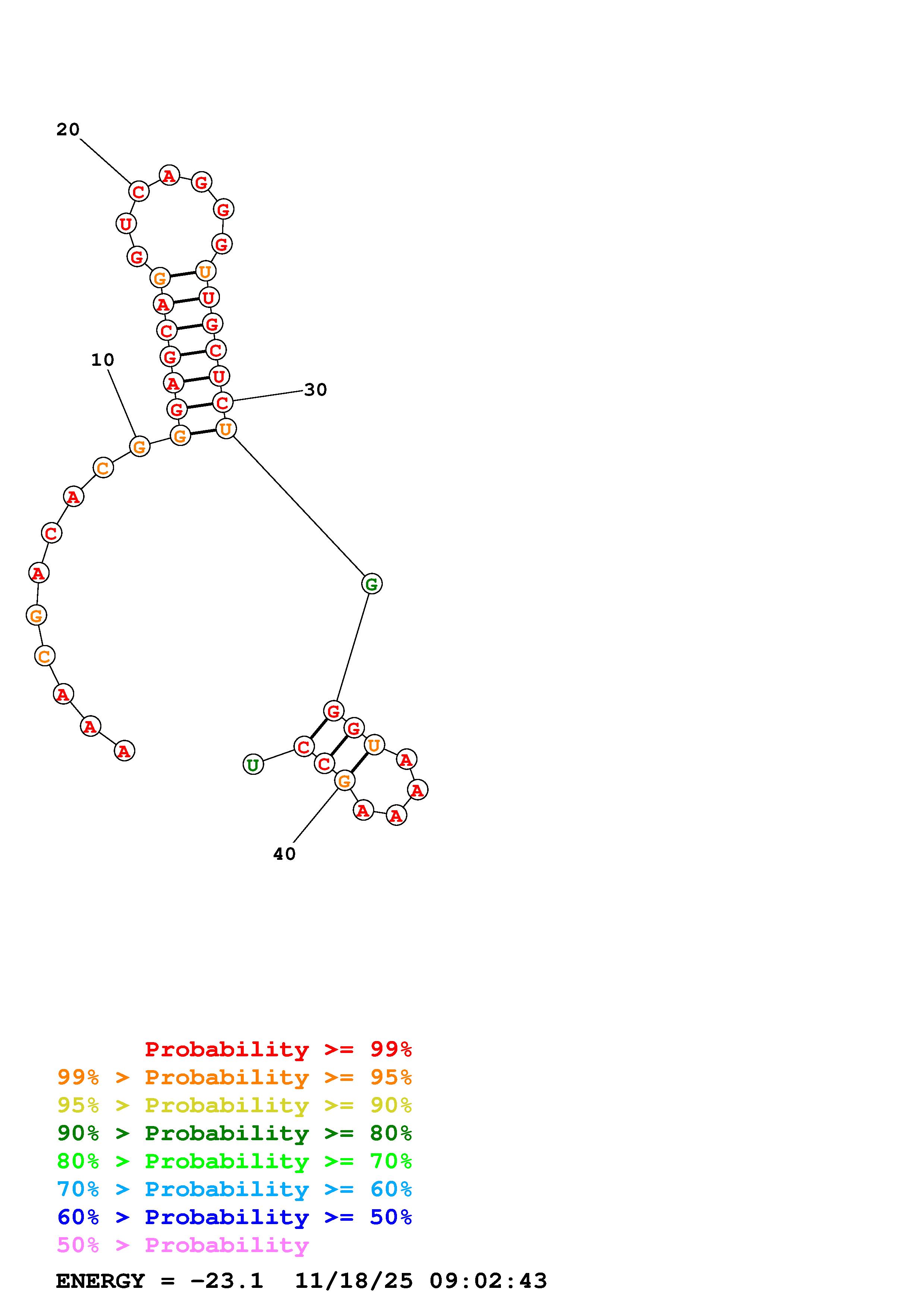 Fold Predict1.fasta Fold.ct --loop 30 --maximum 20 --percent 10 --SHAPE manual_6623_6665.shape --SHAPEintercept -0.6 --SHAPEslope 1.8 --temperature 310.15 --window 3