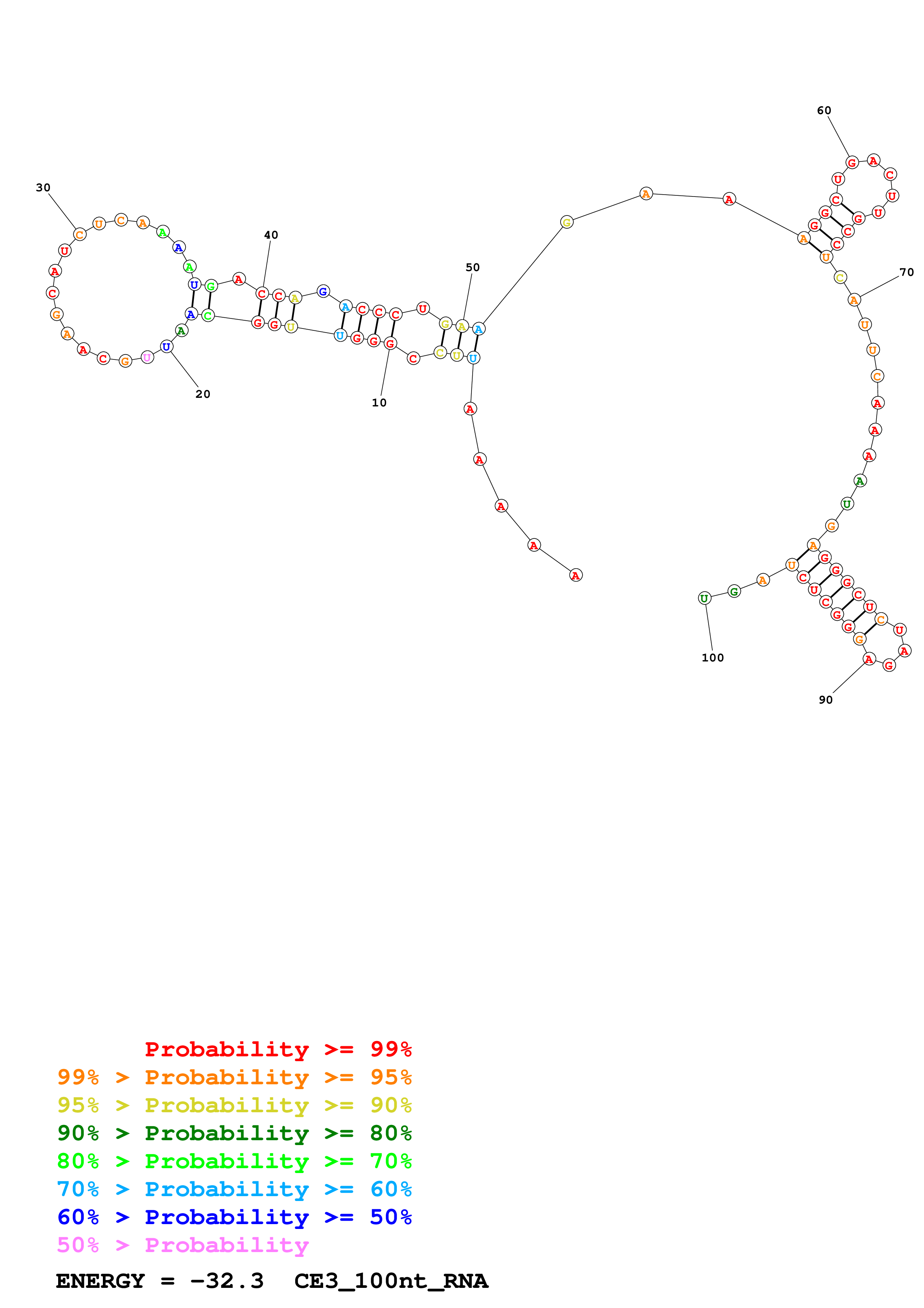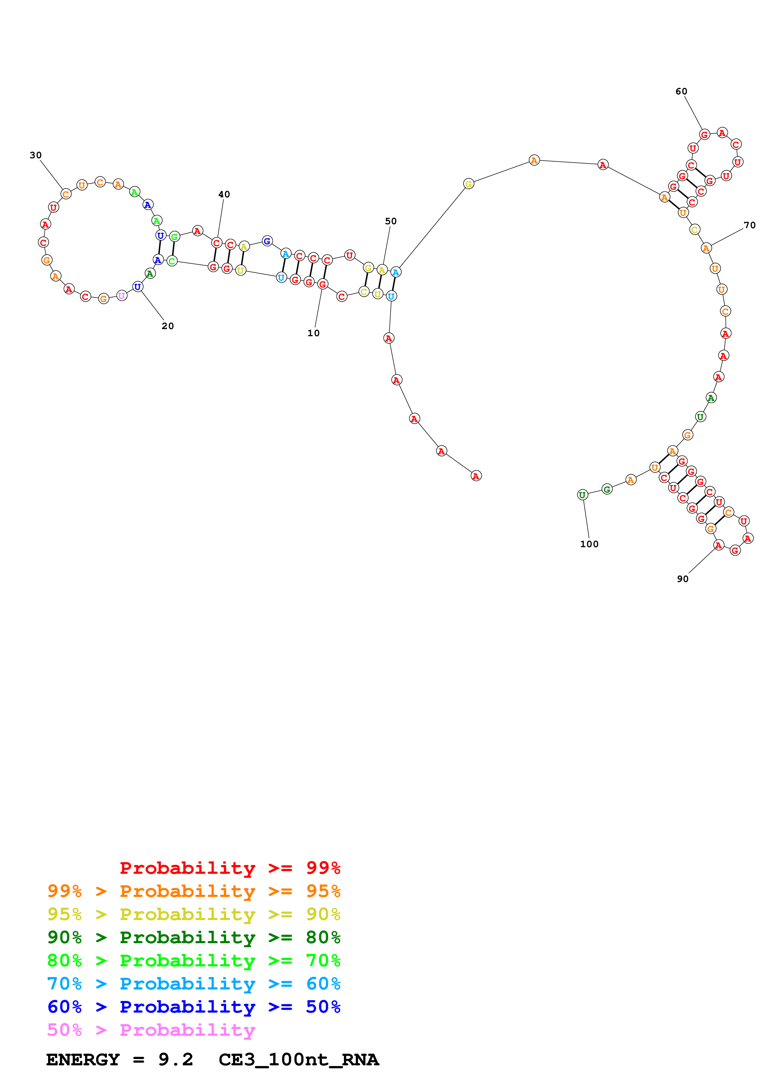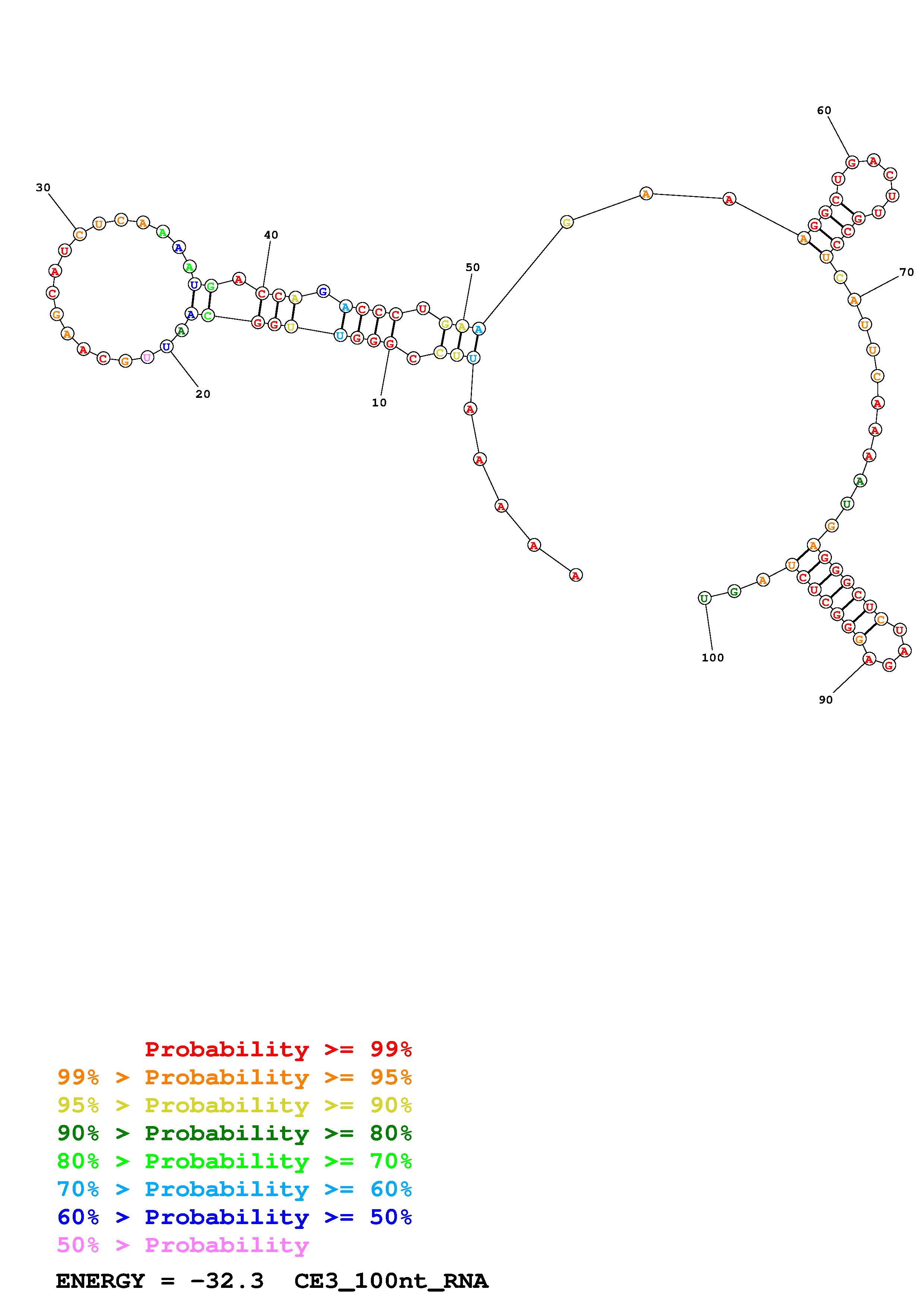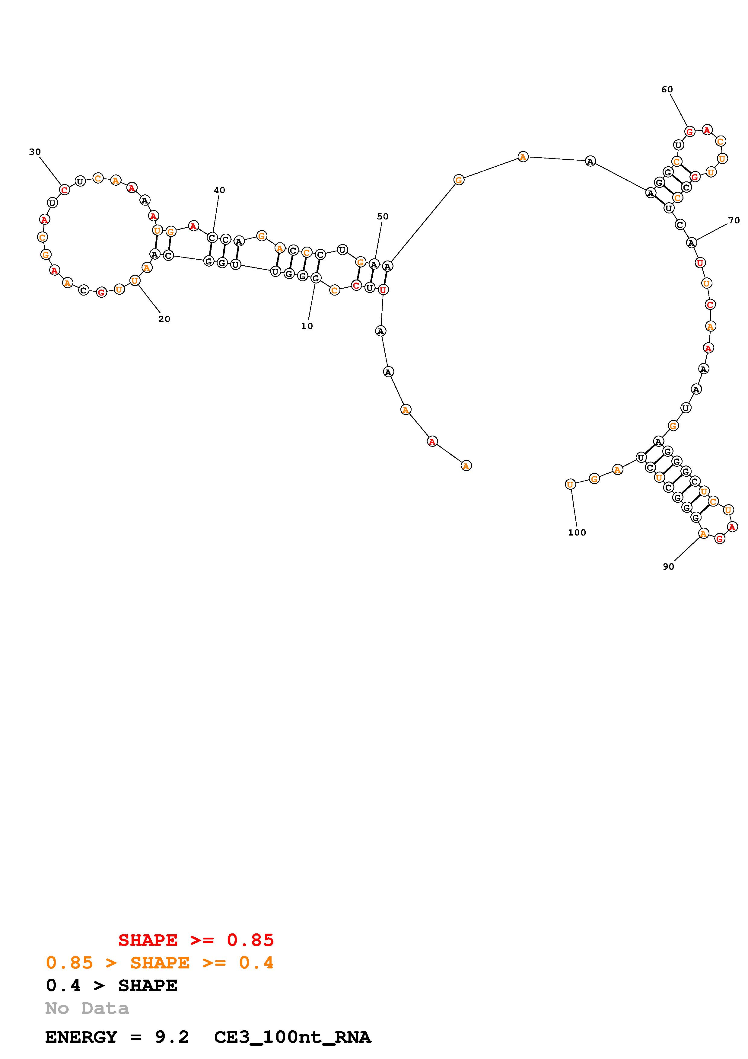 Fold CE3_start_100nt.fasta Fold.ct --loop 30 --maximum 20 --percent 10 --SHAPE CE3_start_LN95_excell_avg_100nt.shape --SHAPEintercept -0.6 --SHAPEslope 1.8 --temperature 310.15 --window 3