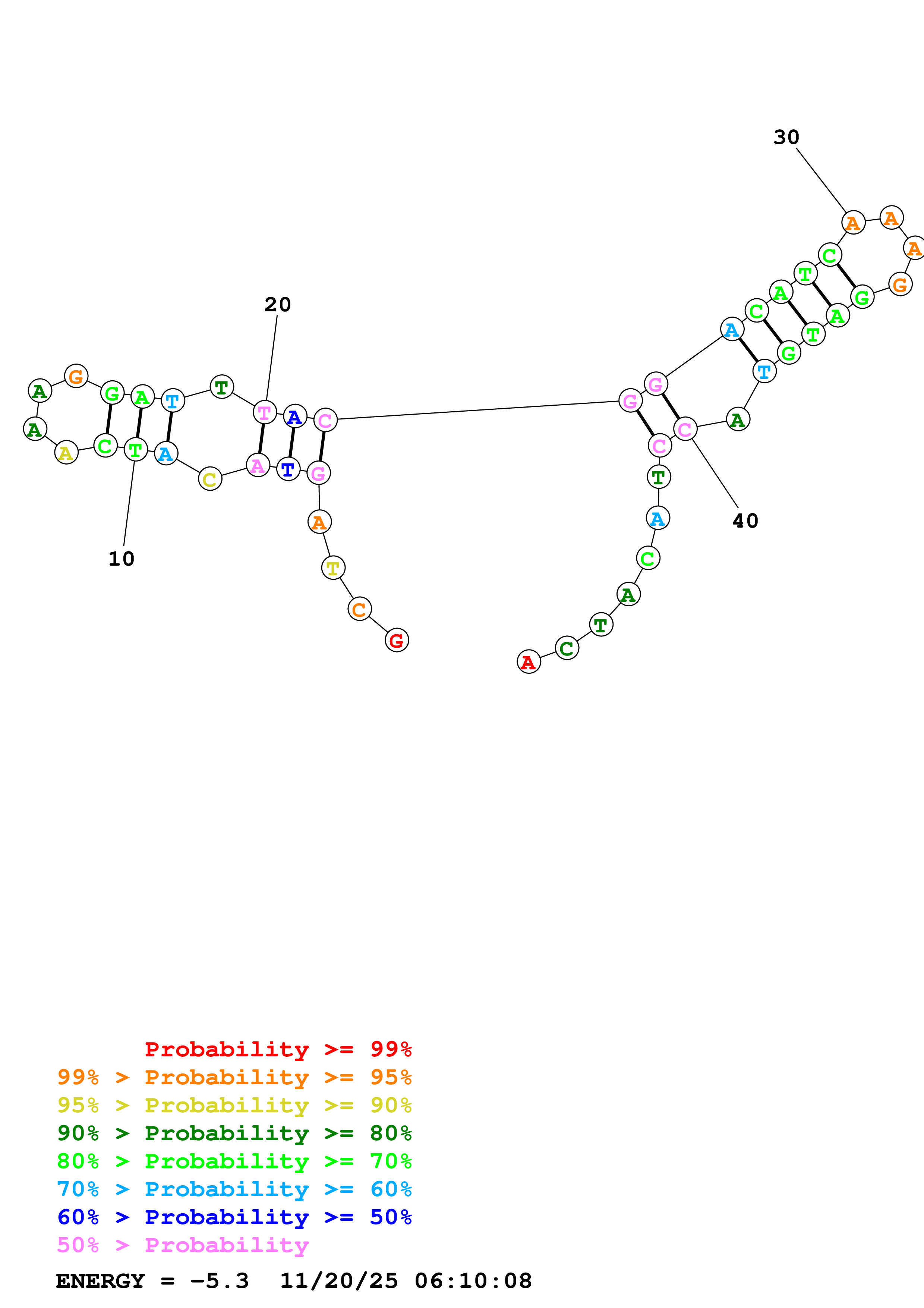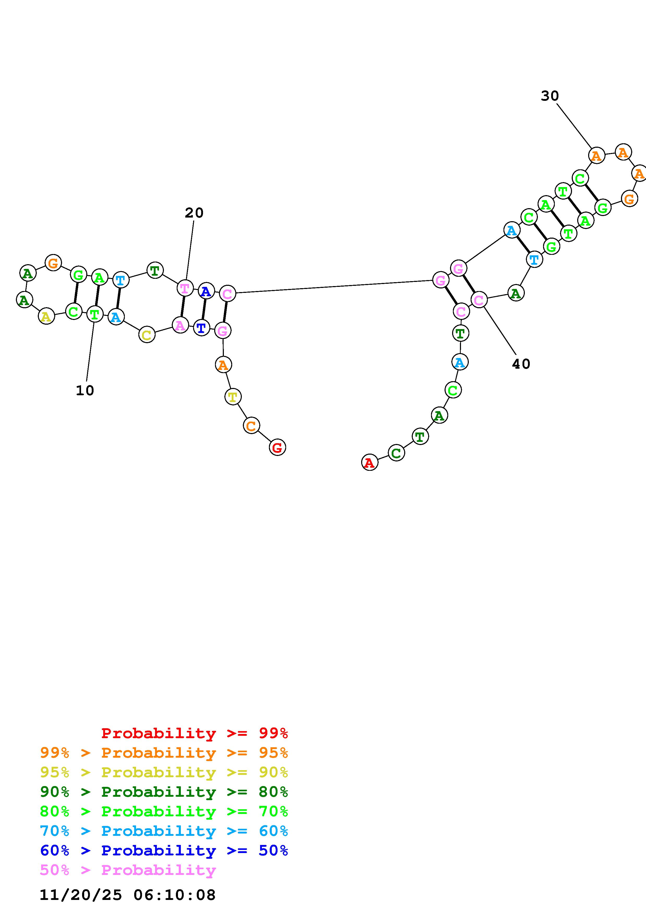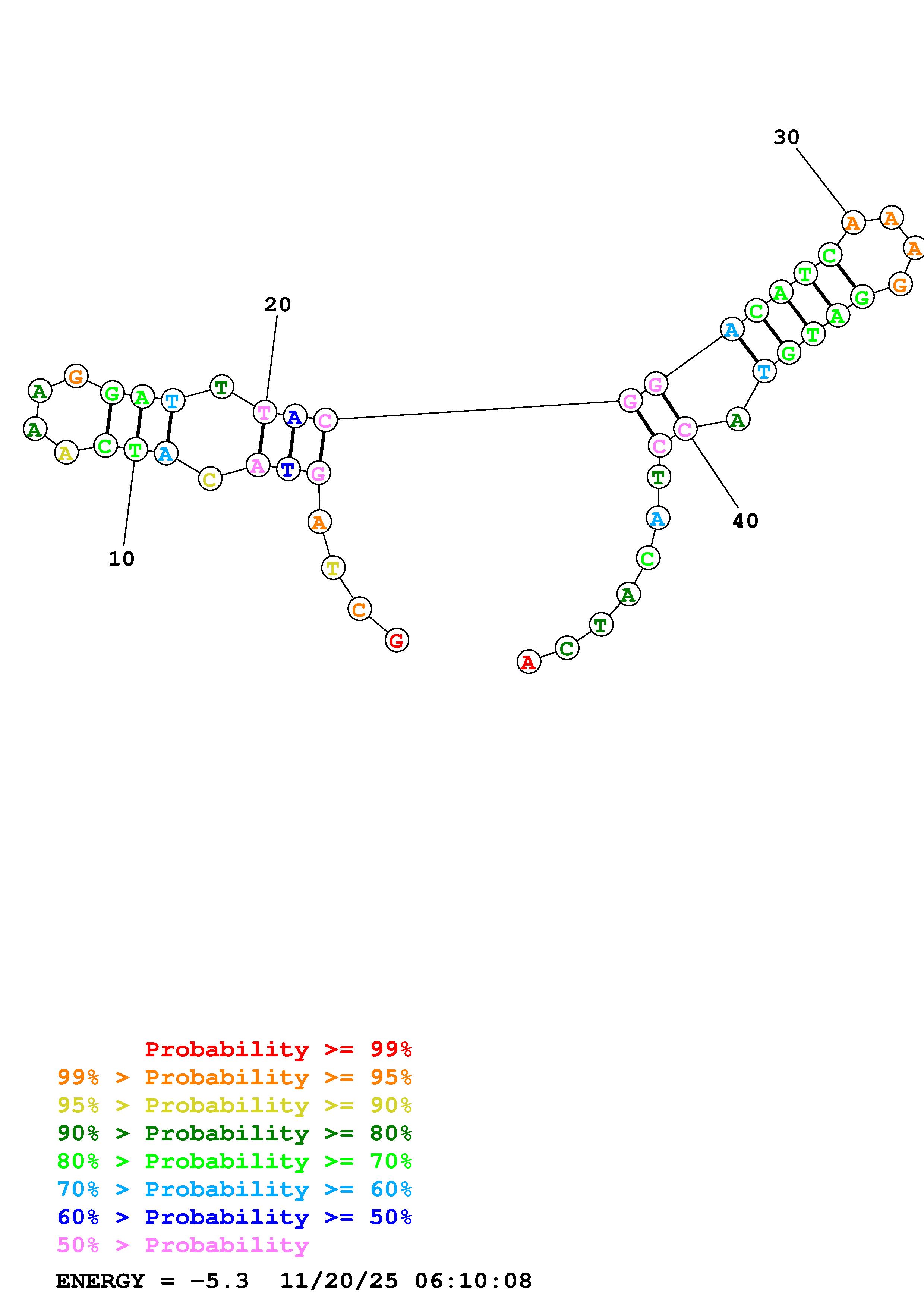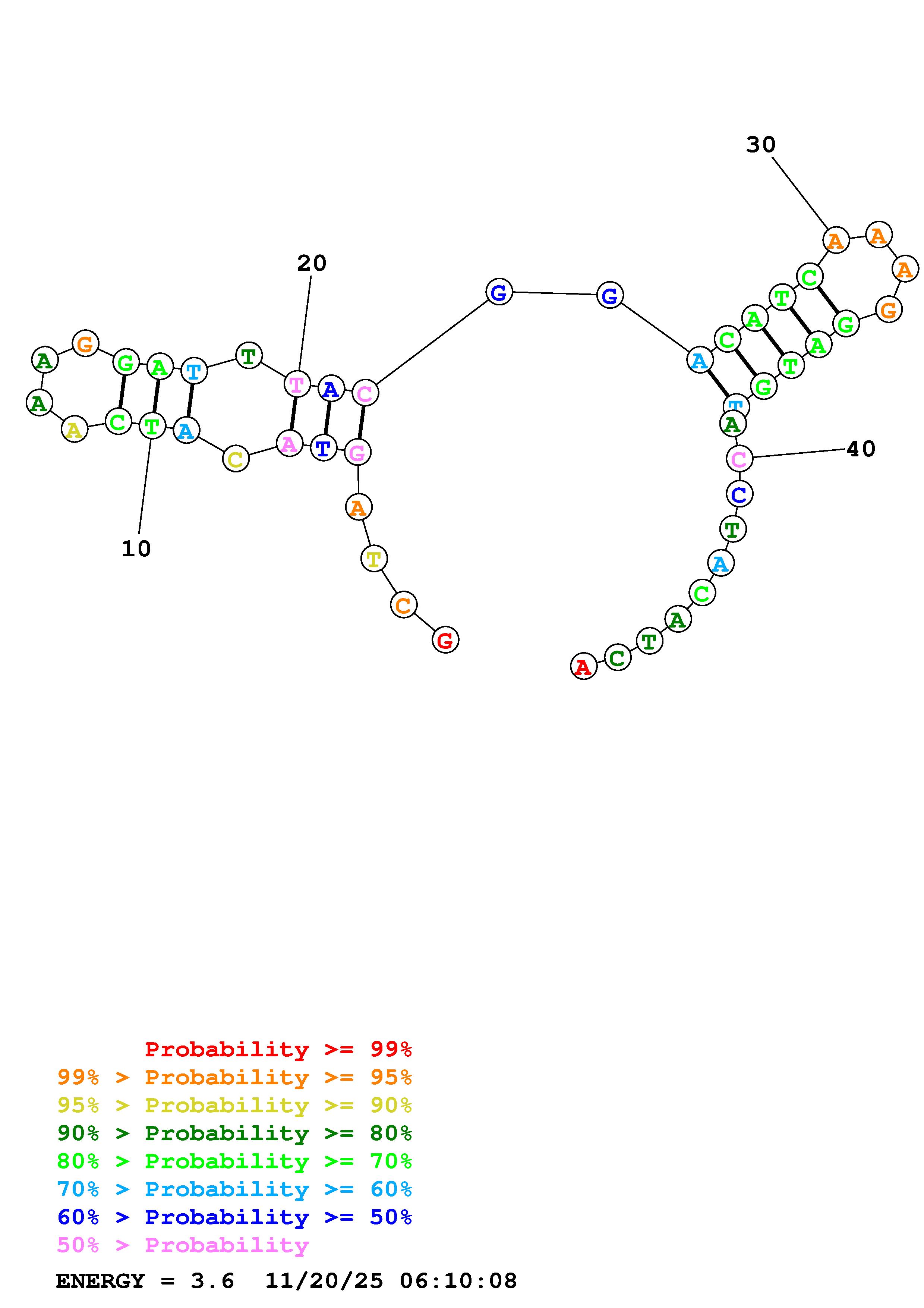 Fold Predict1.fasta Fold.ct --DNA --loop 30 --maximum 20 --percent 10 --temperature 310.15 --window 3