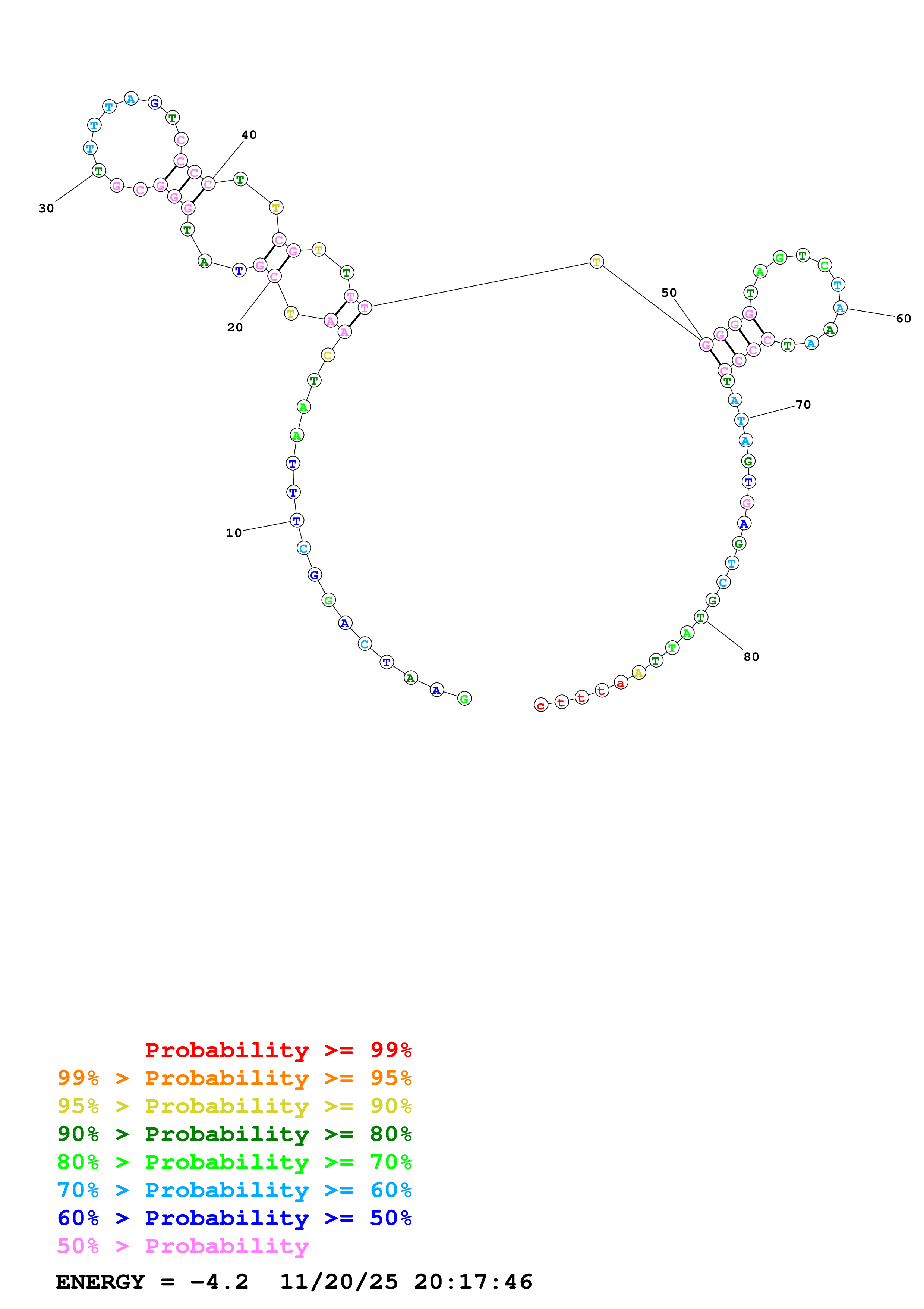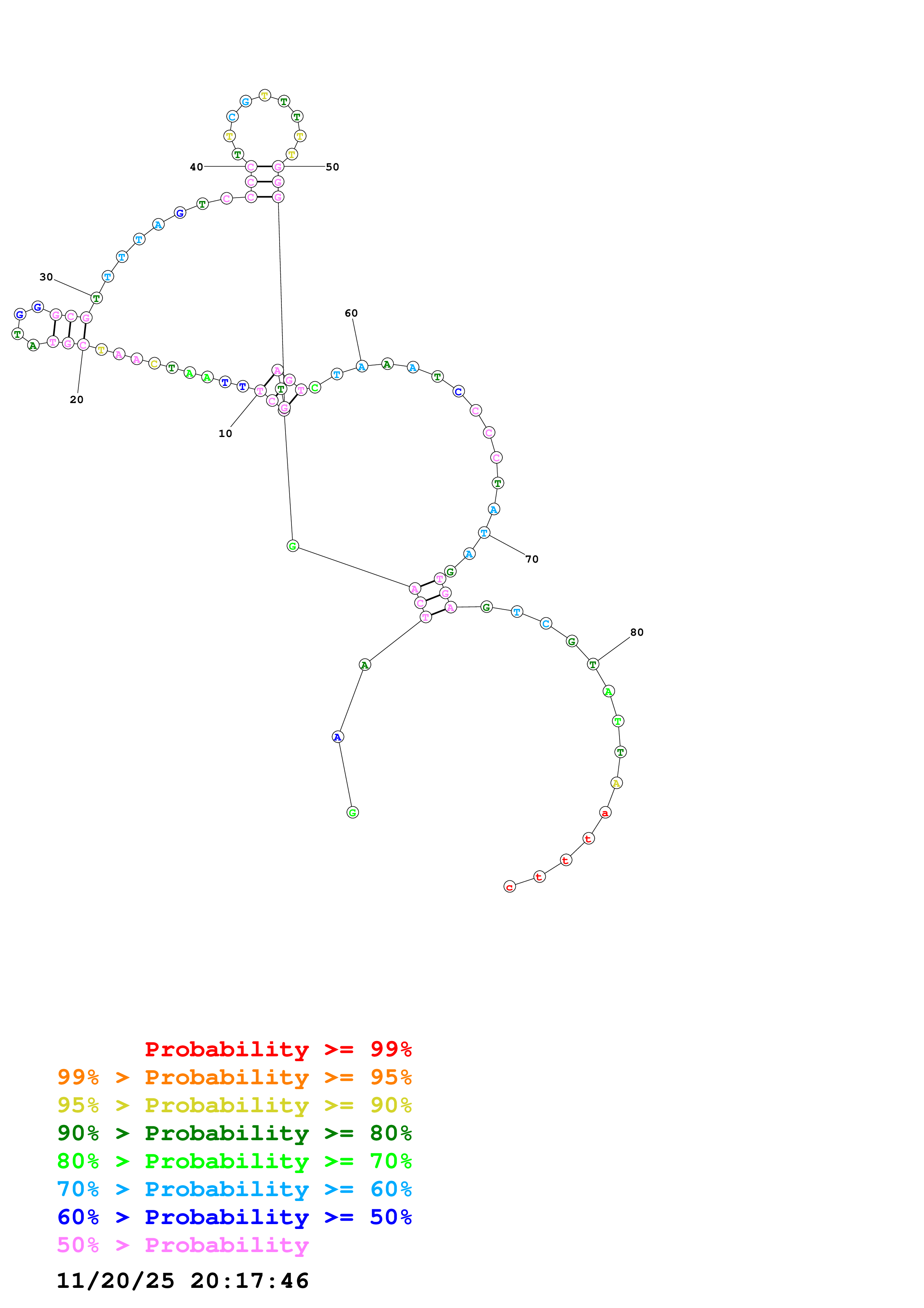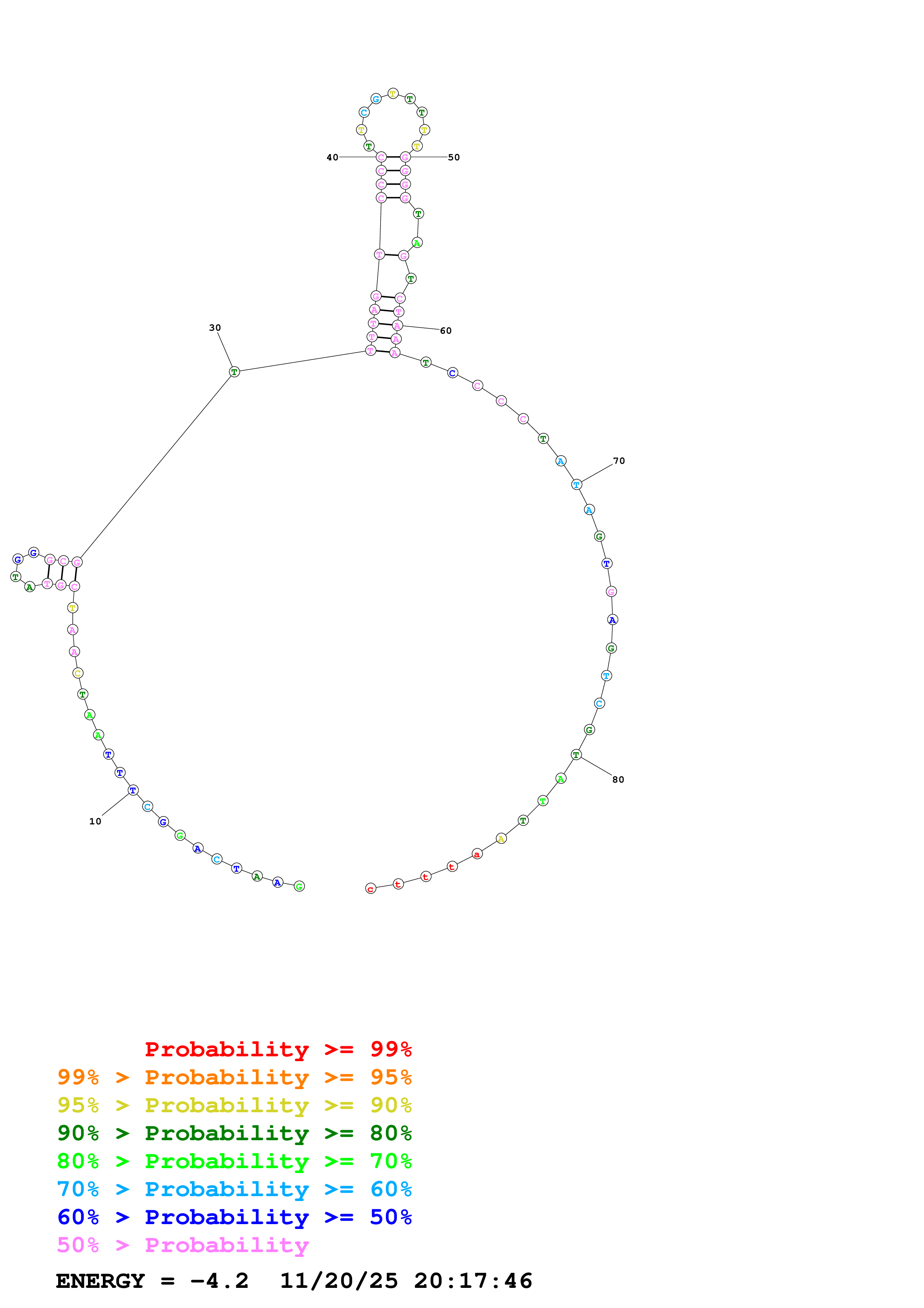 Fold Predict1.fasta Fold.ct --DNA --loop 30 --maximum 20 --percent 10 --temperature 310.15 --window 3