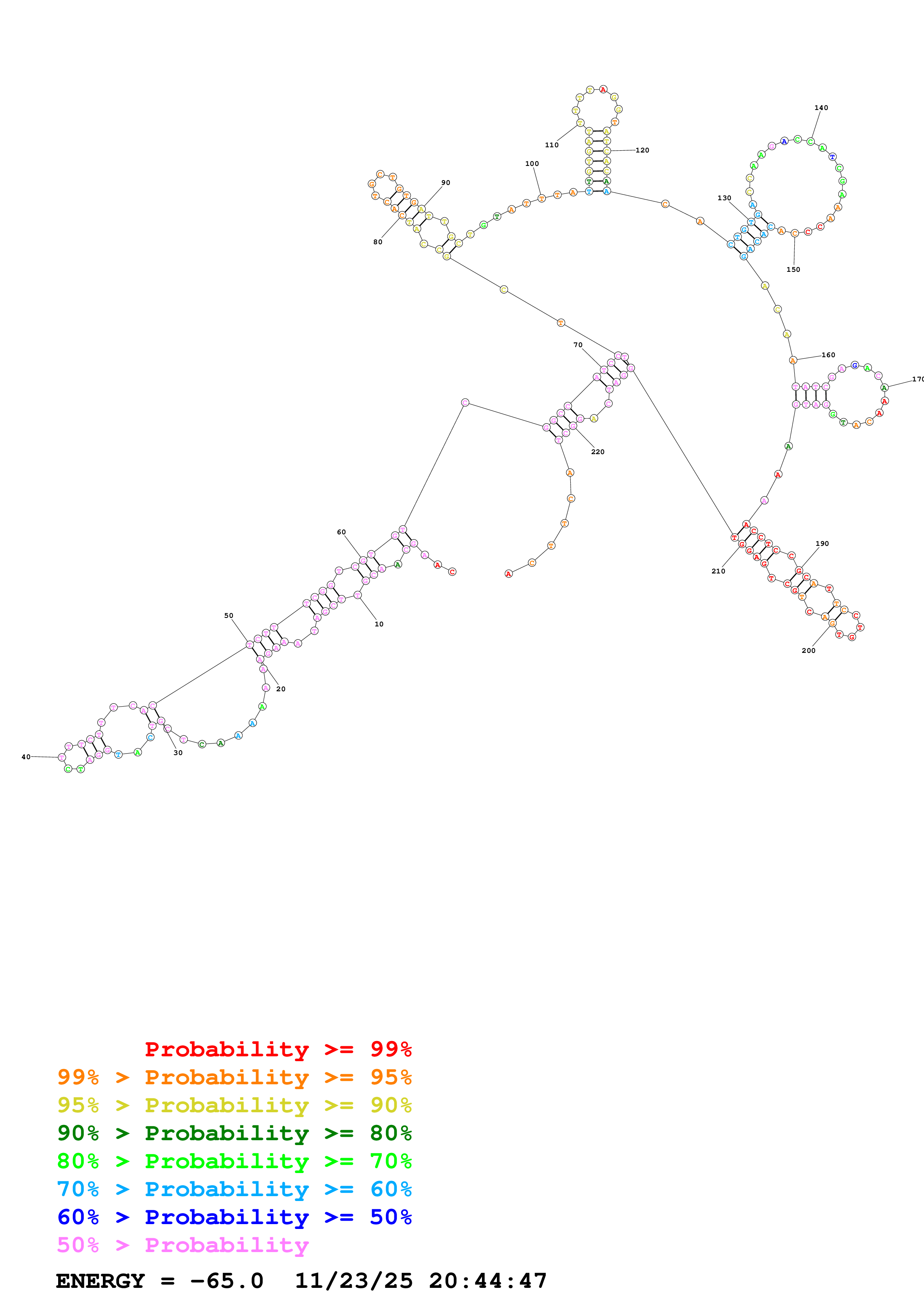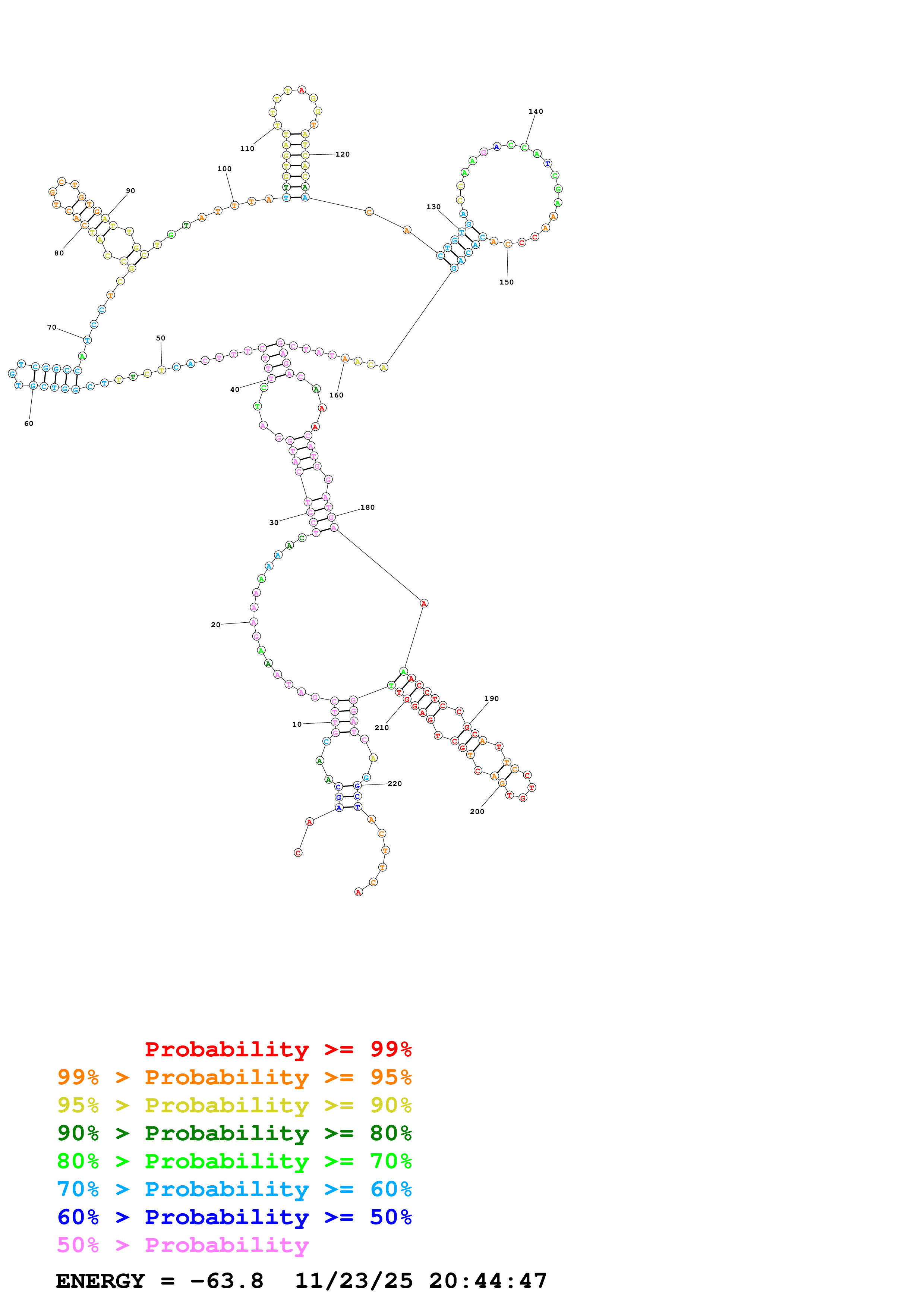 (Predict a secondary structure of probable base pairs, which might include pseudoknots.)