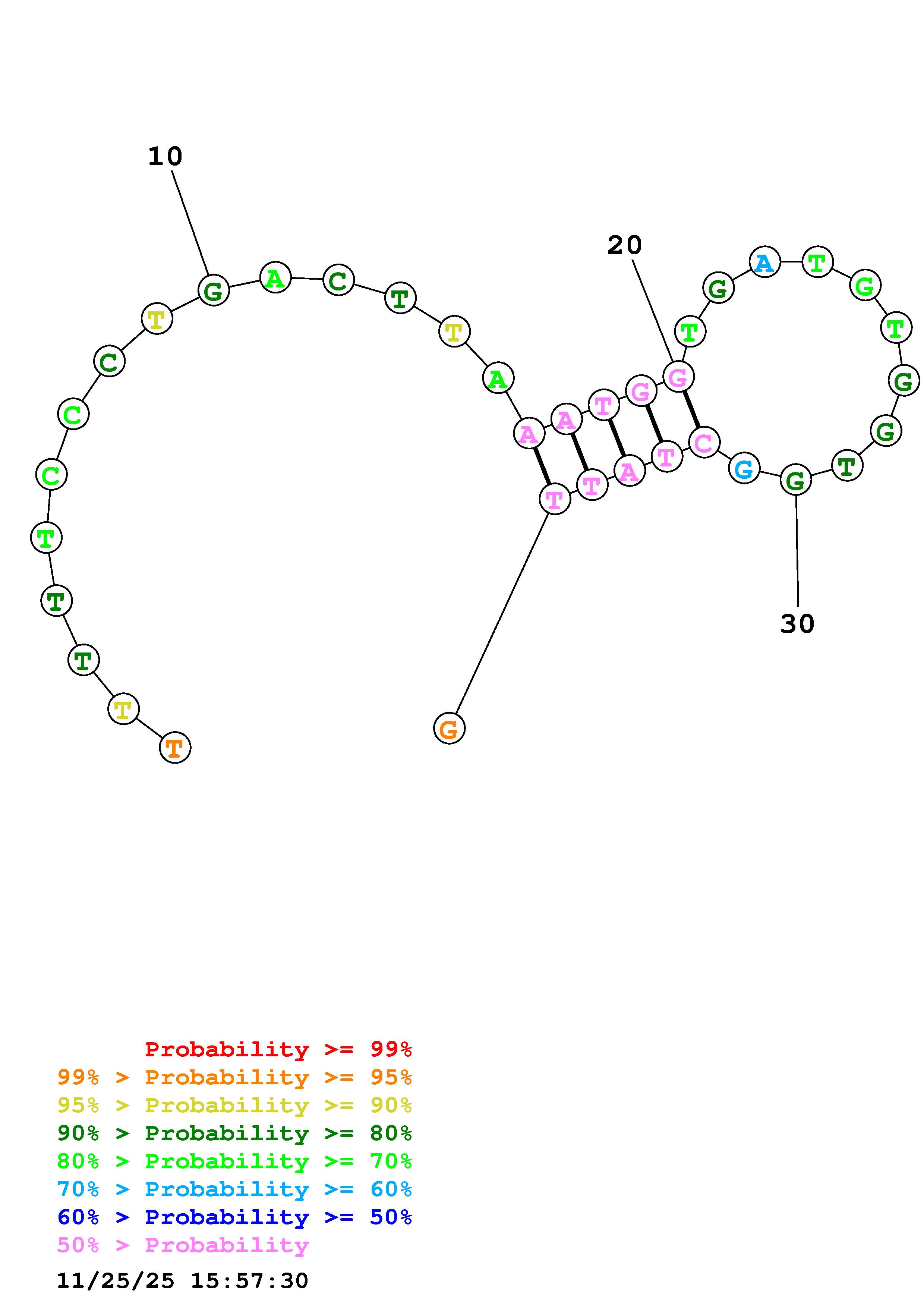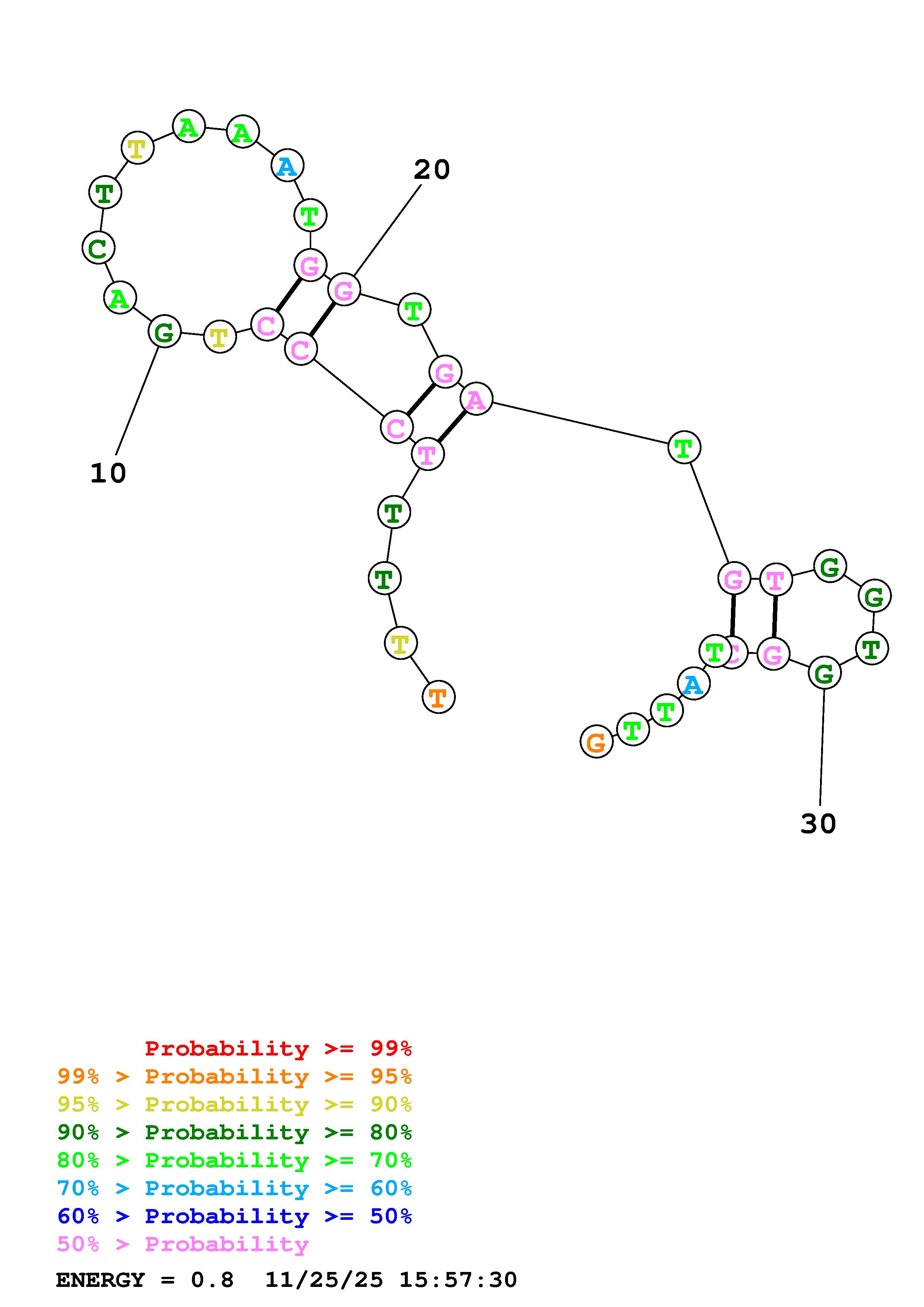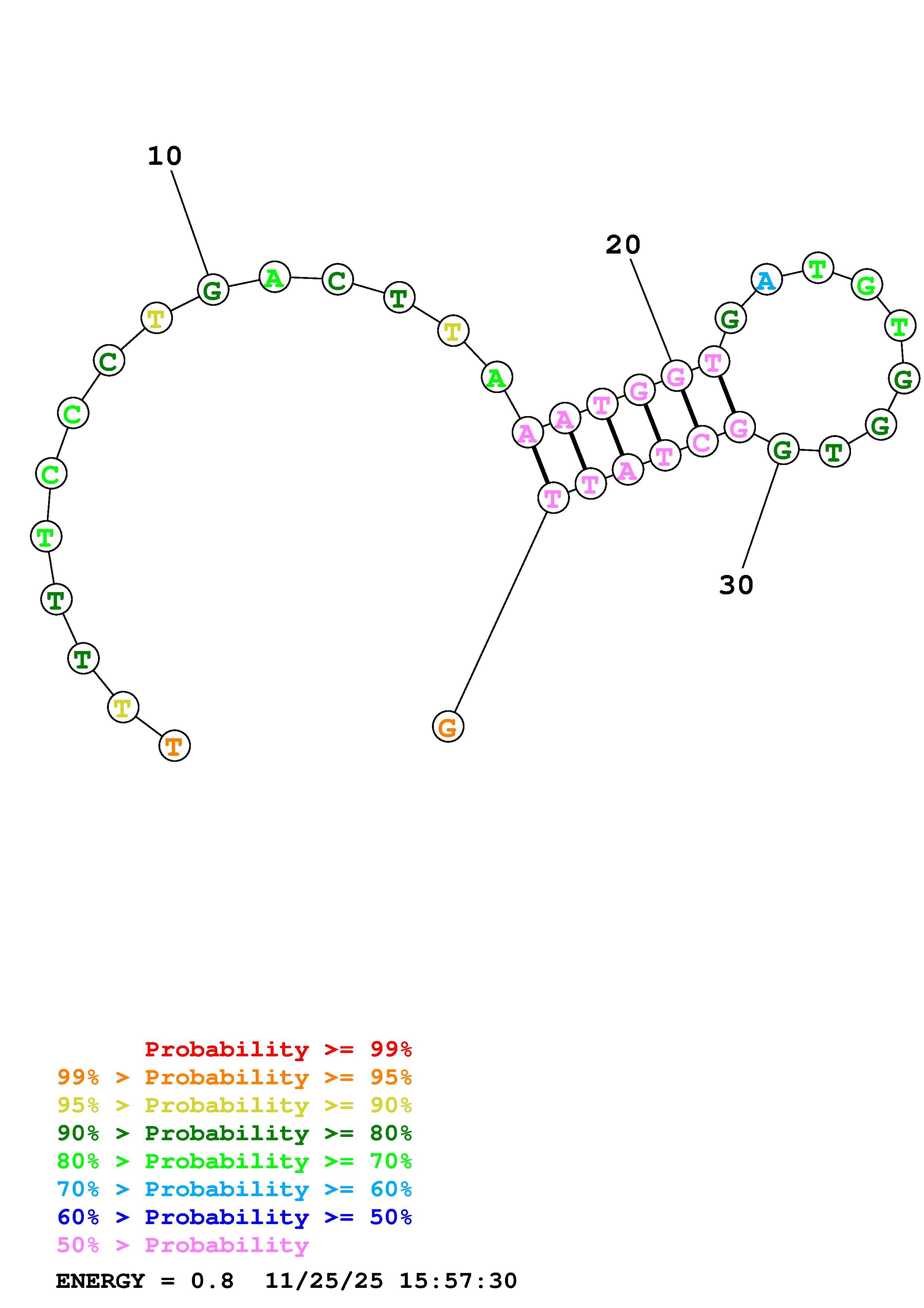 Fold Predict1.fasta Fold.ct --DNA --loop 30 --maximum 20 --percent 10 --temperature 310.15 --window 3