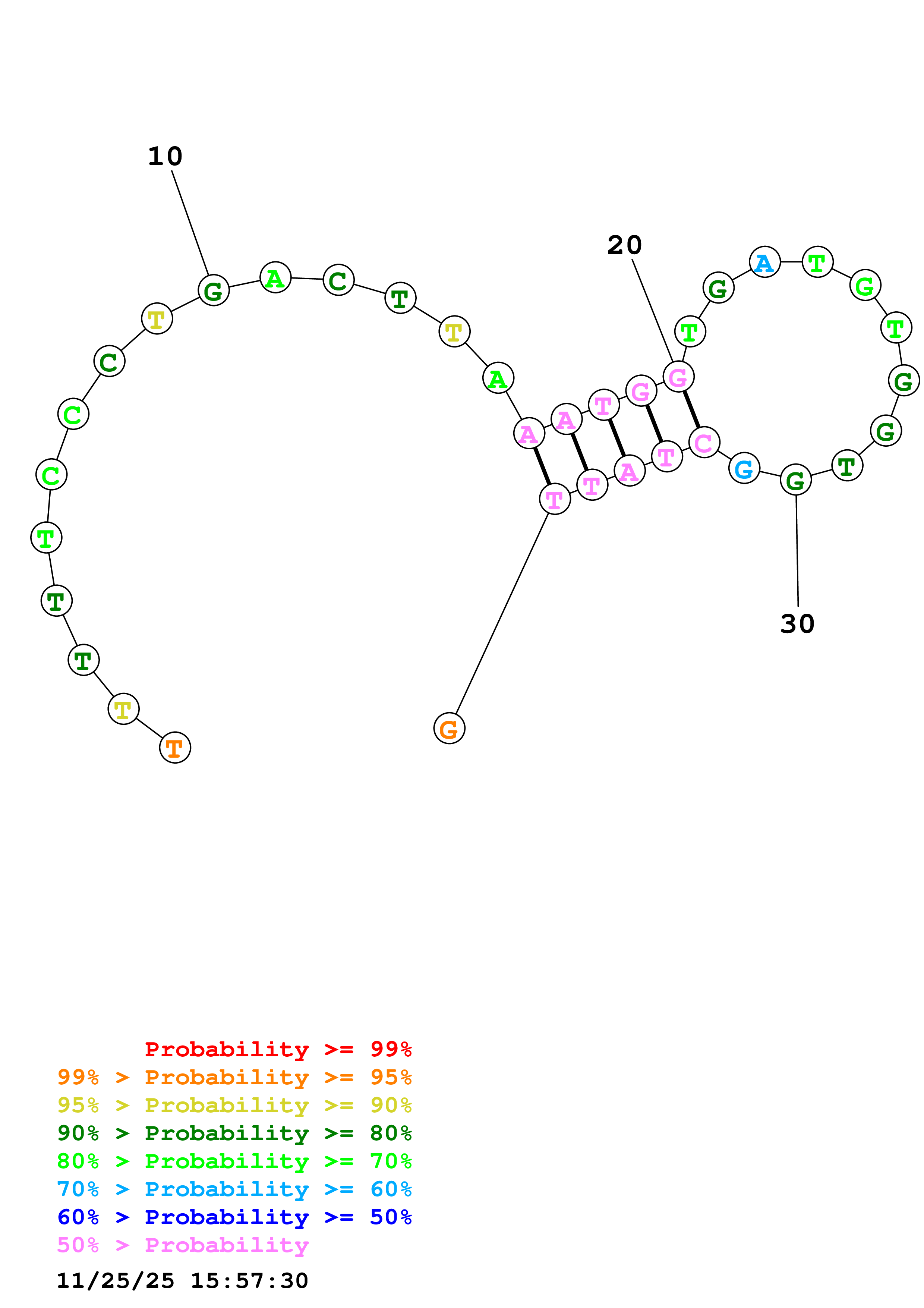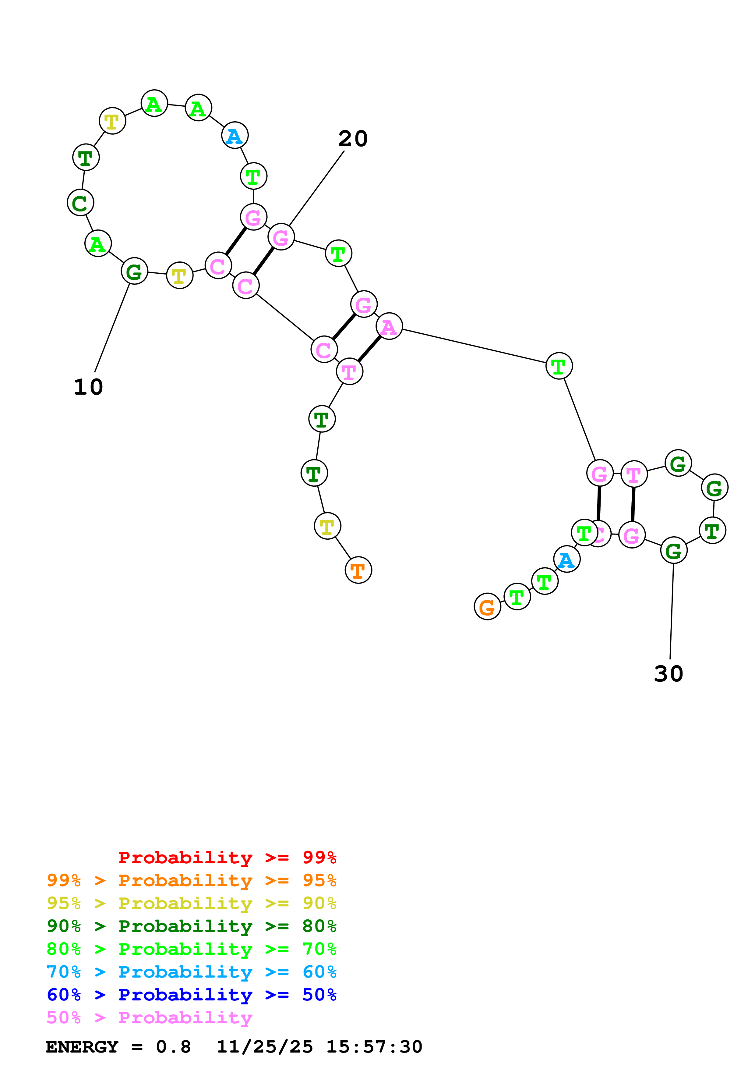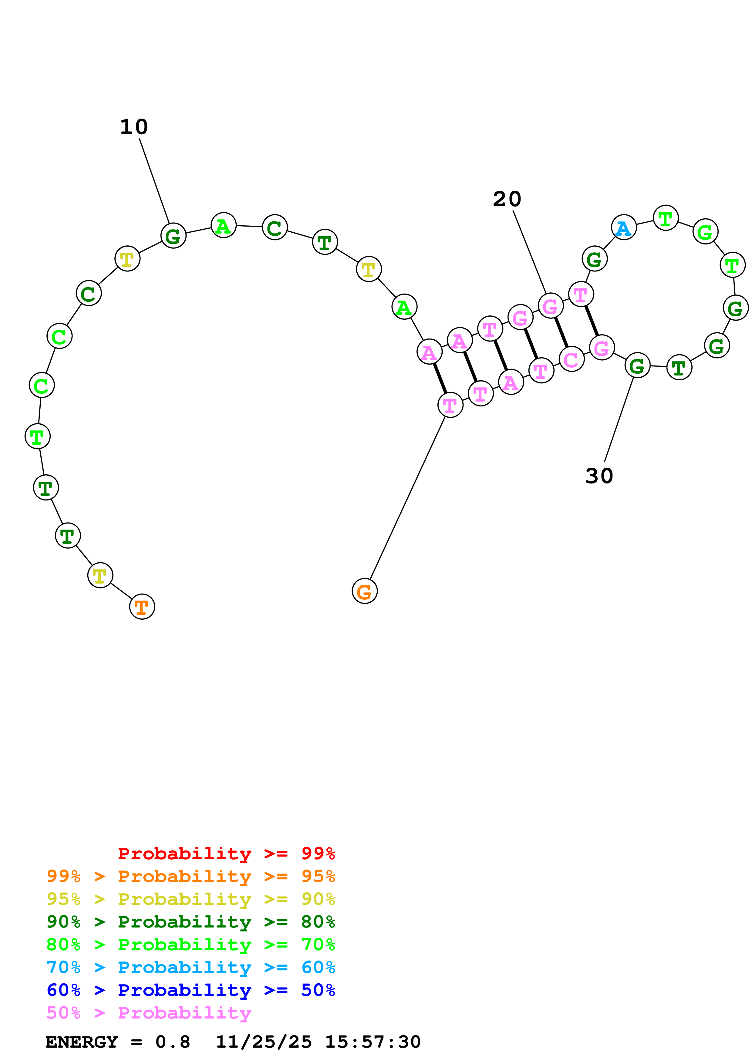 Fold Predict1.fasta Fold.ct --DNA --loop 30 --maximum 20 --percent 10 --temperature 310.15 --window 3