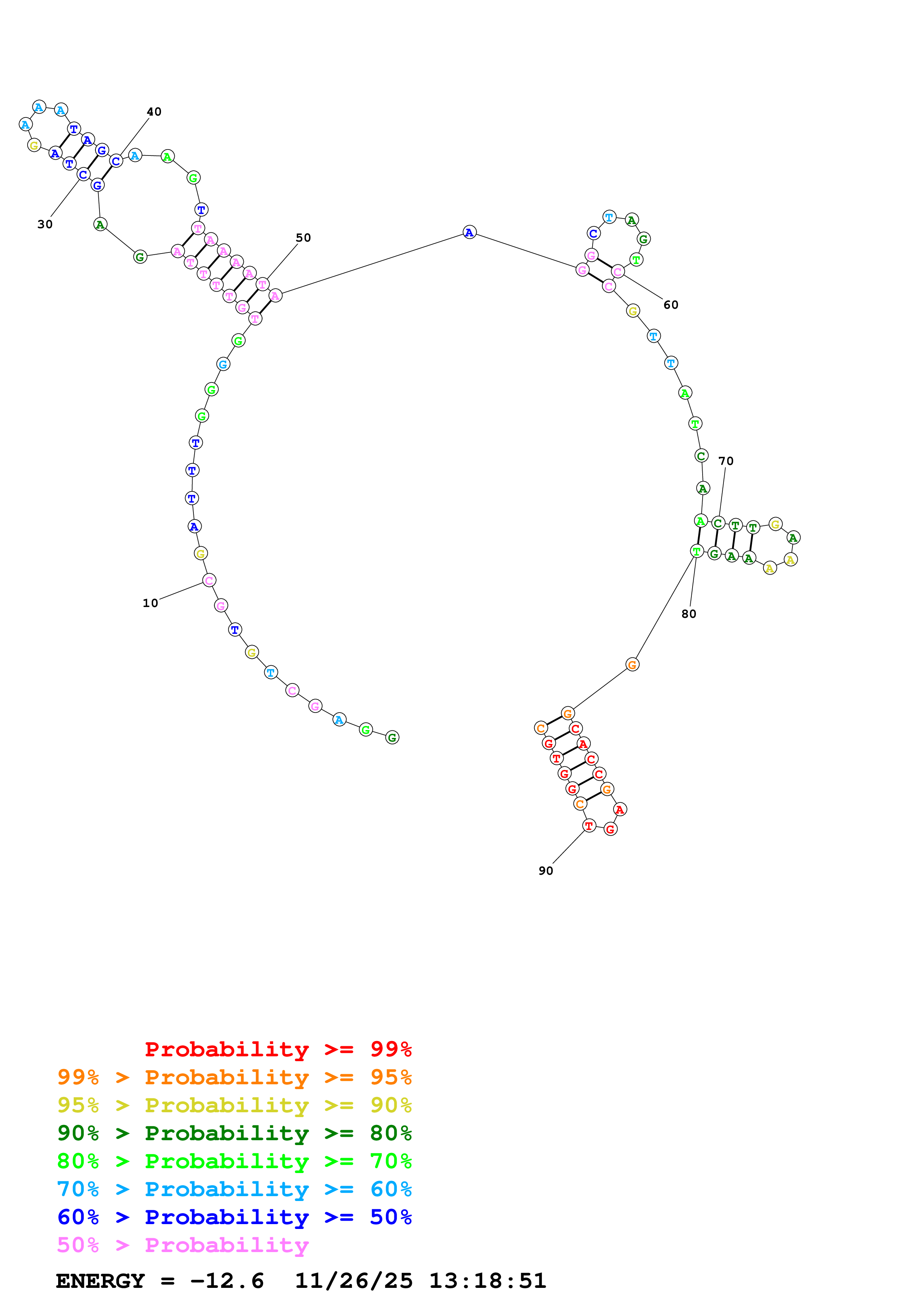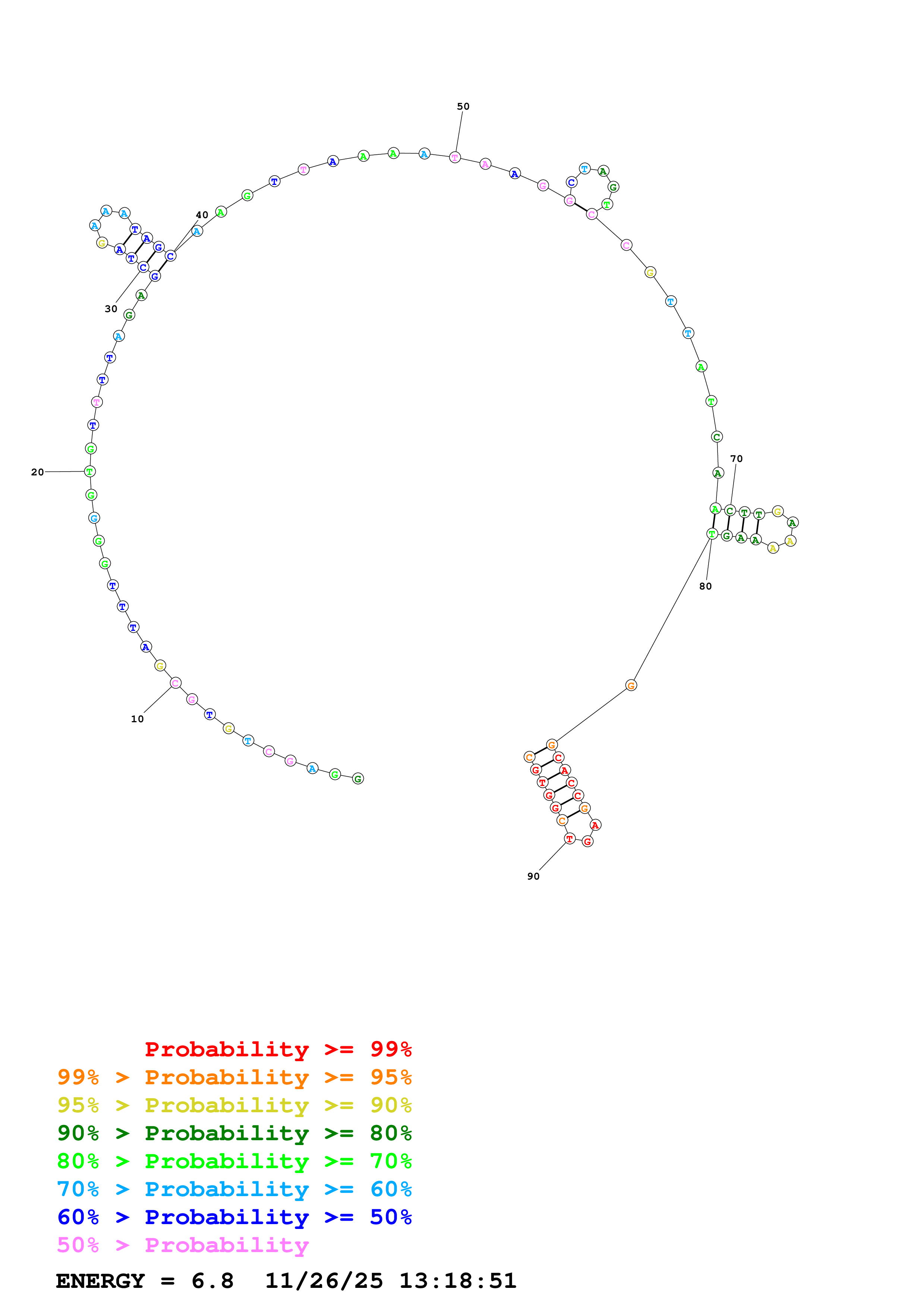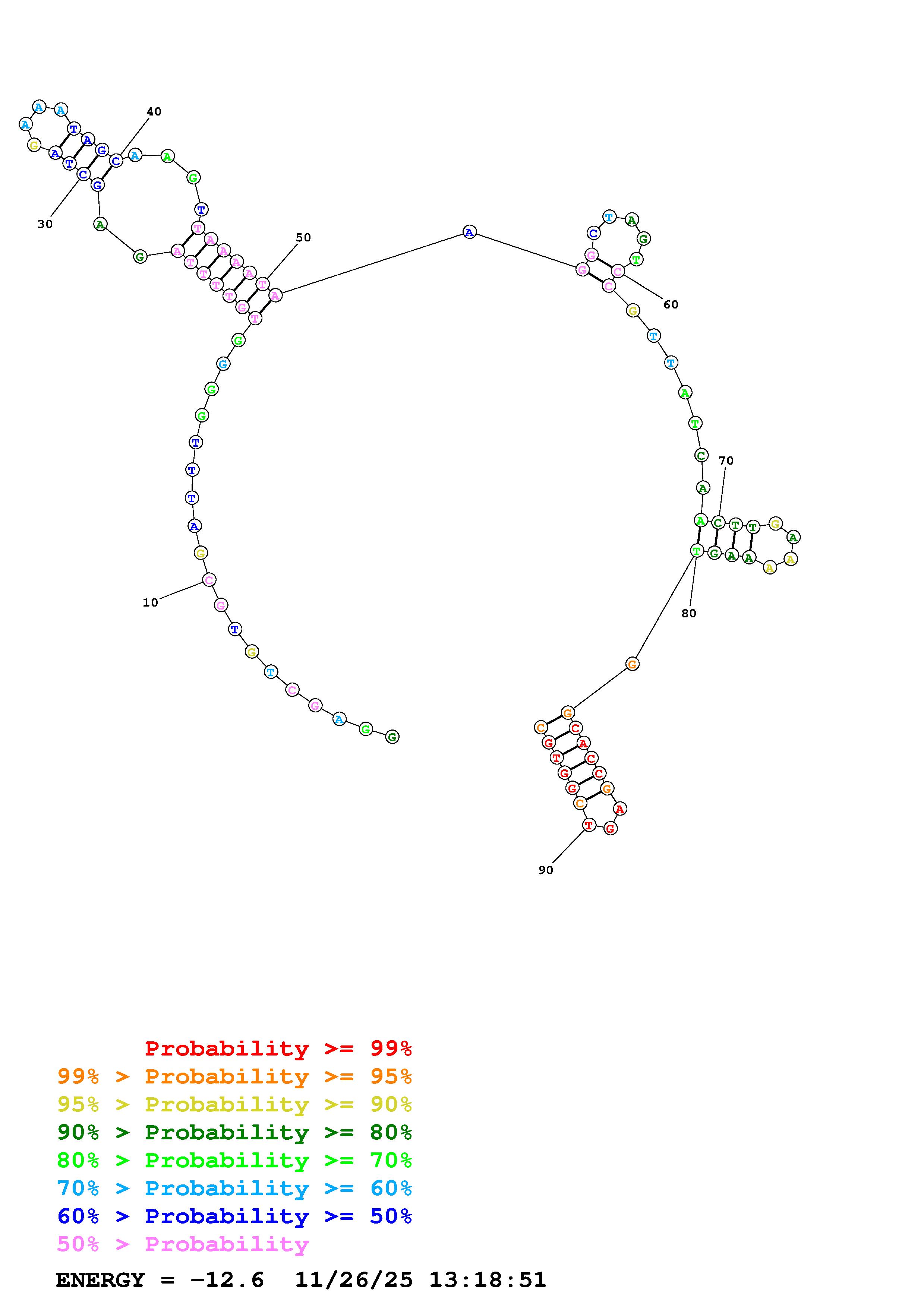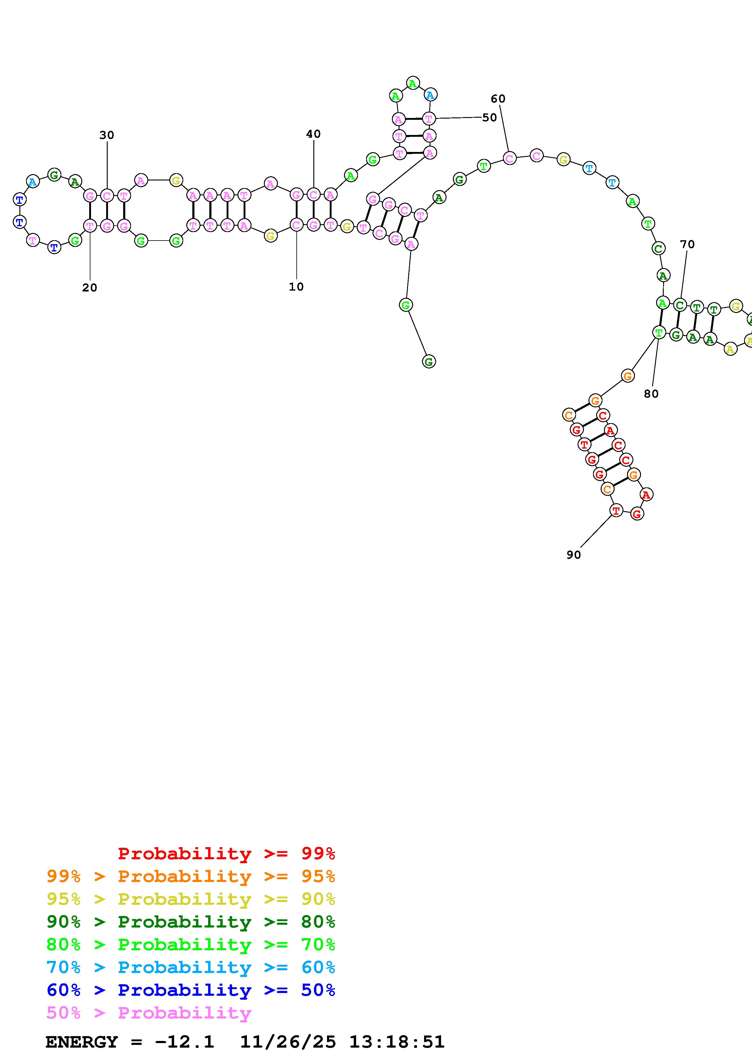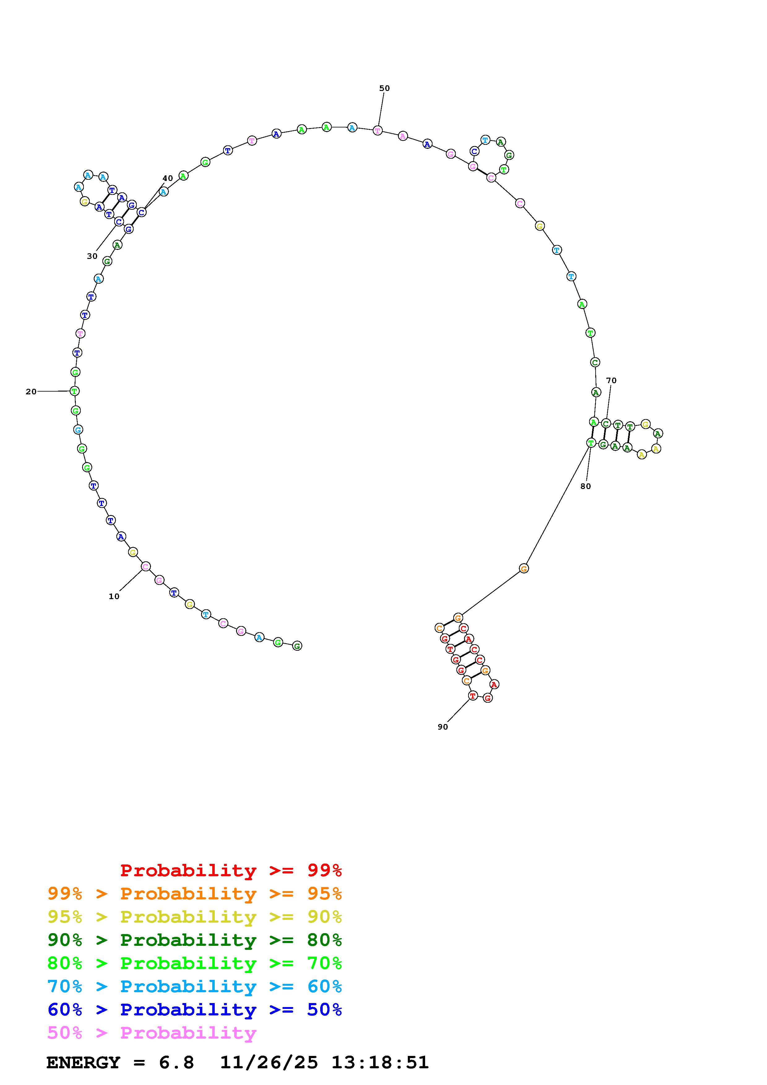 Fold Predict1.fasta Fold.ct --DNA --loop 30 --maximum 20 --percent 10 --temperature 310.15 --window 3