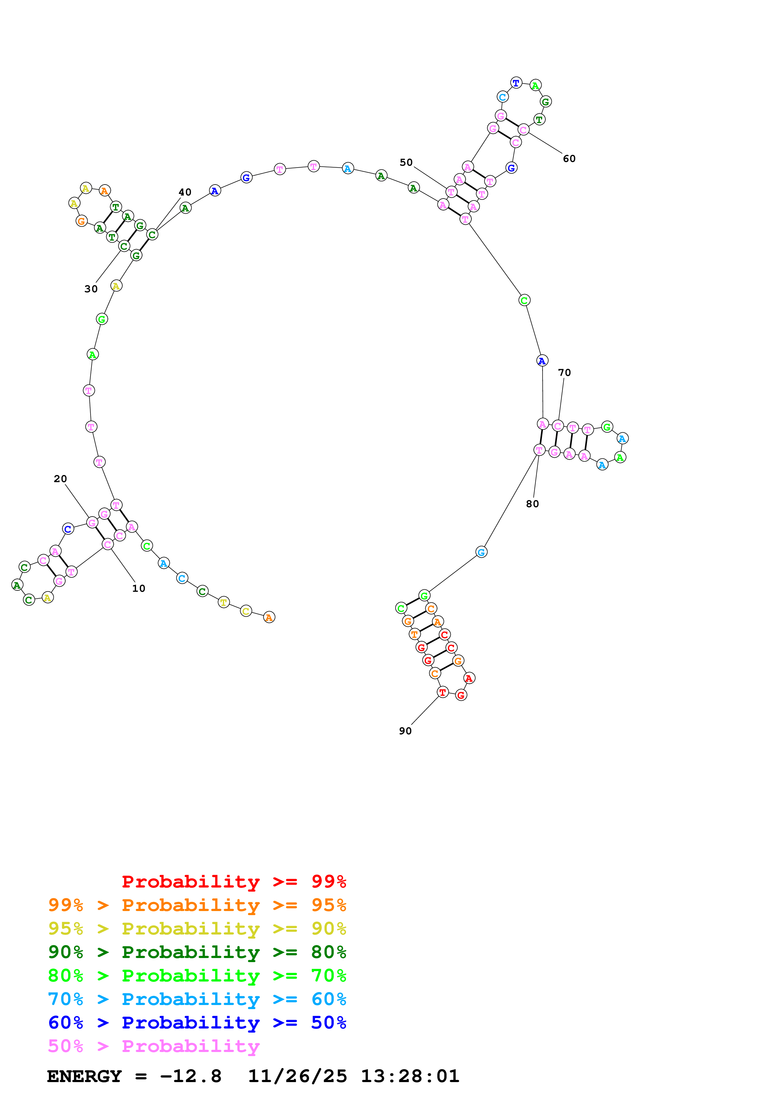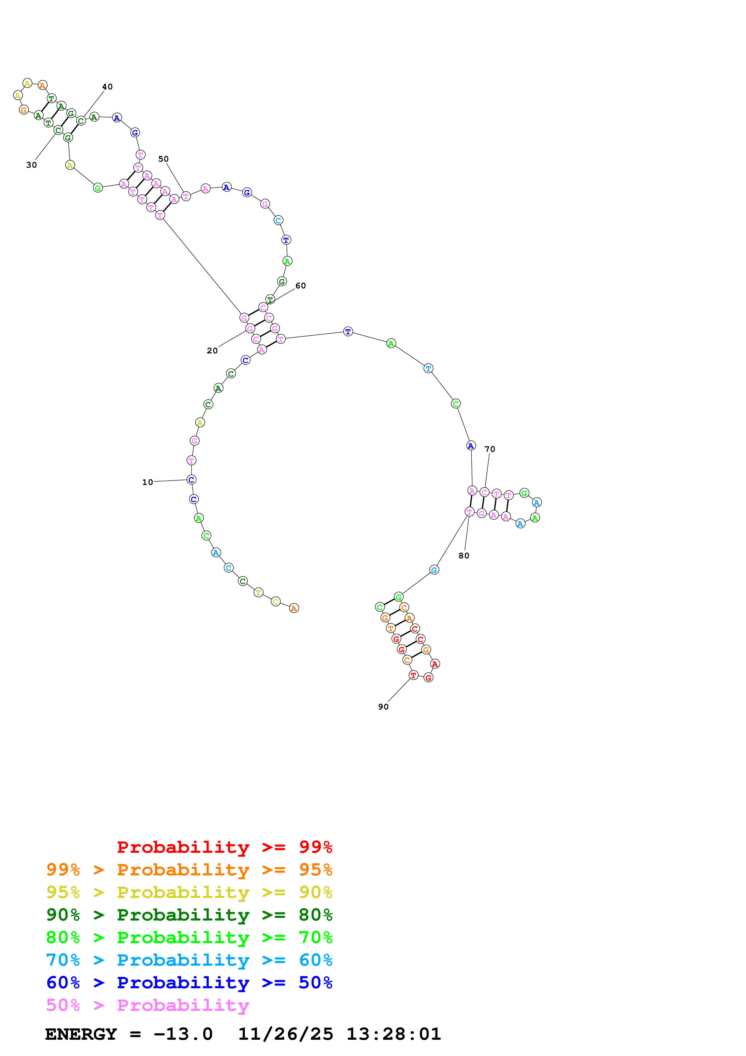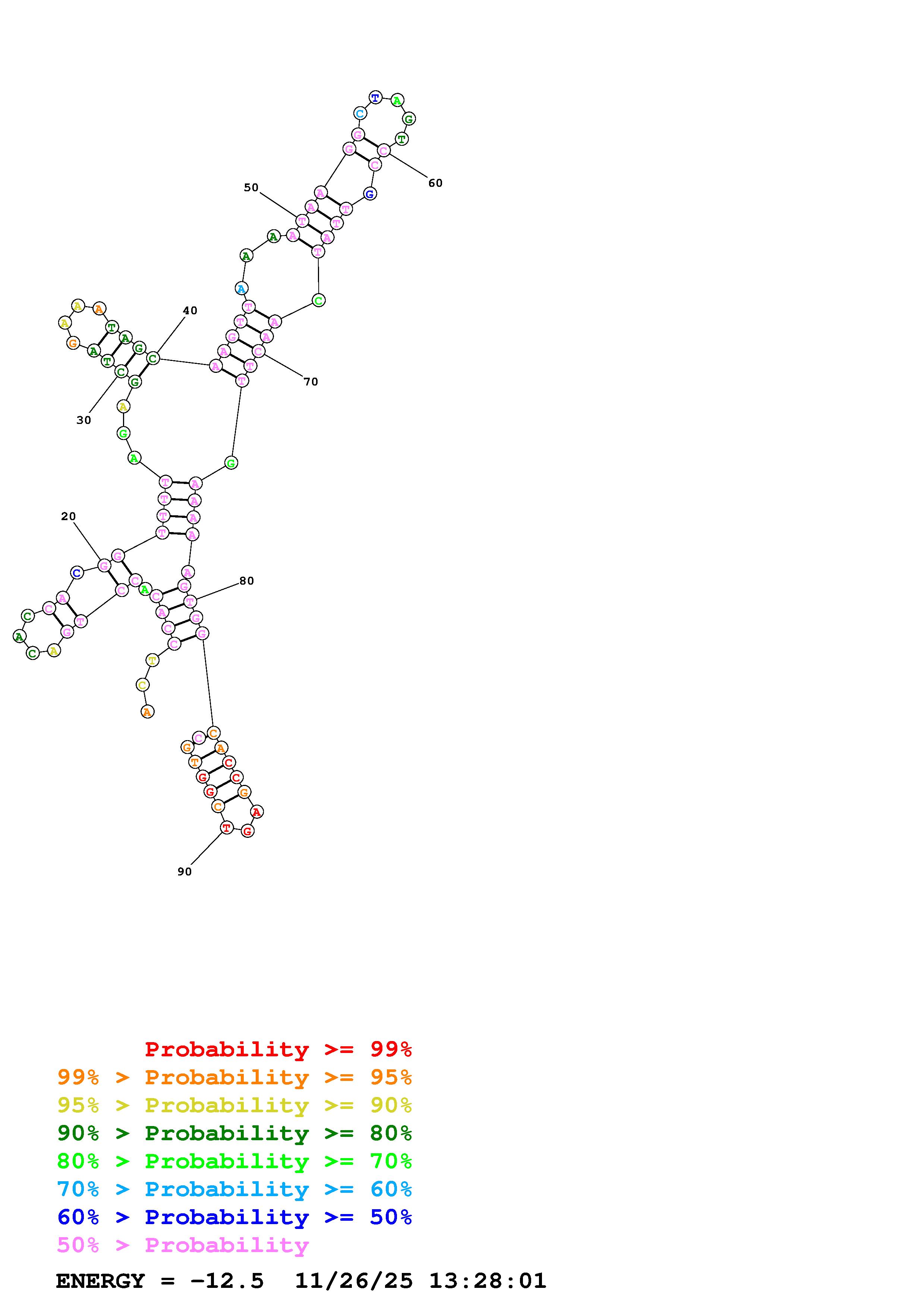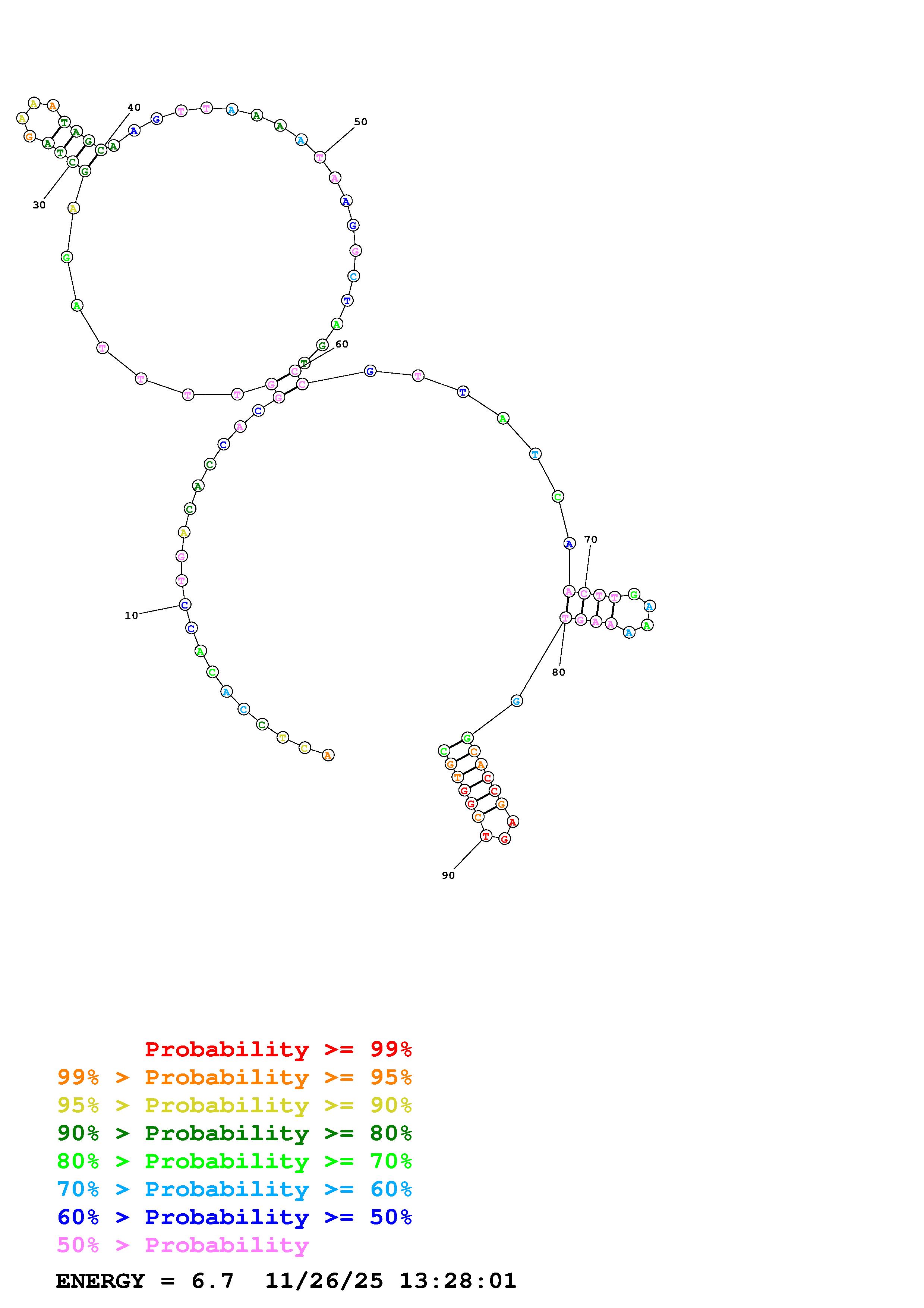 Fold Predict1.fasta Fold.ct --DNA --loop 30 --maximum 20 --percent 10 --temperature 310.15 --window 3