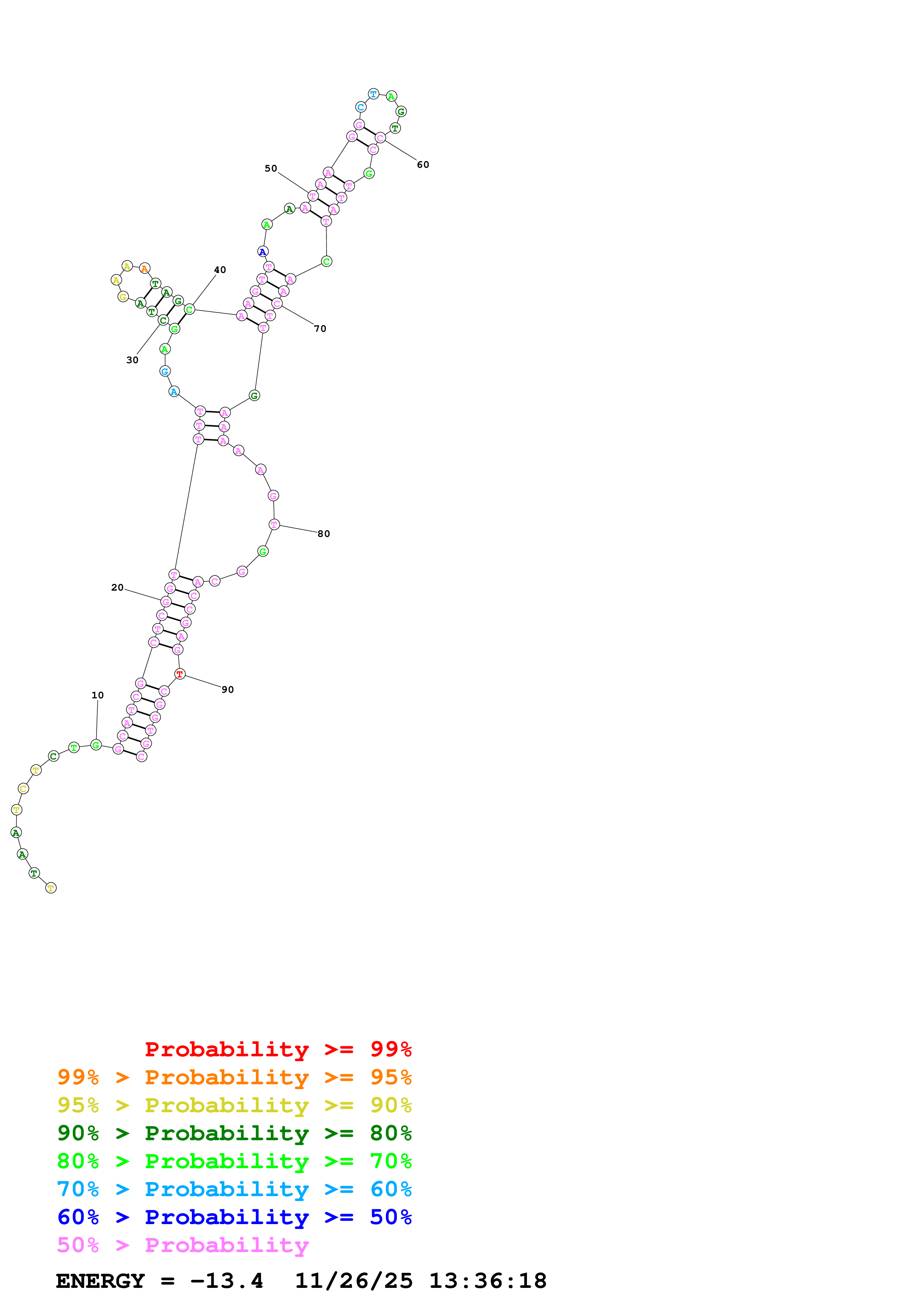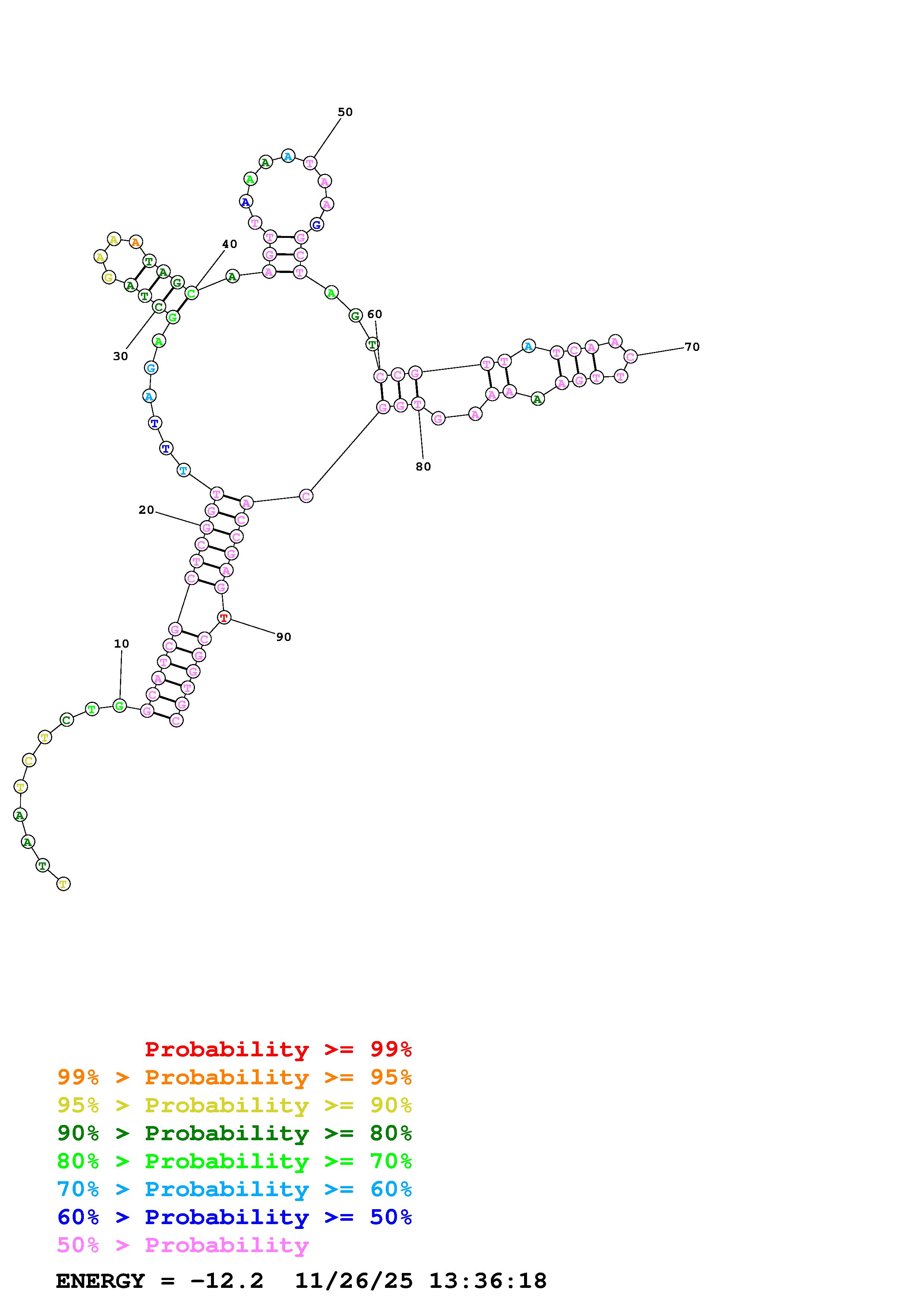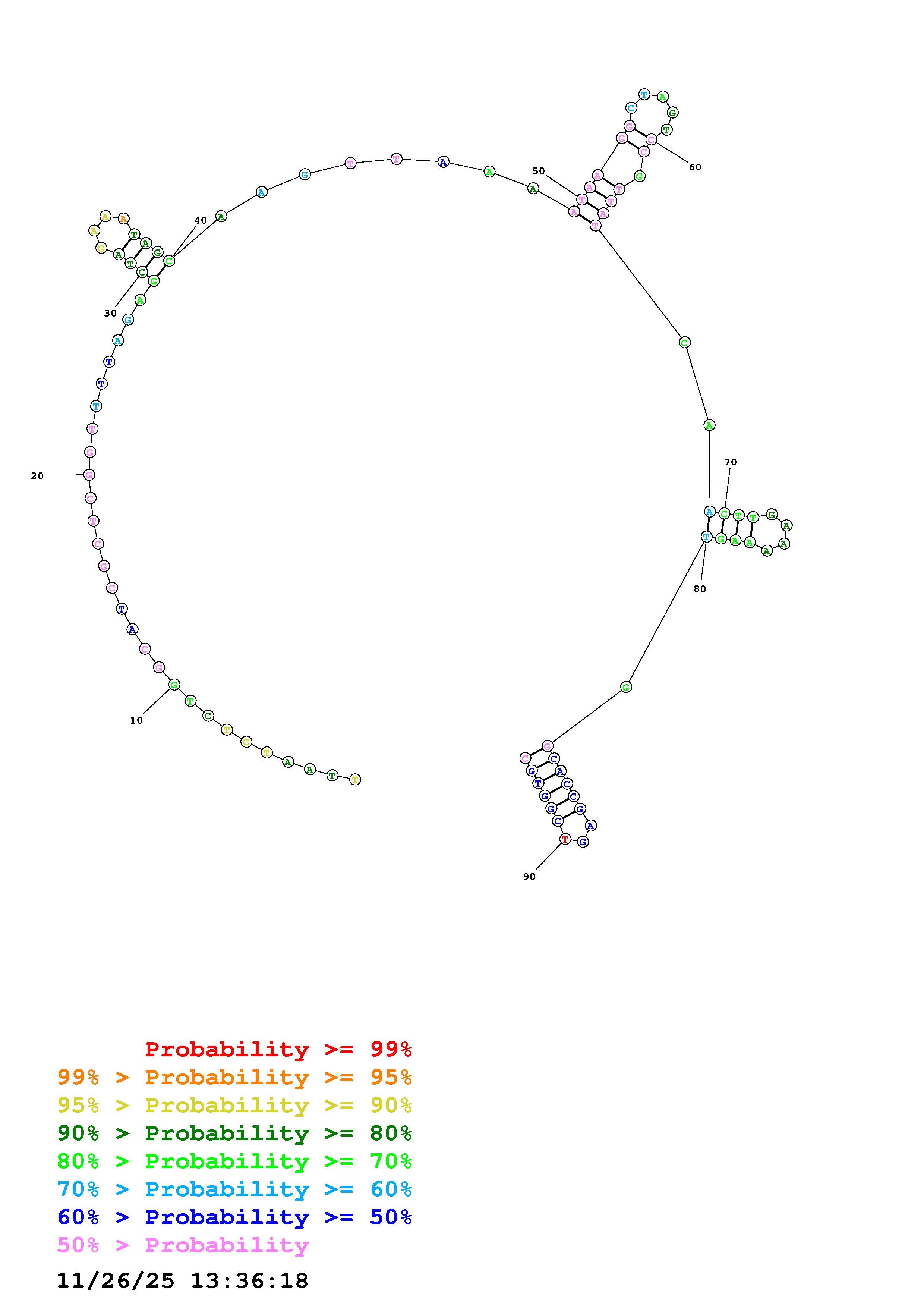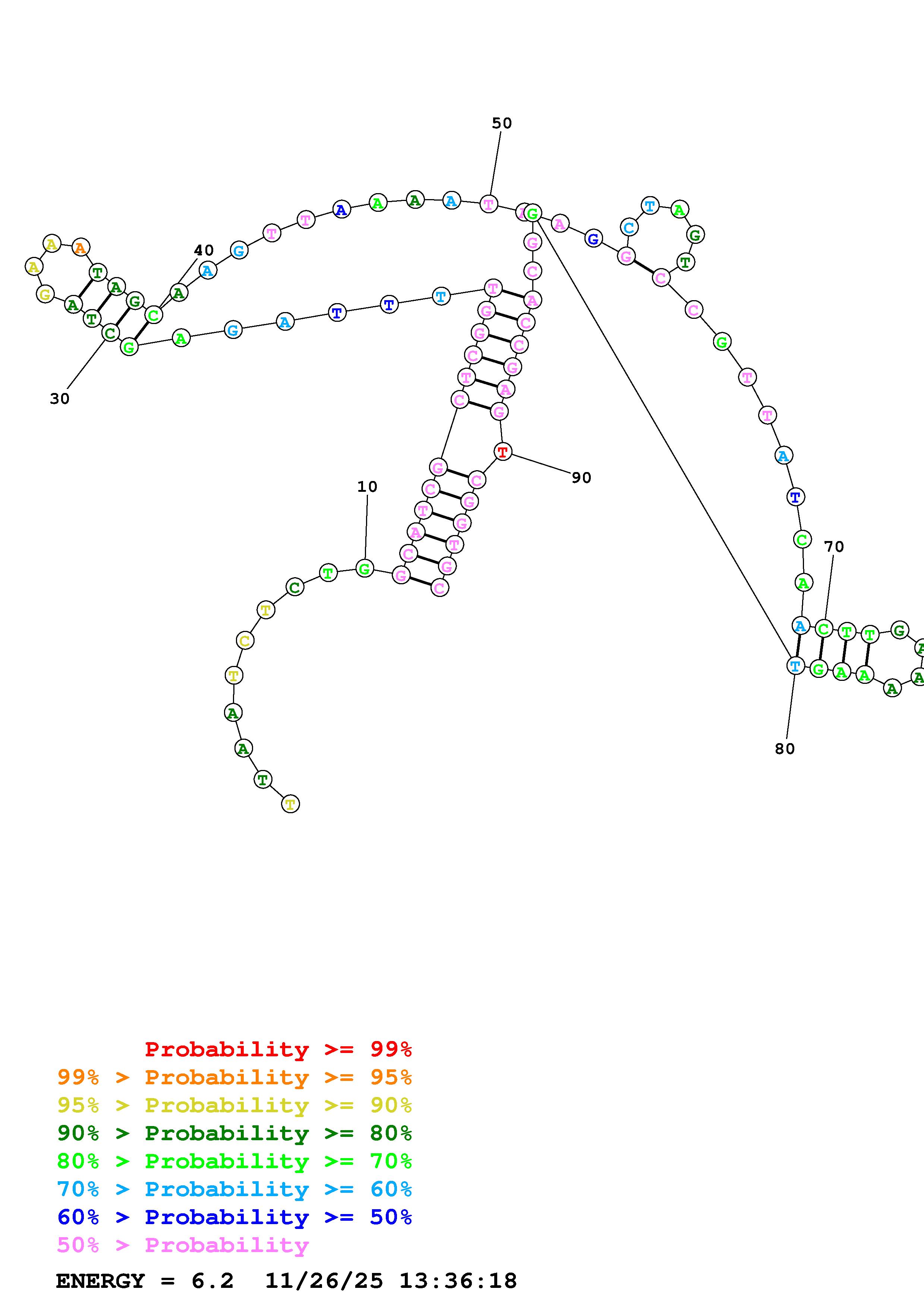 Fold Predict1.fasta Fold.ct --DNA --loop 30 --maximum 20 --percent 10 --temperature 310.15 --window 3