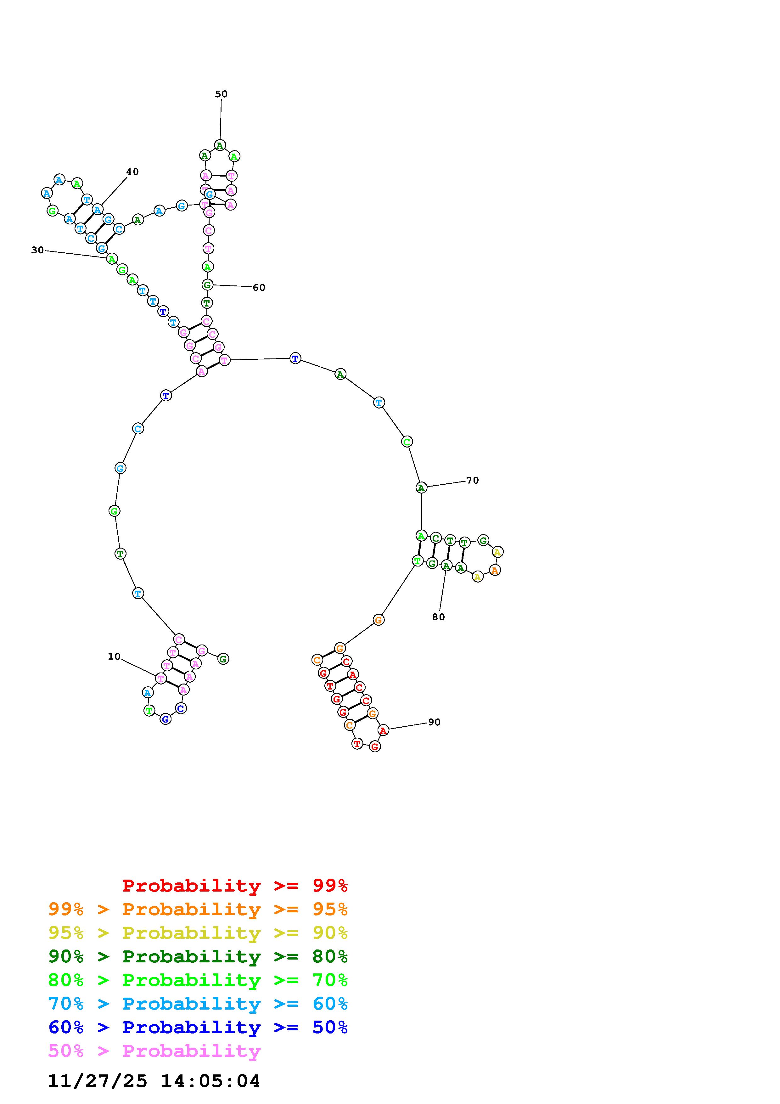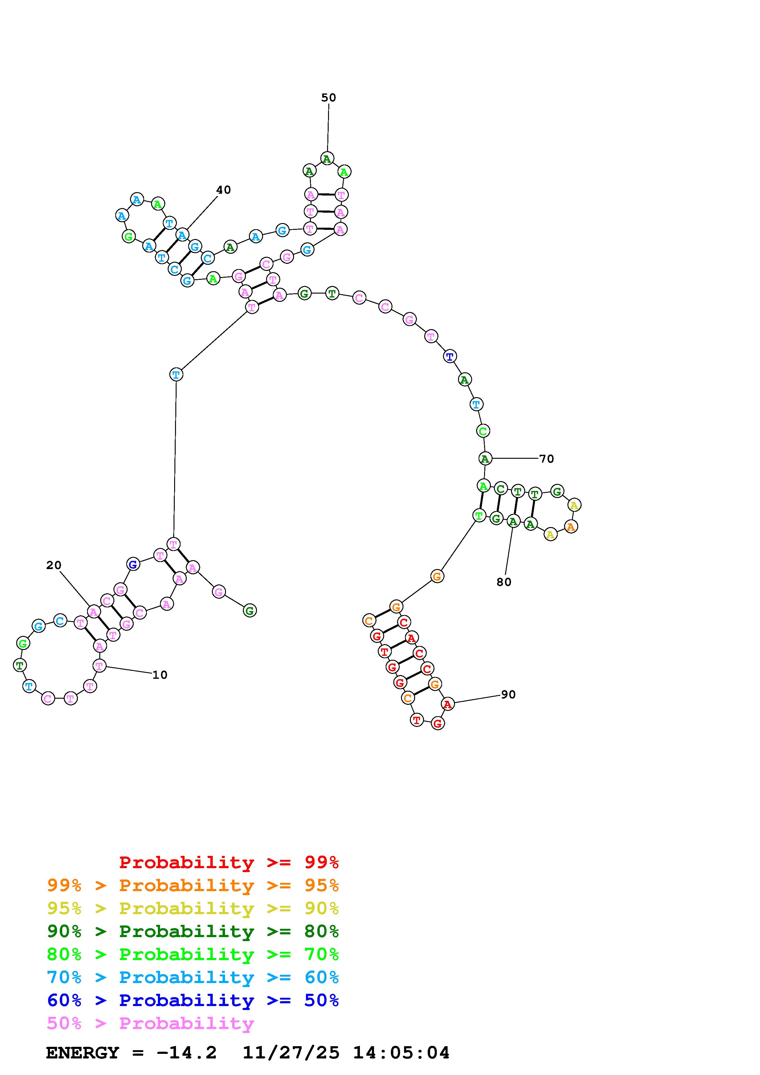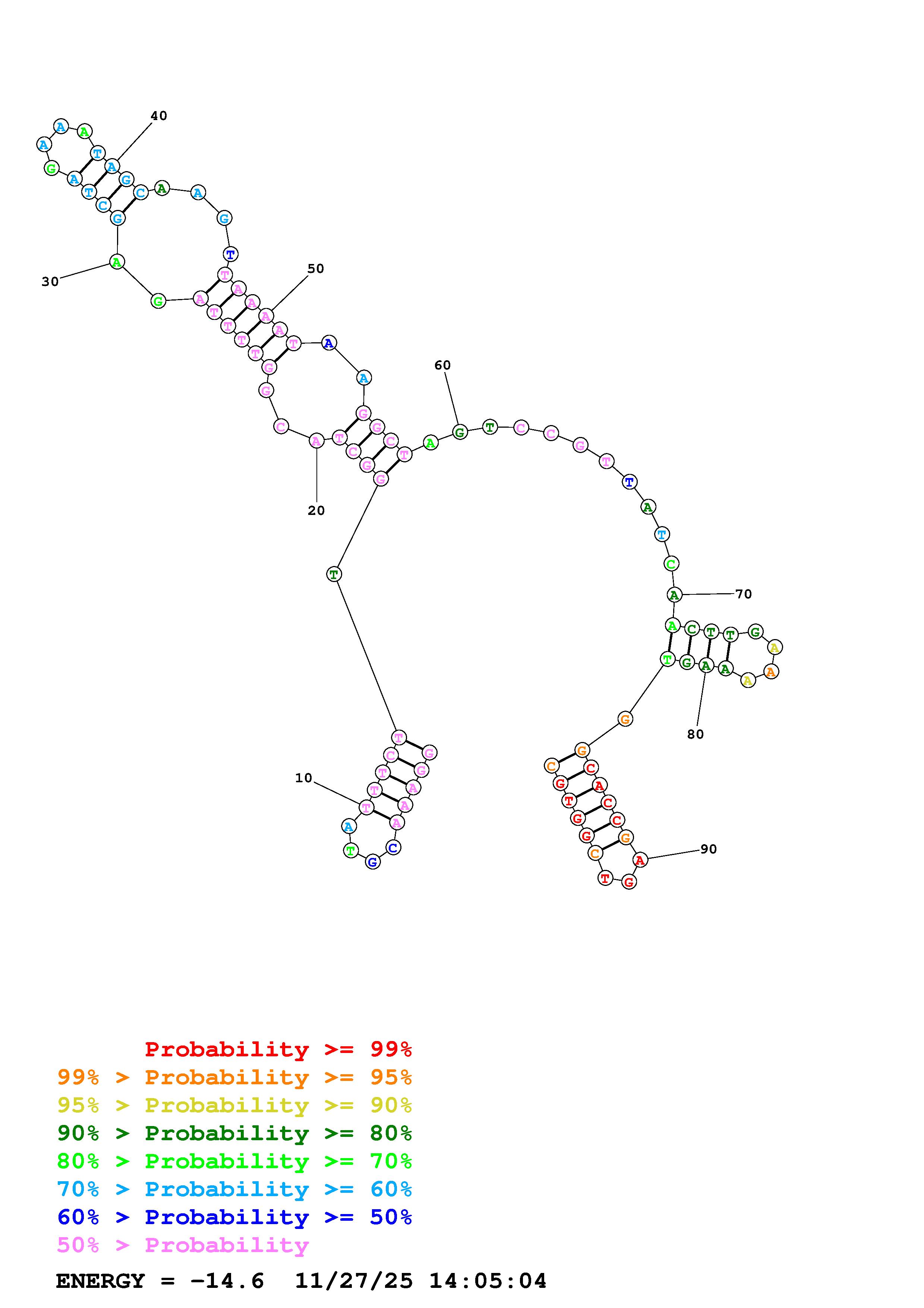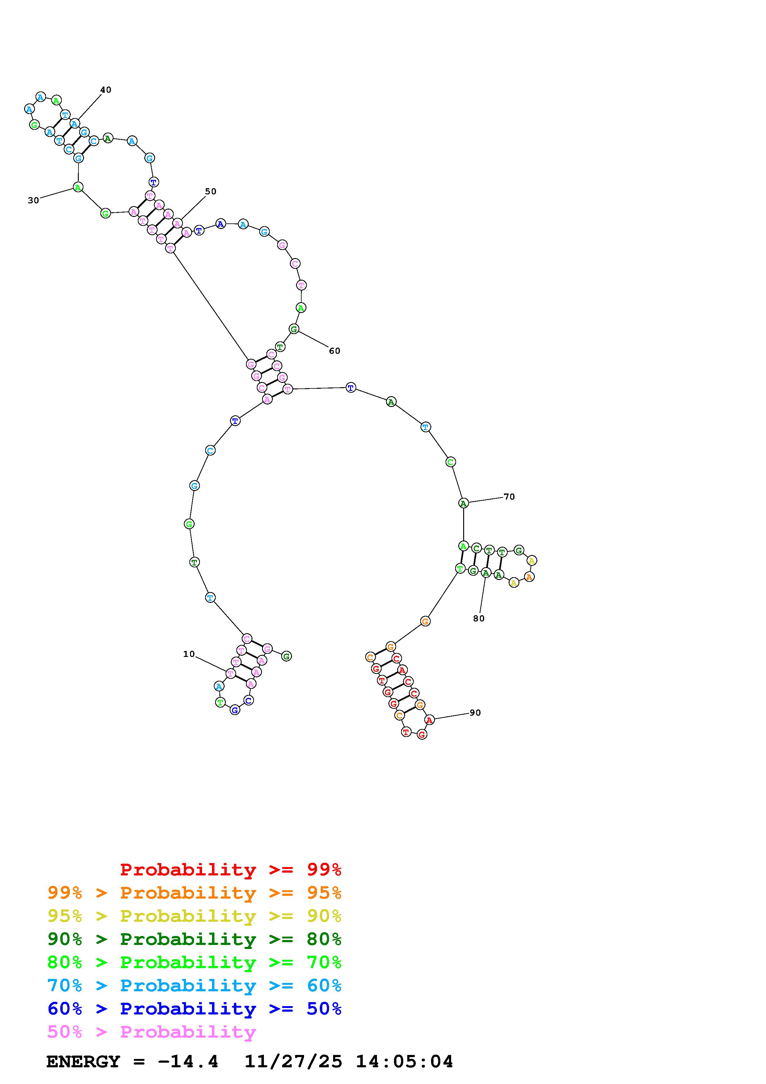 Fold Predict1.fasta Fold.ct --DNA --loop 30 --maximum 20 --percent 10 --temperature 310.15 --window 3