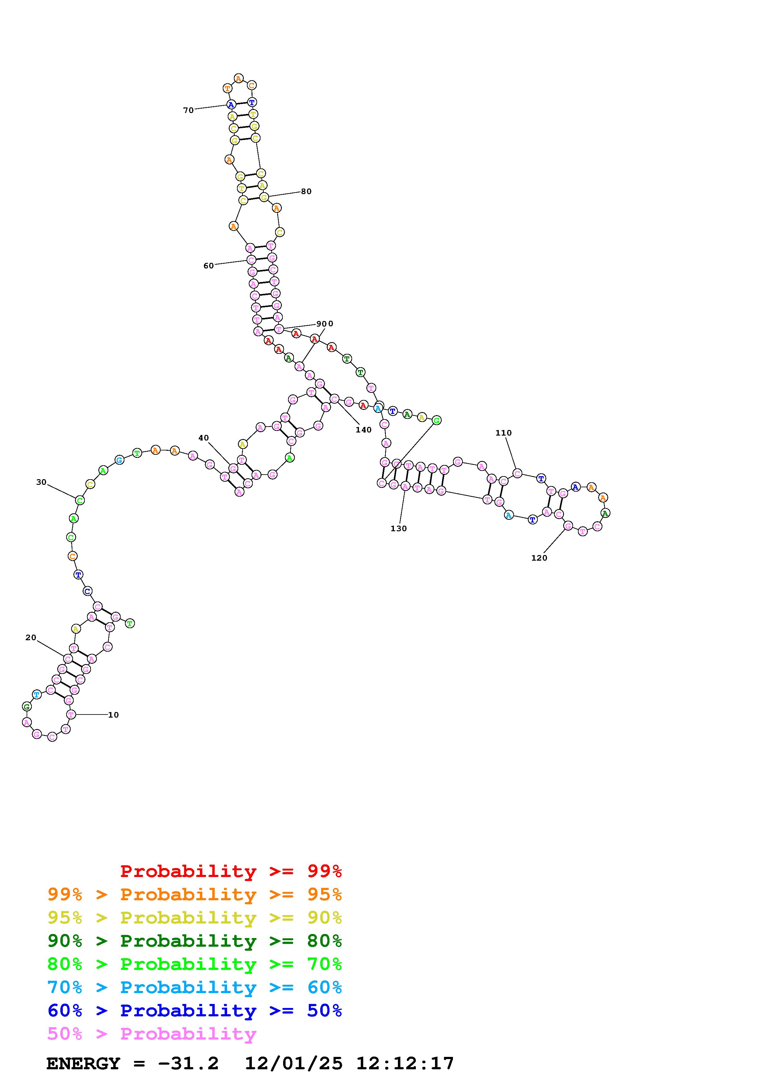 Fold Predict1.fasta Fold.ct --loop 30 --maximum 20 --percent 10 --temperature 310.15 --window 3