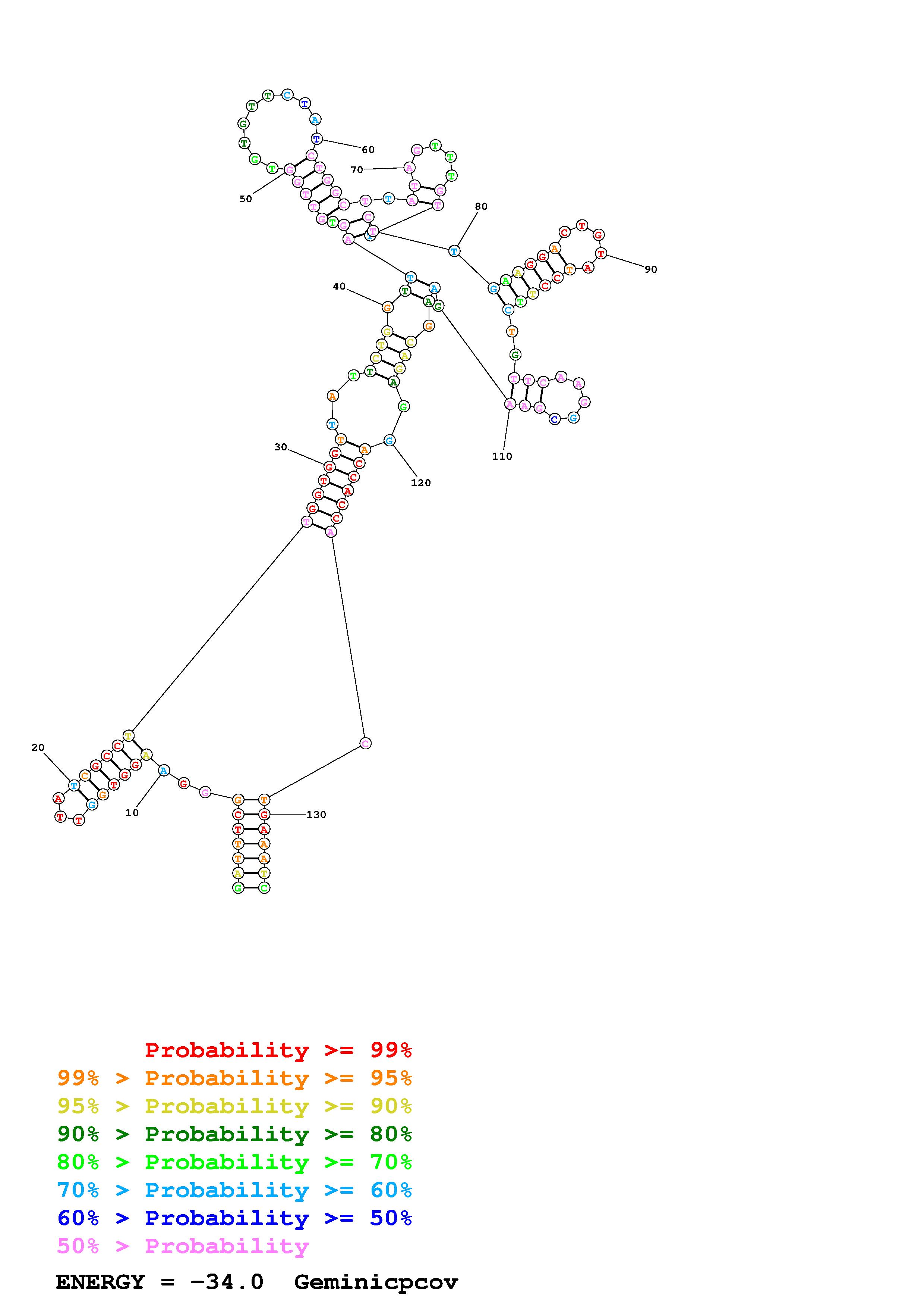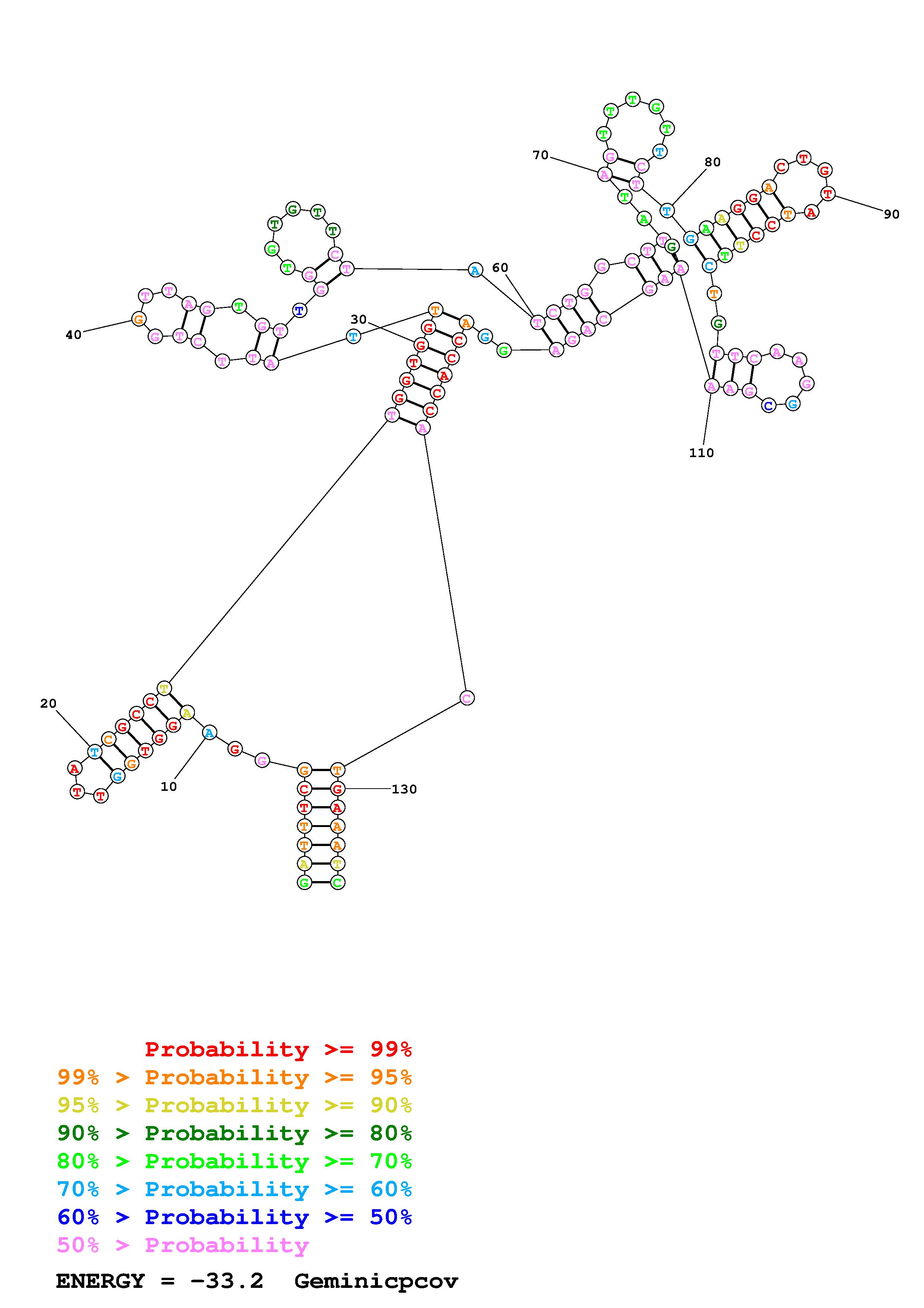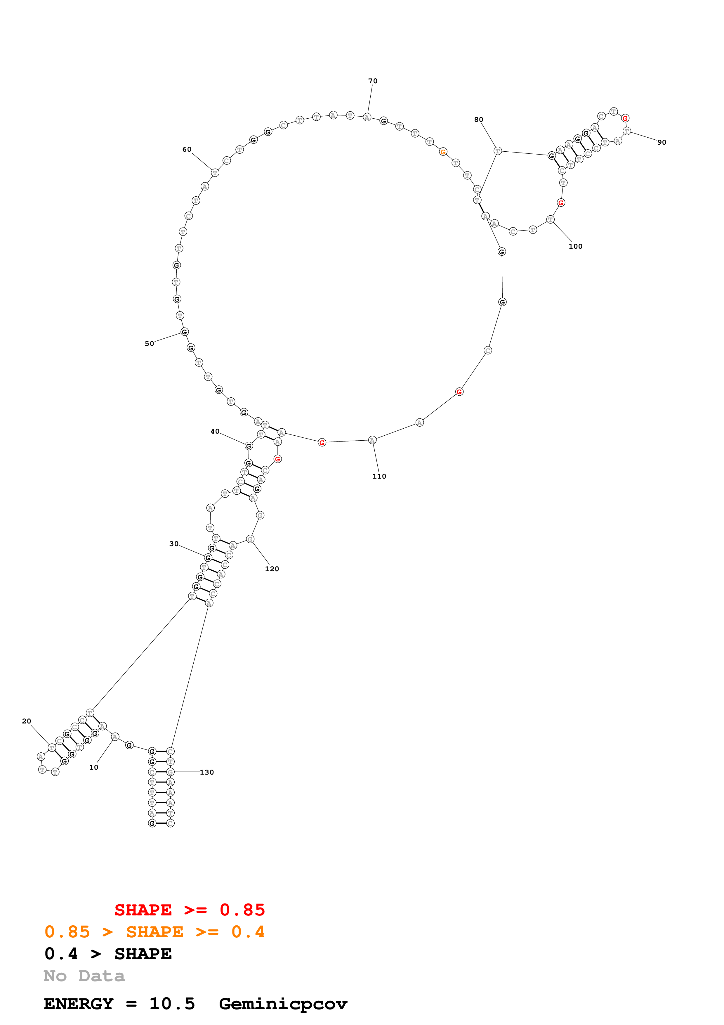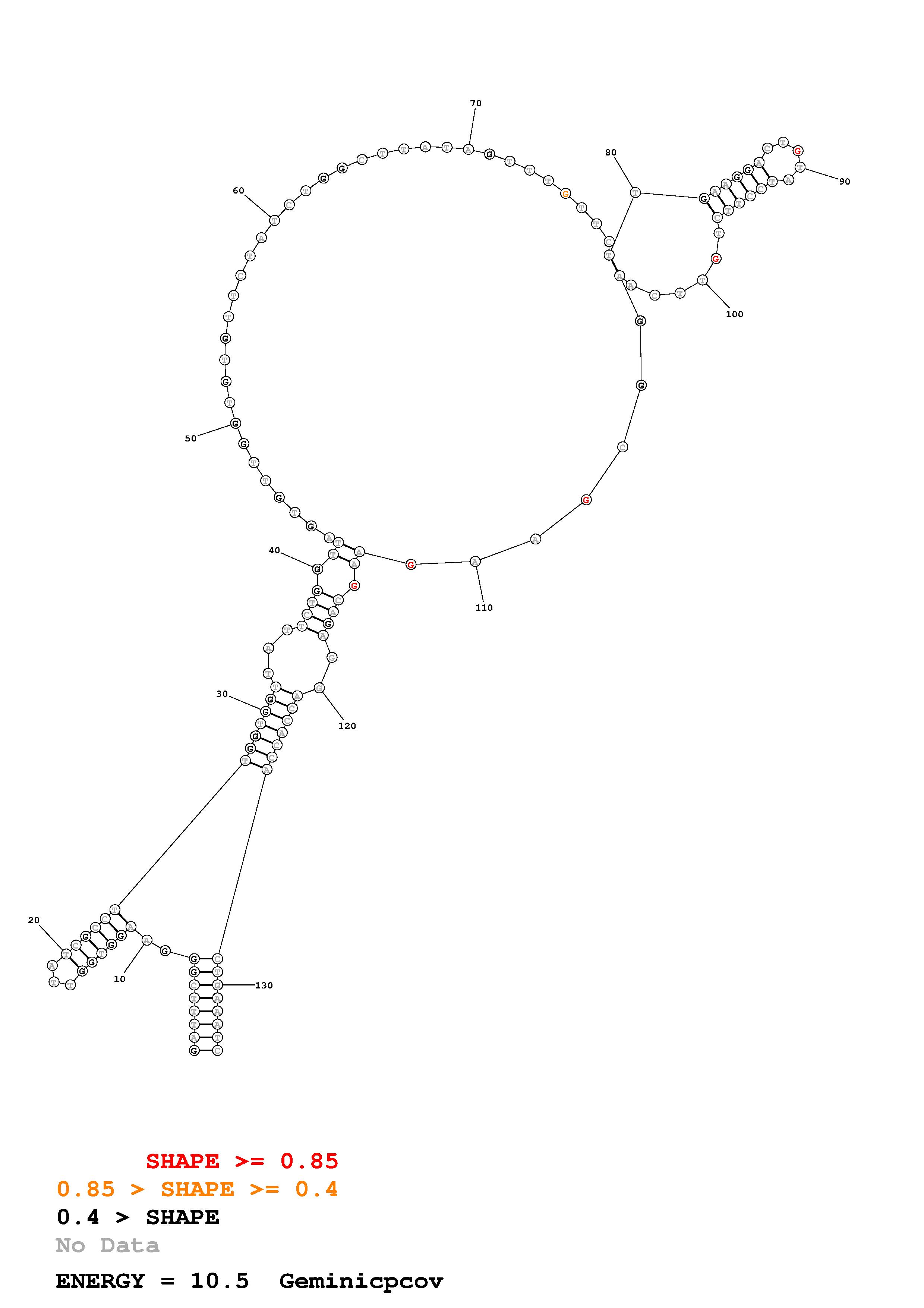 Fold Geminicpcov.fasta Fold.ct --DNA --loop 30 --maximum 20 --percent 10 --SHAPE ss_DNA_bst_3_0_adapter_N3_kethoxal_L2_Geminicpcov_135_Geminicpcov.shape --SHAPEintercept -0.6 --SHAPEslope 1.8 --temperature 310.15 --window 3