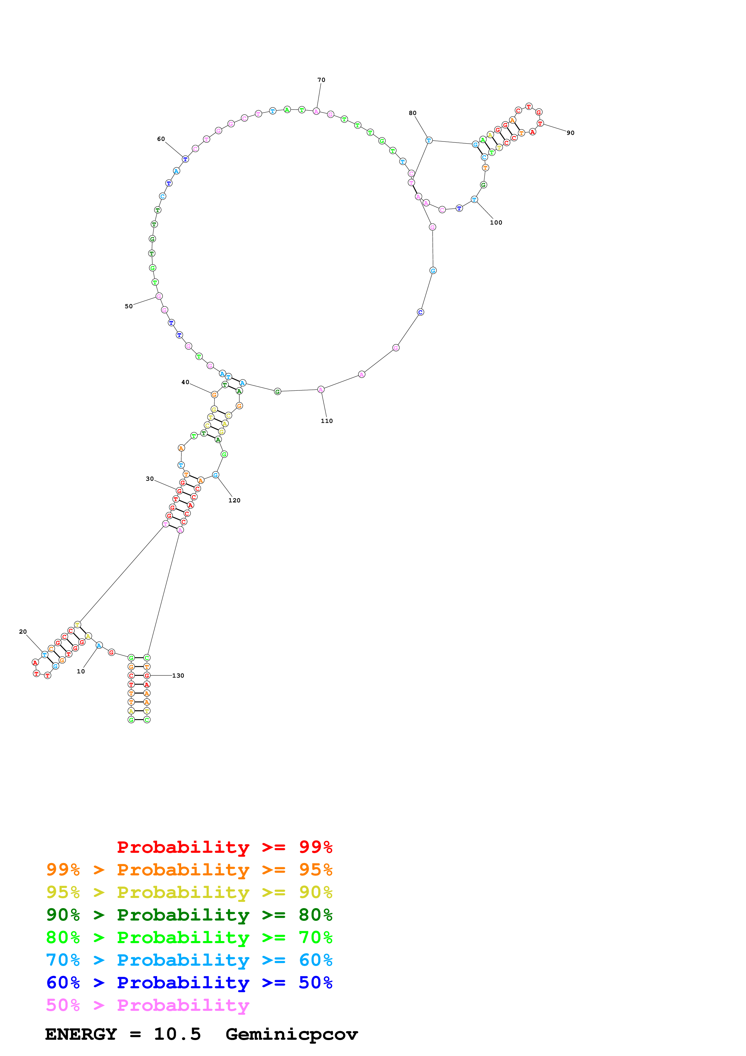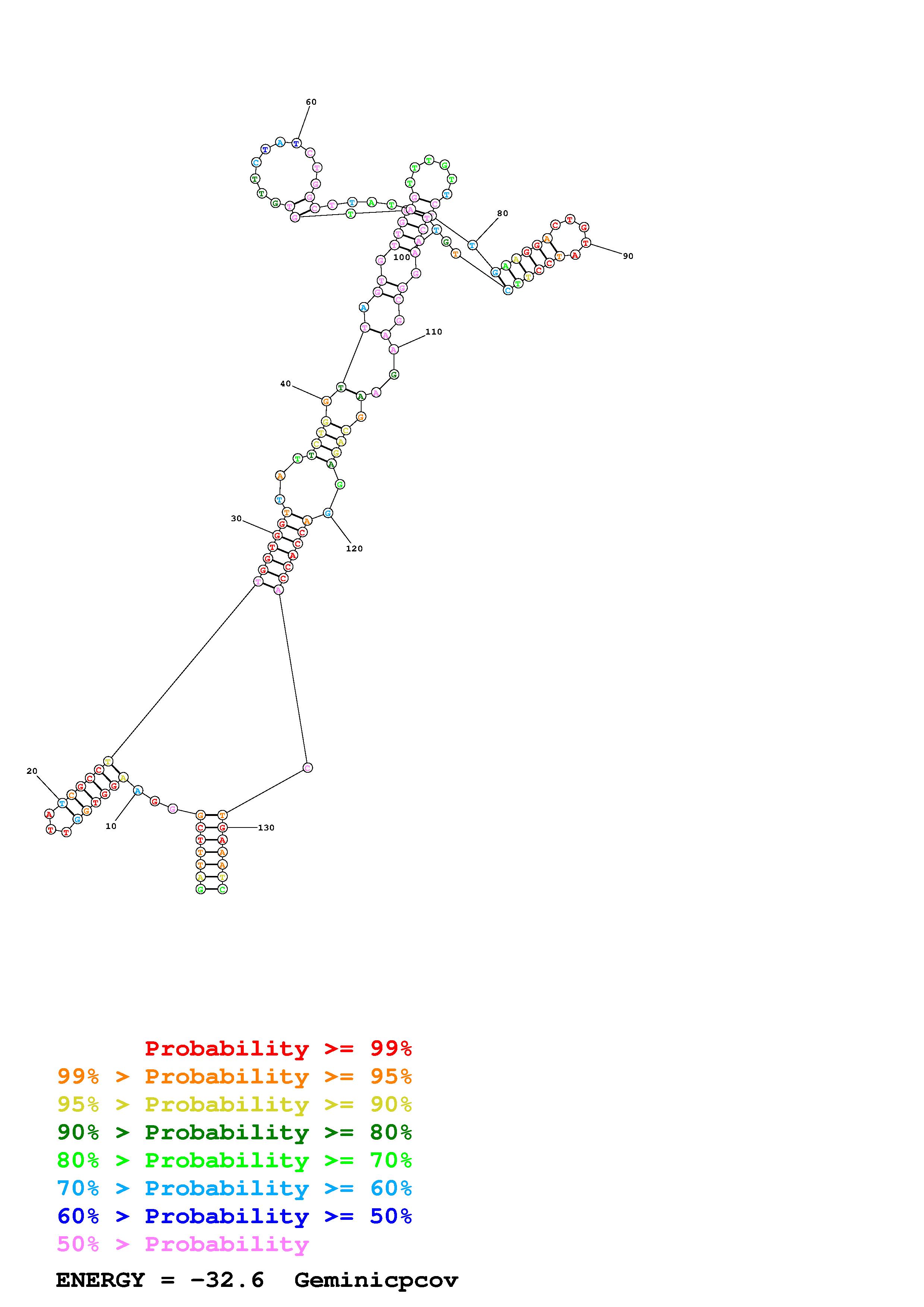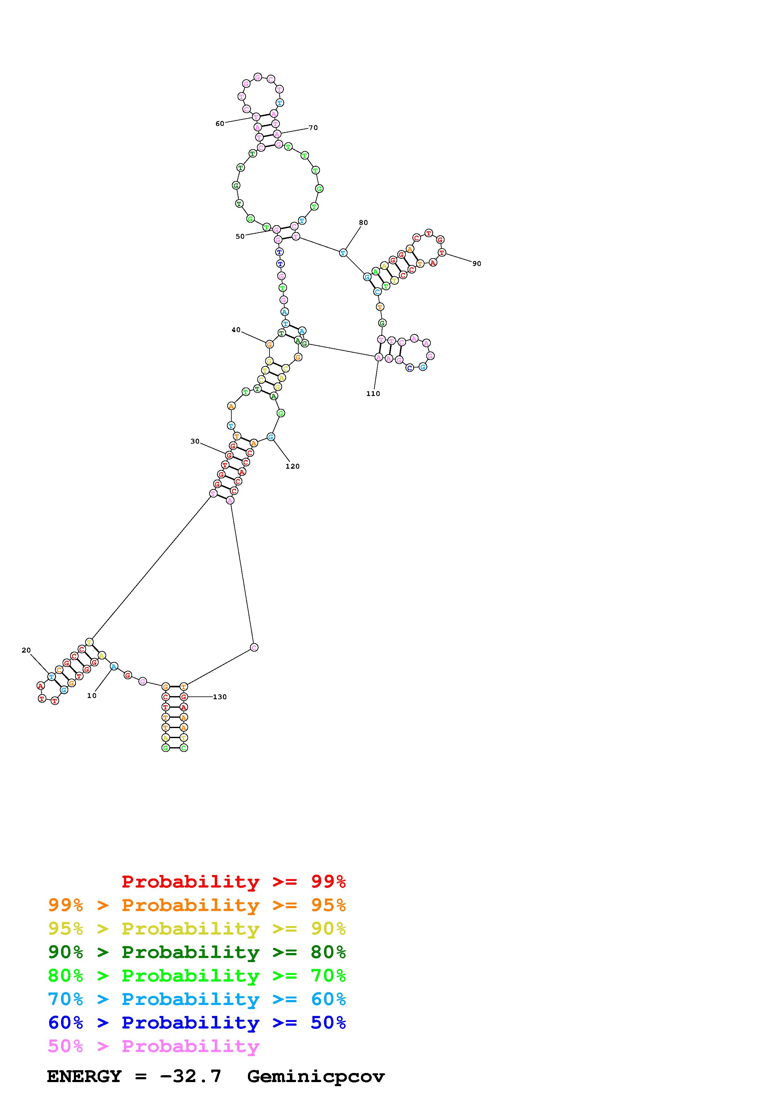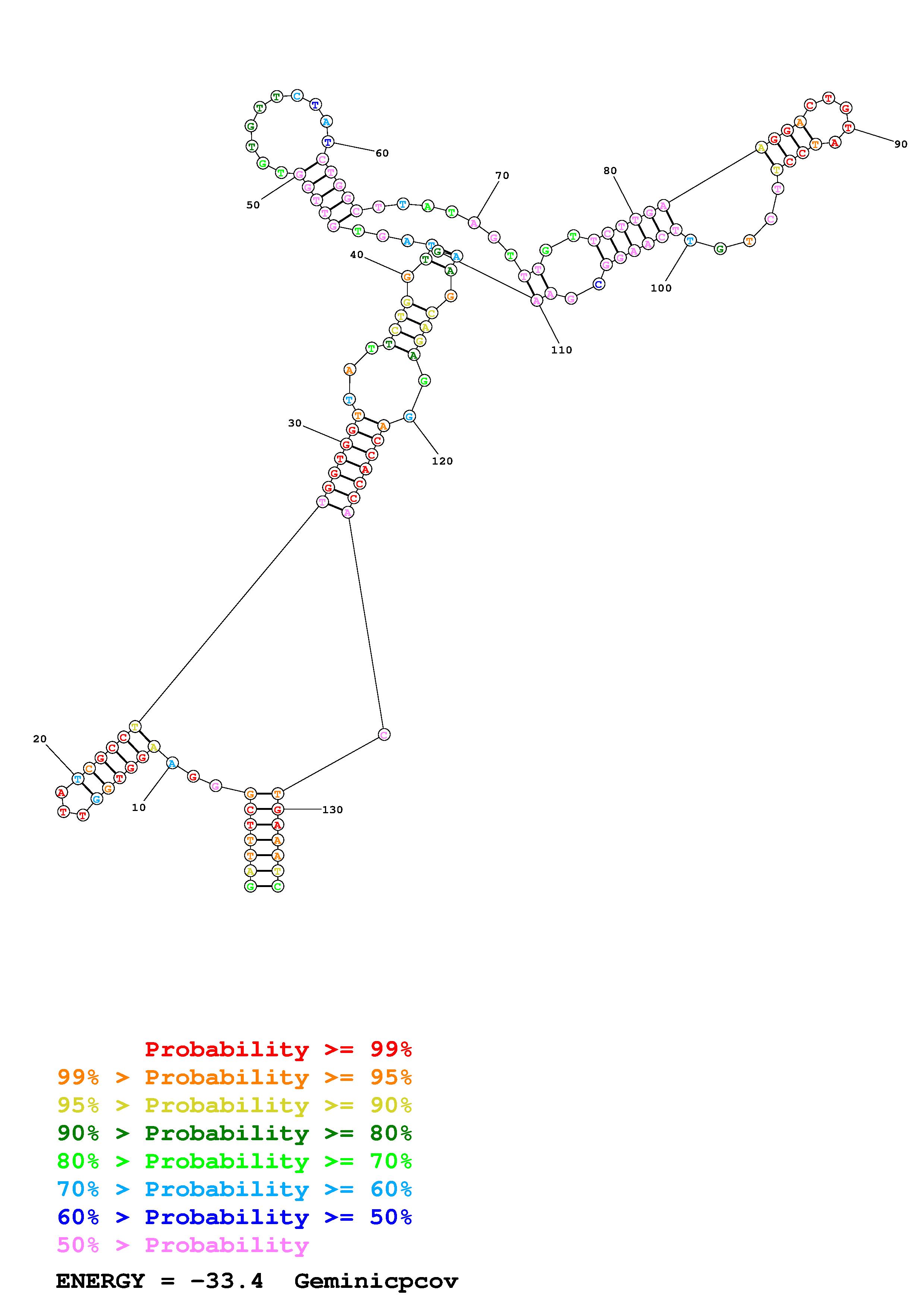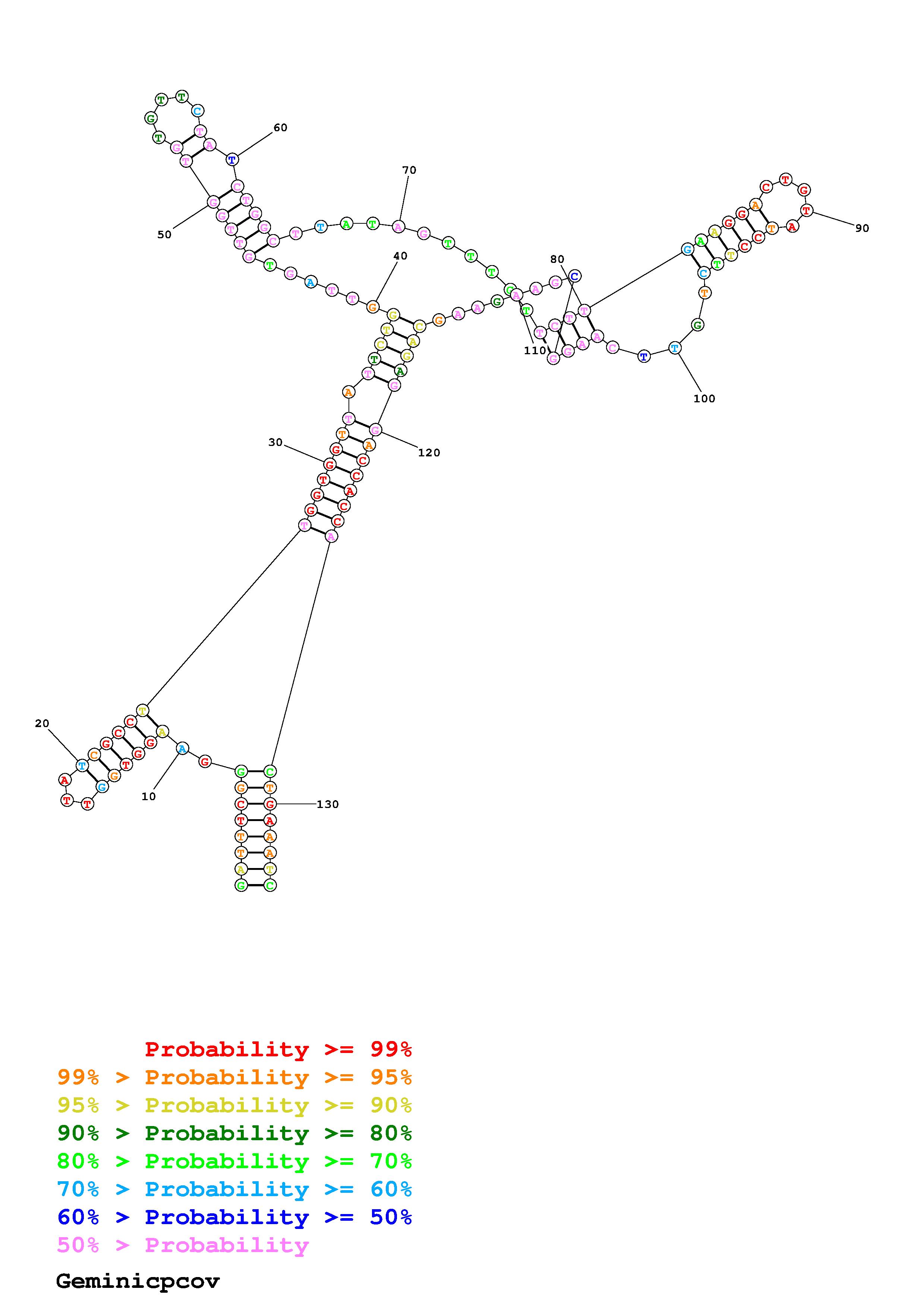 Fold Geminicpcov.fasta Fold.ct --DNA --loop 30 --maximum 20 --percent 10 --SHAPE ss_DNA_bst_3_0_adapter_N3_kethoxal_L2_Geminicpcov_135_Geminicpcov.shape --SHAPEintercept -0.6 --SHAPEslope 1.8 --temperature 310.15 --window 3
