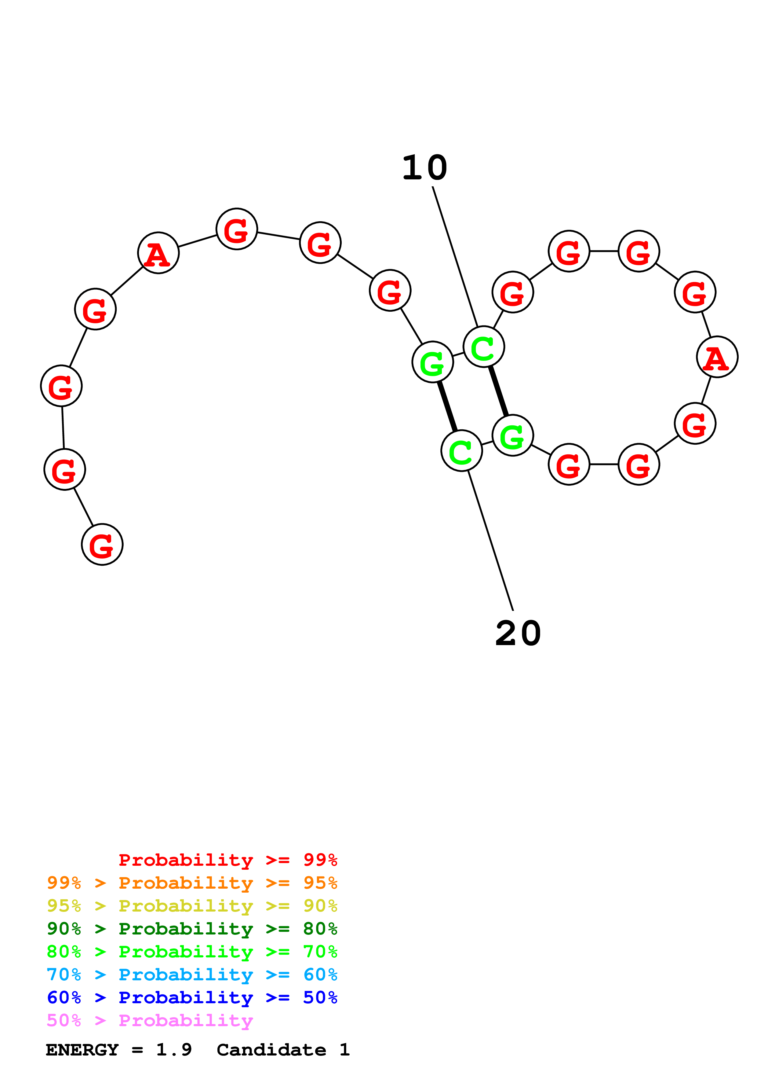 (Generate a structure or structures composed of highly probable base pairs. This is an alternative method for structure prediction that may have higher fidelity in structure prediction.)