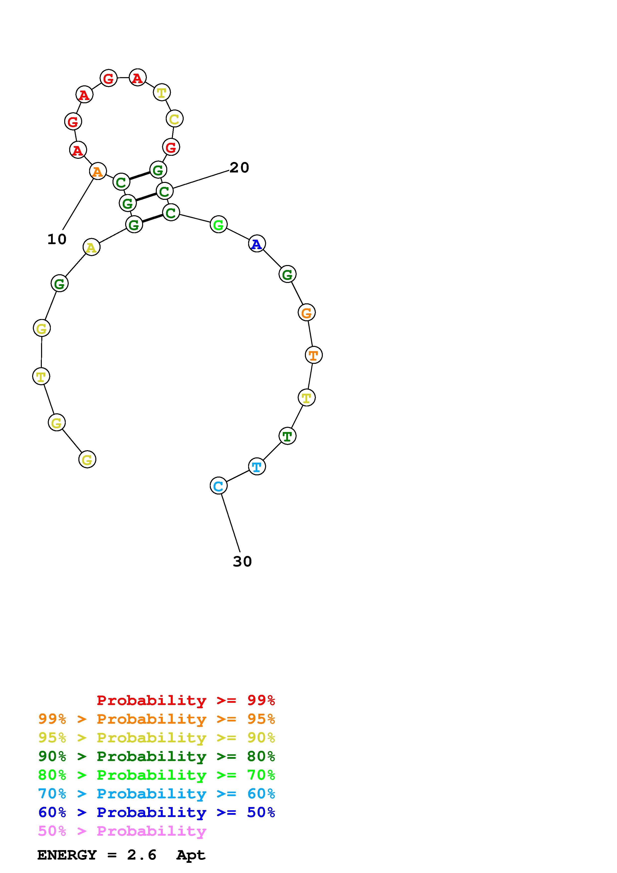 Fold Predict1.fasta Fold.ct --DNA --loop 30 --maximum 20 --percent 10 --temperature 298.15 --window 3