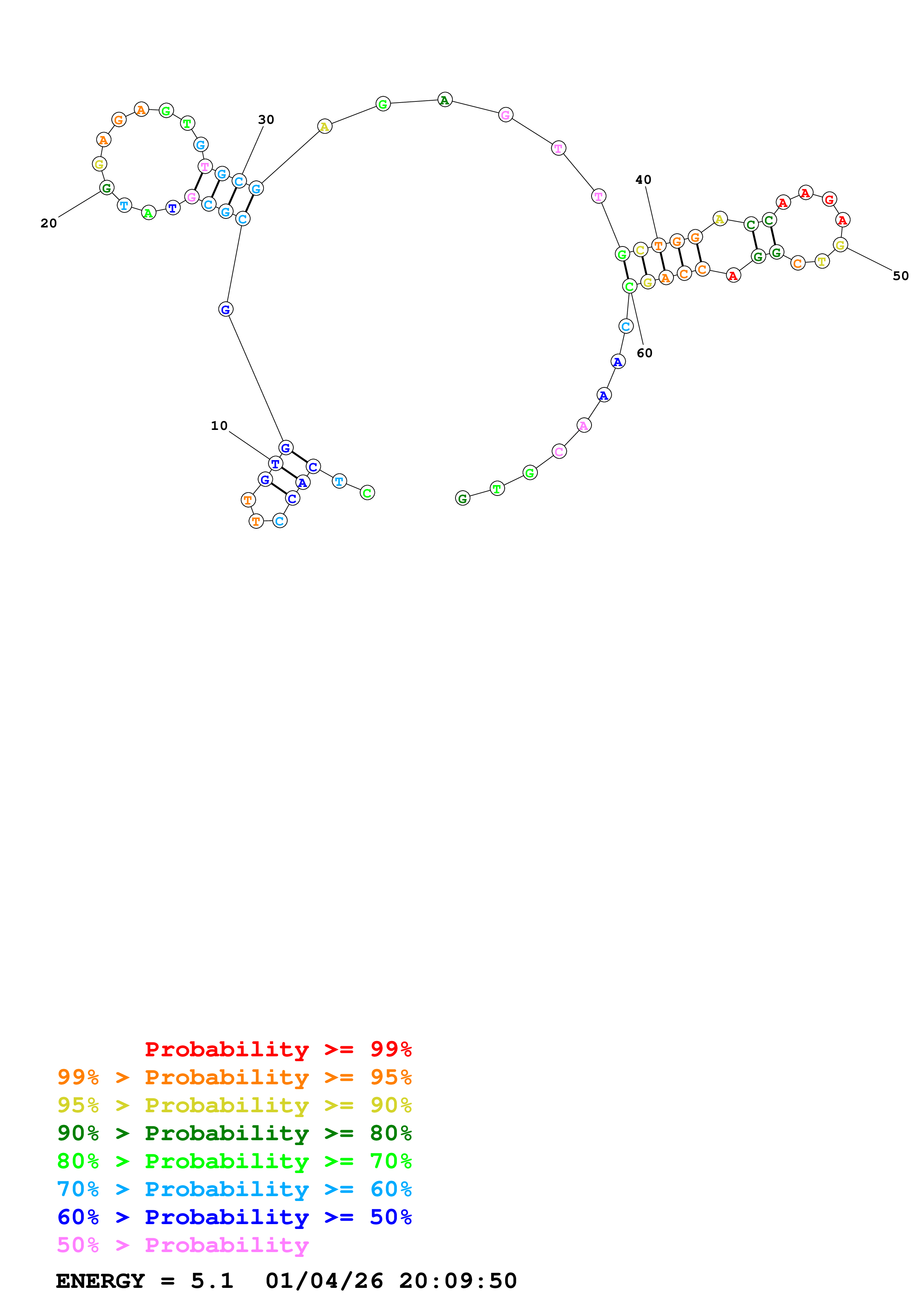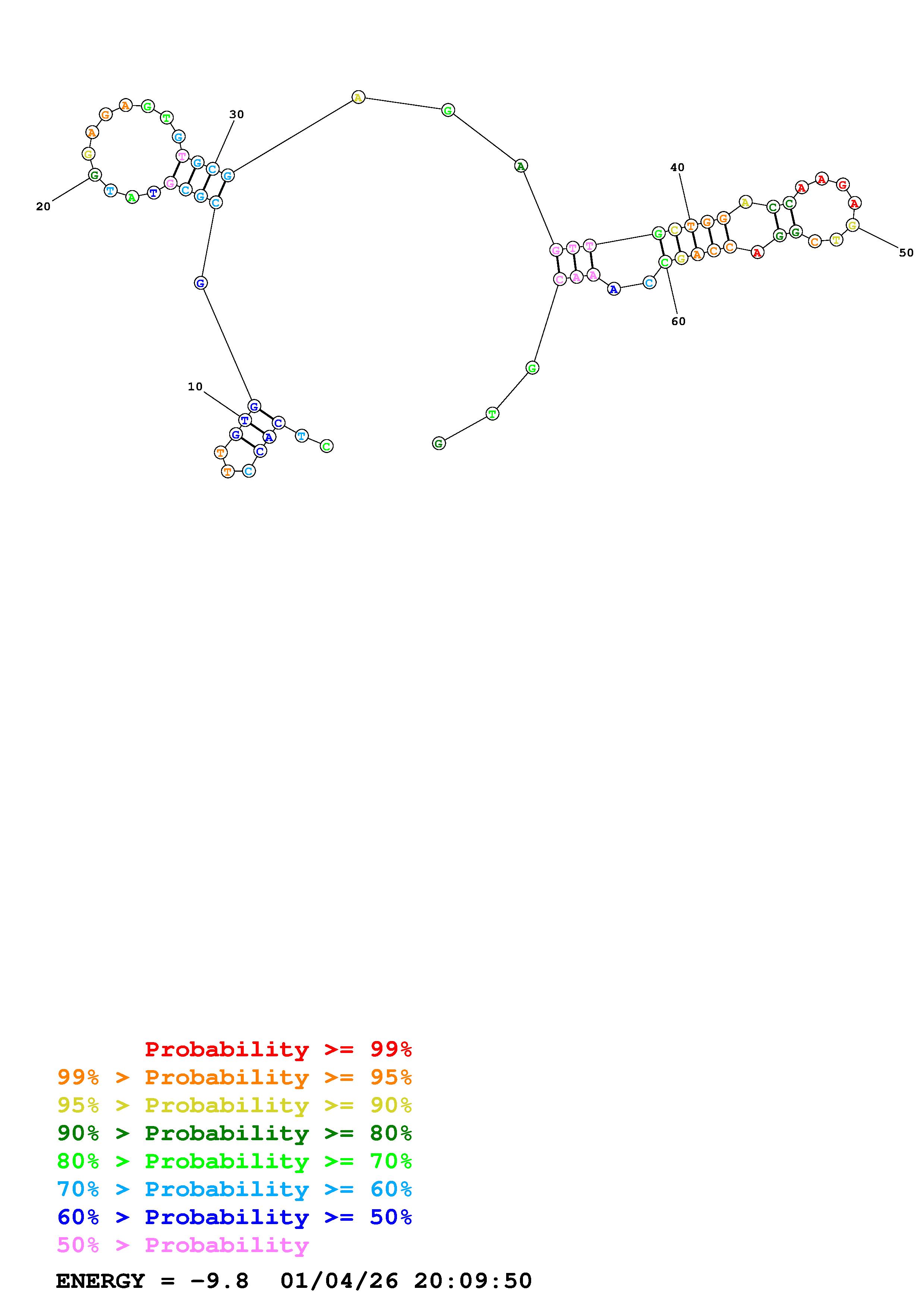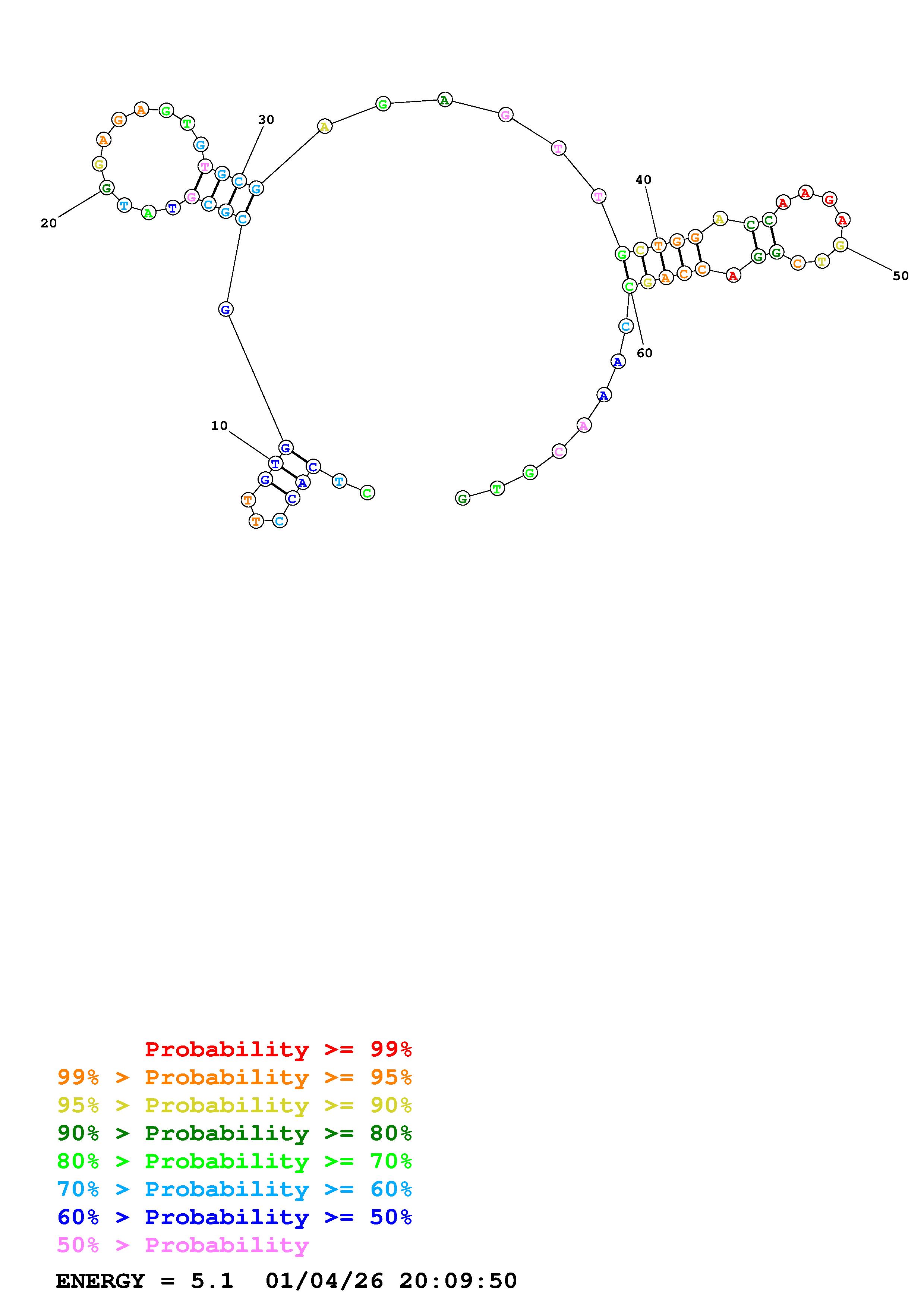 Fold Predict1.fasta Fold.ct --DNA --loop 30 --maximum 20 --percent 10 --temperature 310.15 --window 3