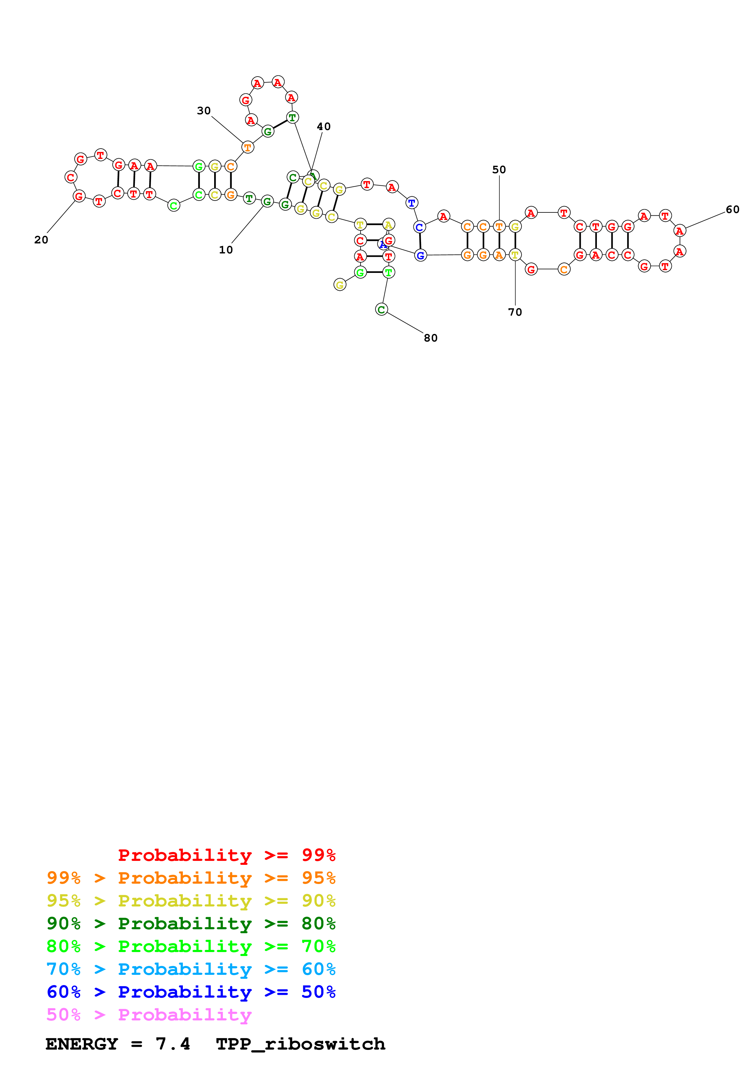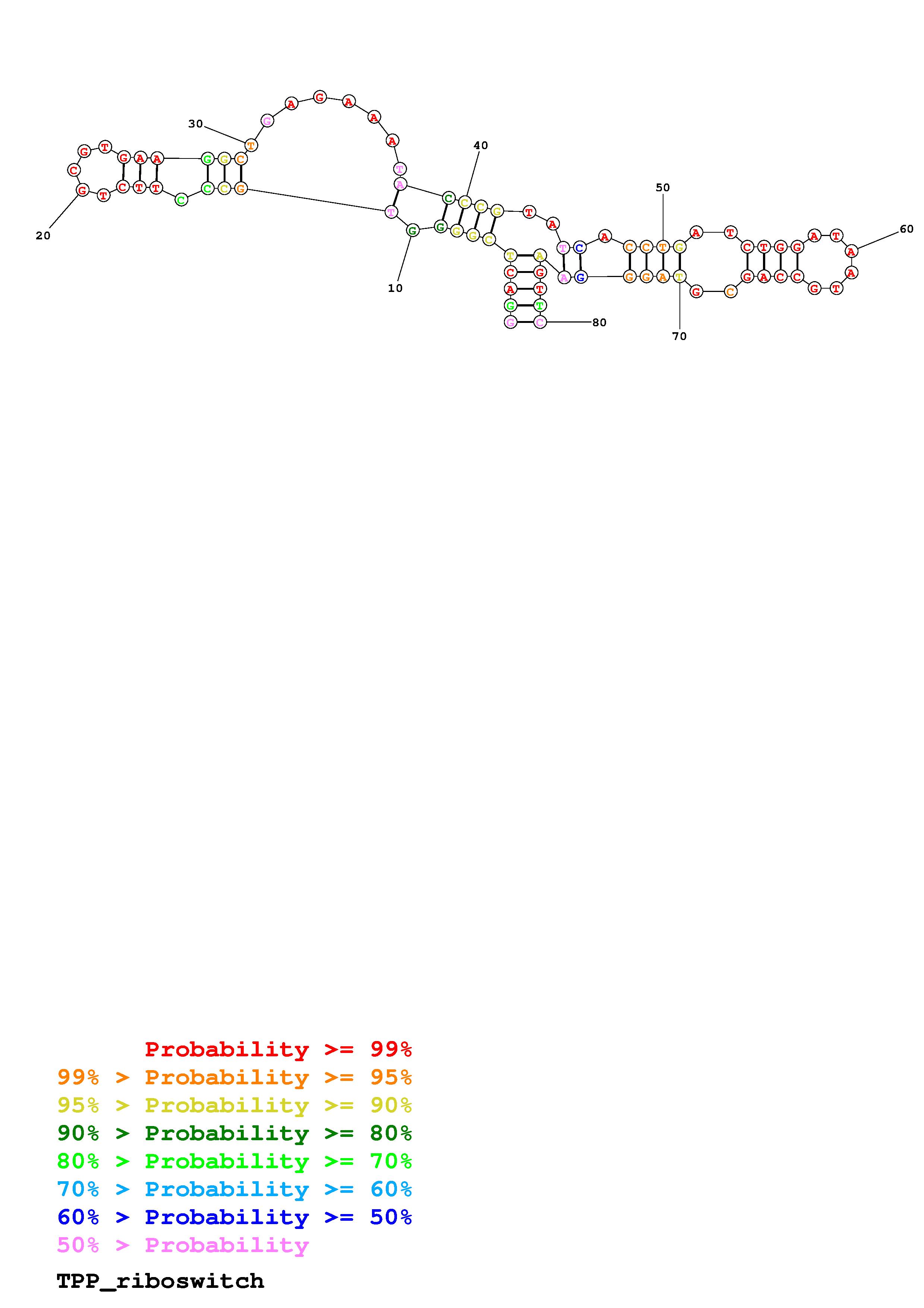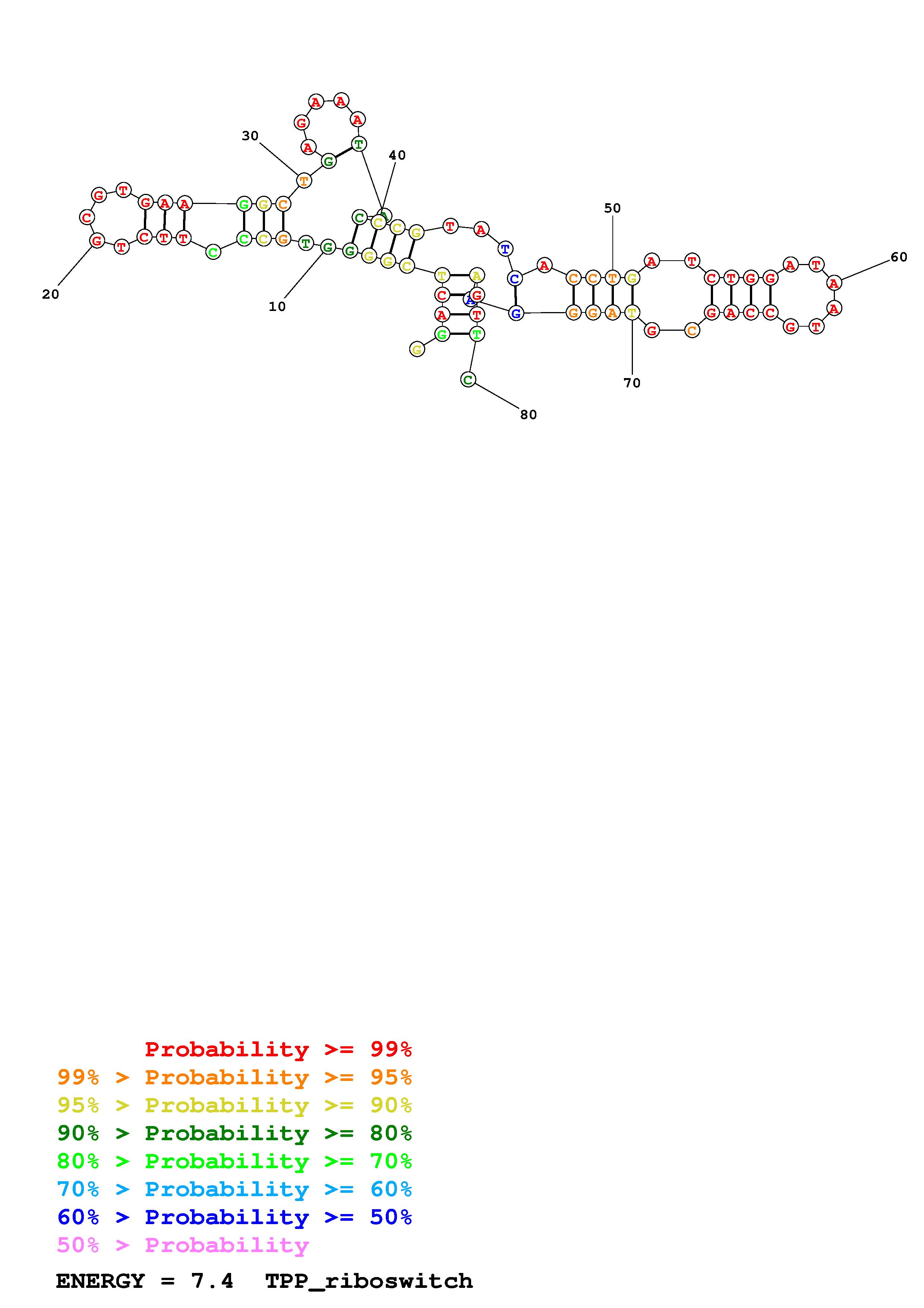 Fold TPP_riboswitch.fa Fold.ct --DNA --loop 30 --maximum 20 --percent 10 --SHAPE example_TPP_riboswitch.shape --SHAPEintercept -0.6 --SHAPEslope 1.8 --temperature 310.15 --window 3