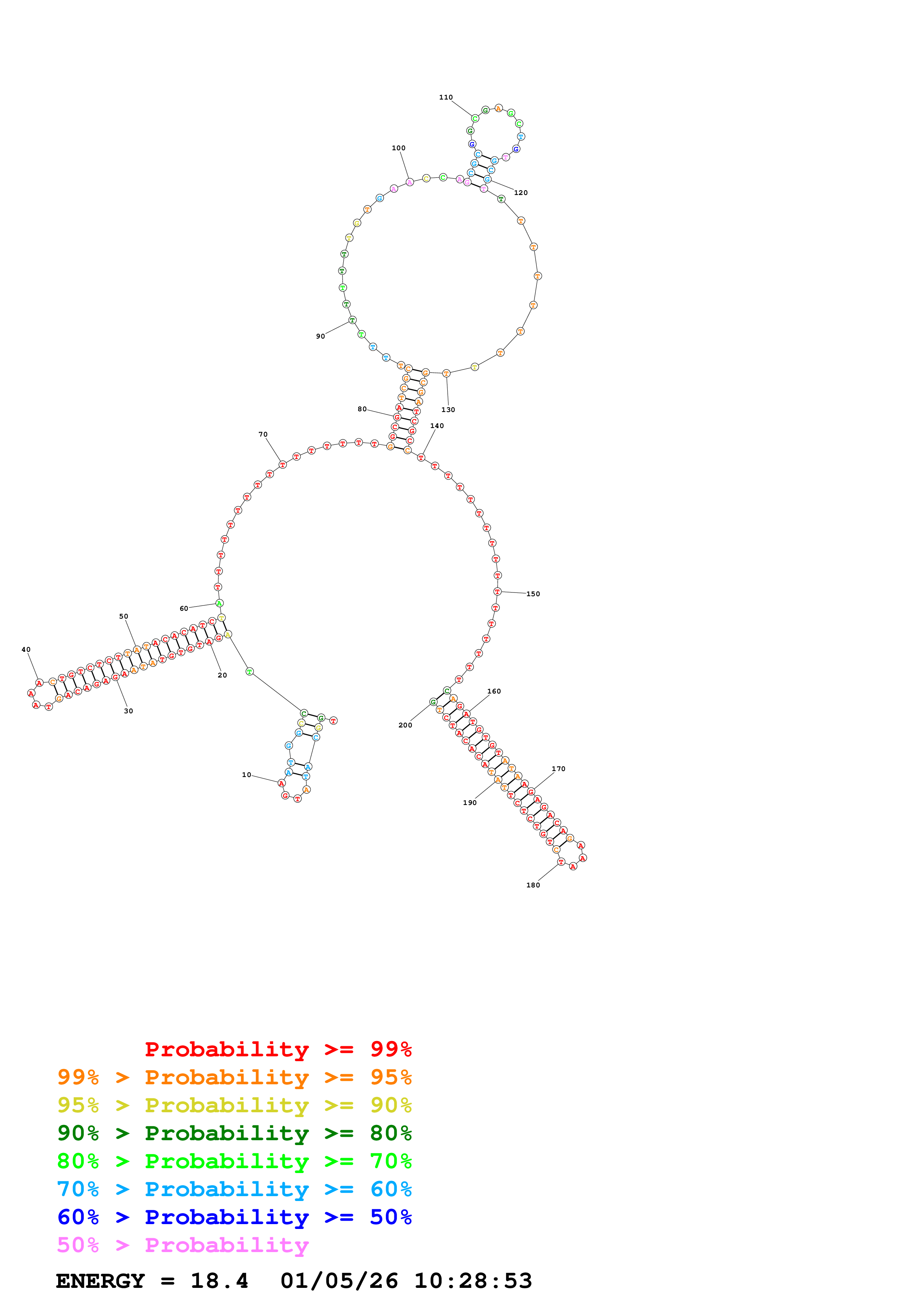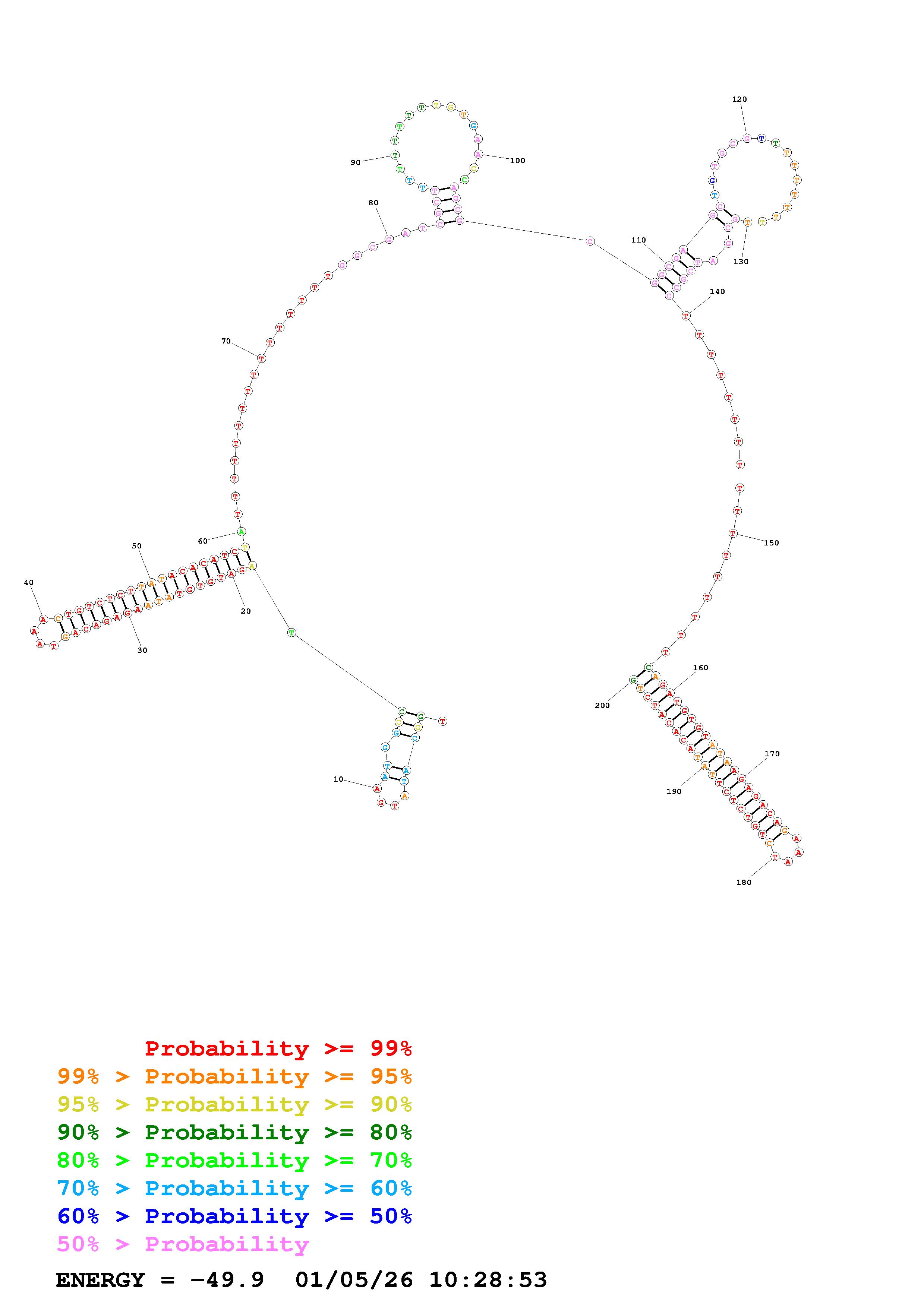 Fold Predict1.fasta Fold.ct --DNA --loop 30 --maximum 20 --percent 10 --temperature 310.15 --window 3