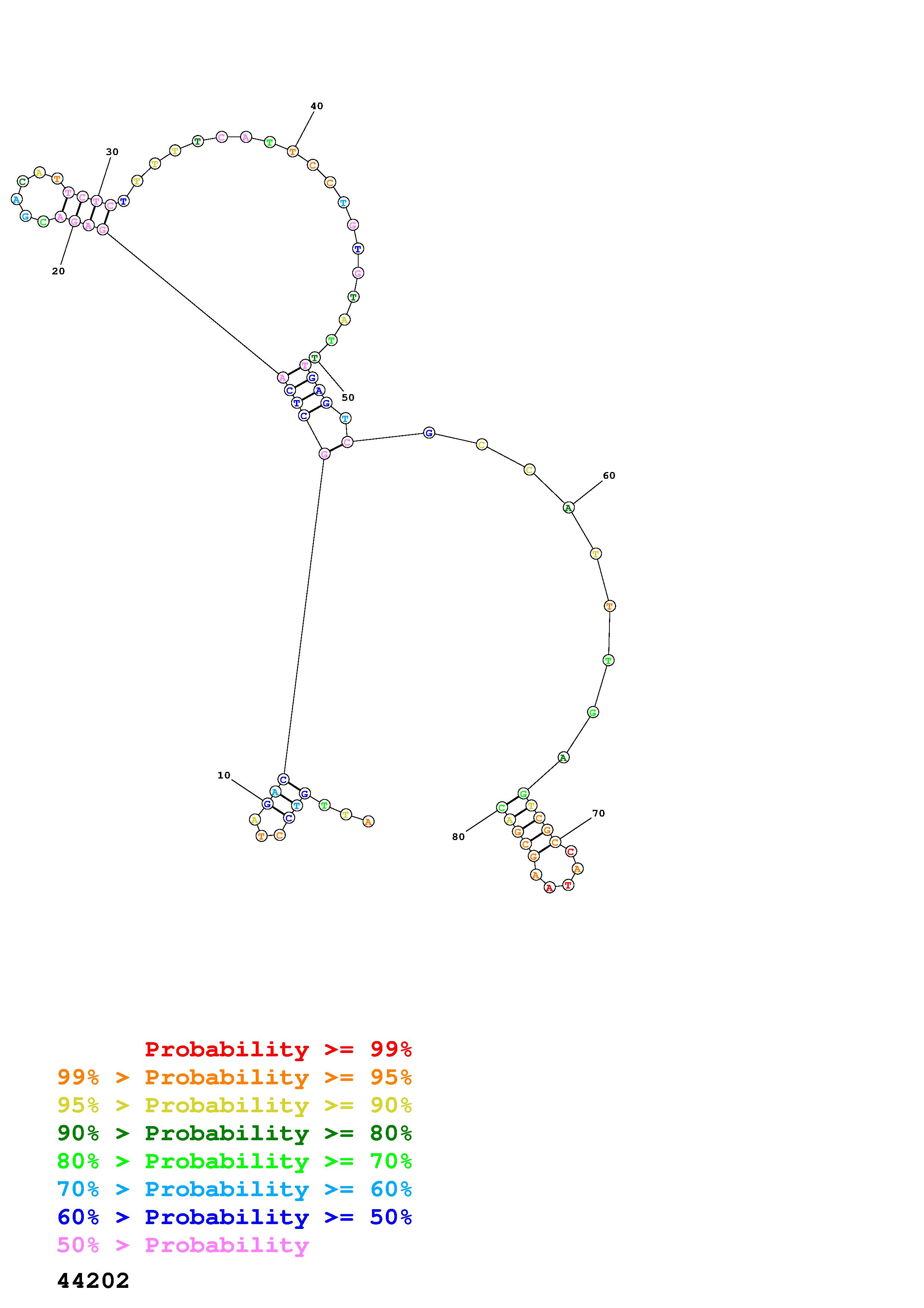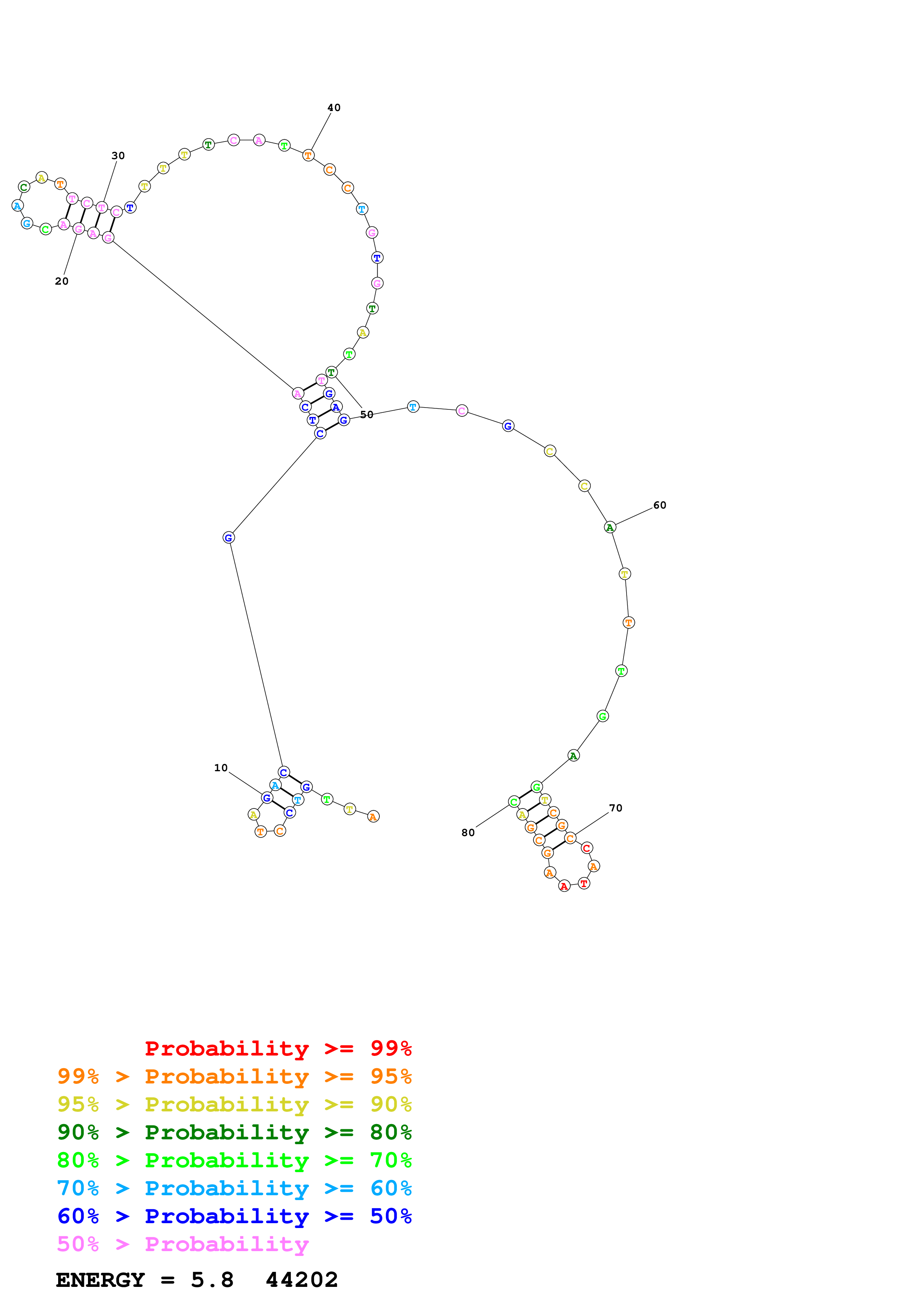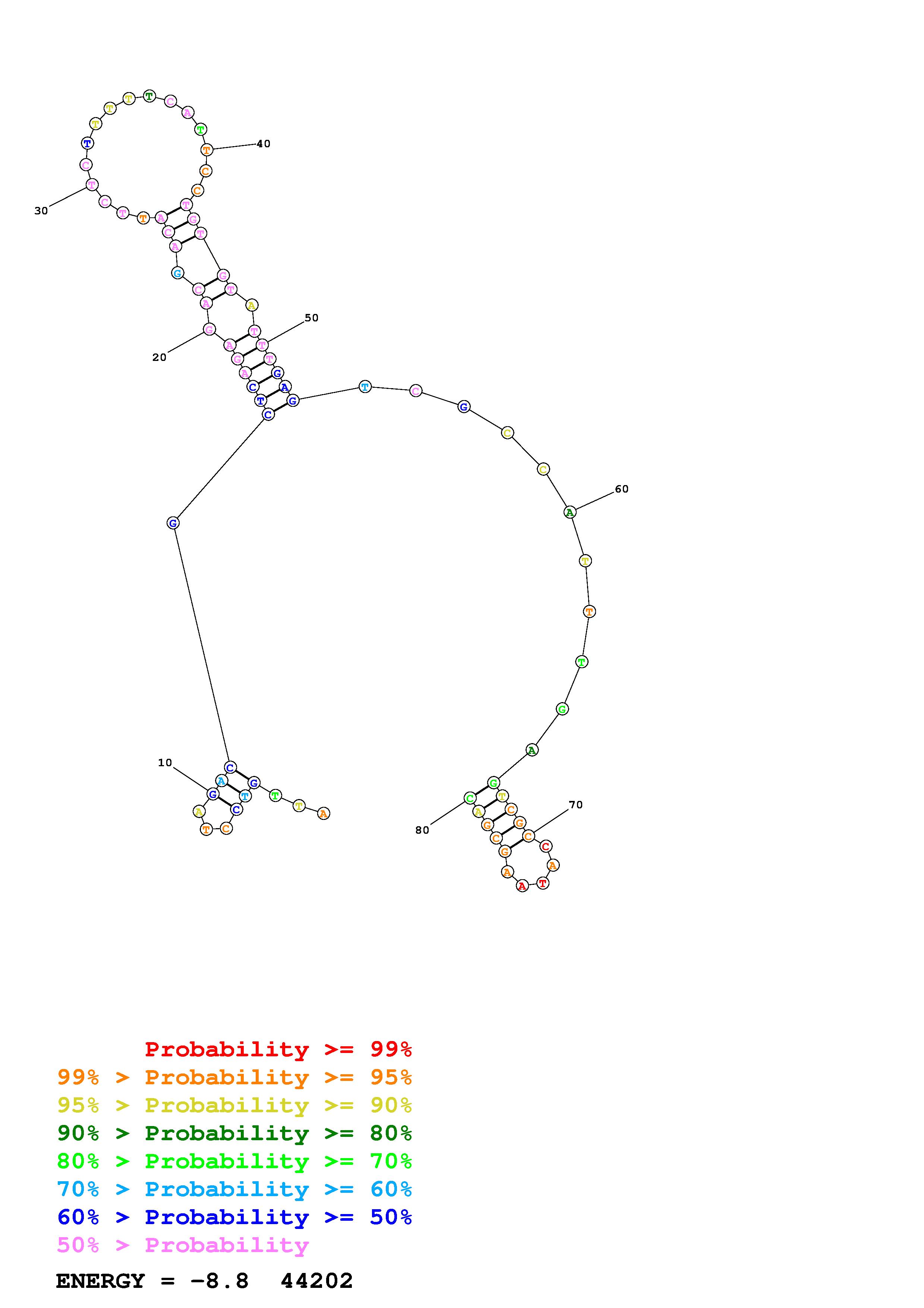 Fold Predict1.fasta Fold.ct --DNA --loop 30 --maximum 20 --percent 10 --temperature 310.15 --window 3