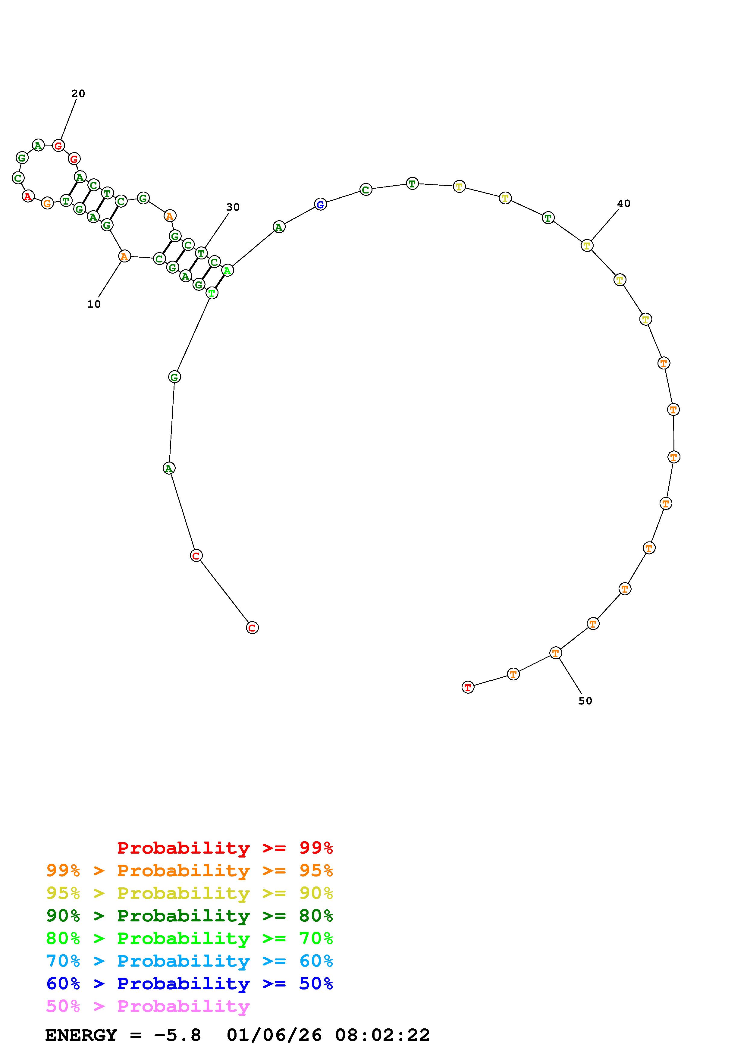 Fold Predict1.fasta Fold.ct --DNA --loop 30 --maximum 20 --percent 10 --temperature 310.15 --window 3