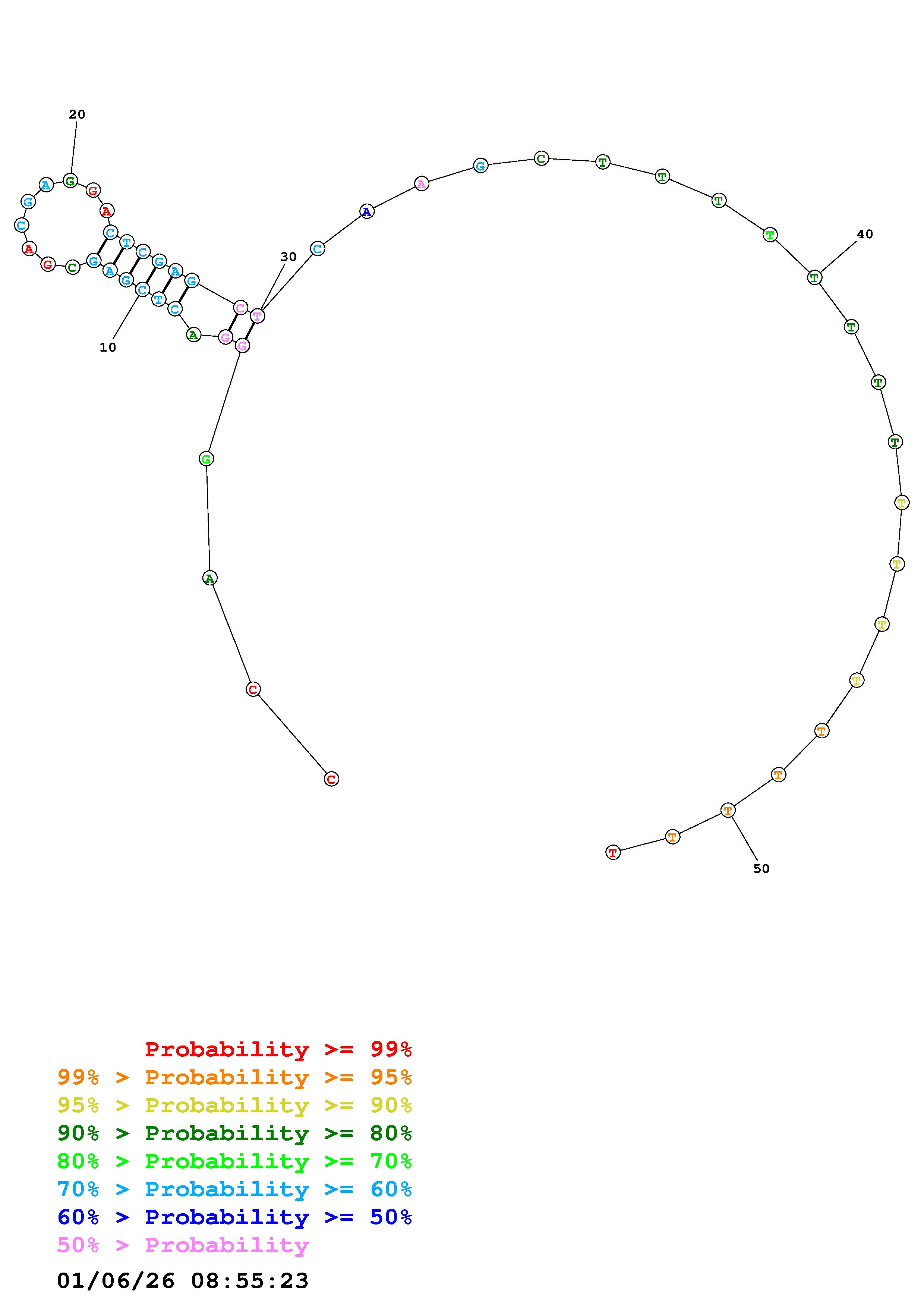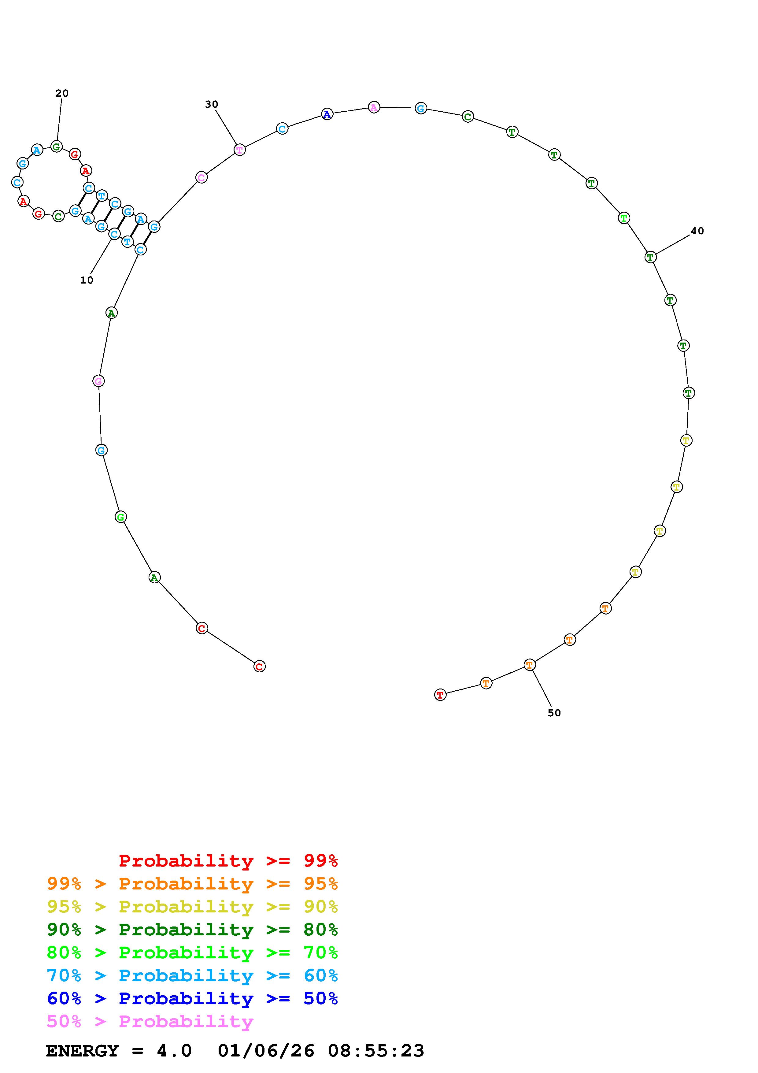 Fold Predict1.fasta Fold.ct --DNA --loop 30 --maximum 20 --percent 10 --temperature 310.15 --window 3