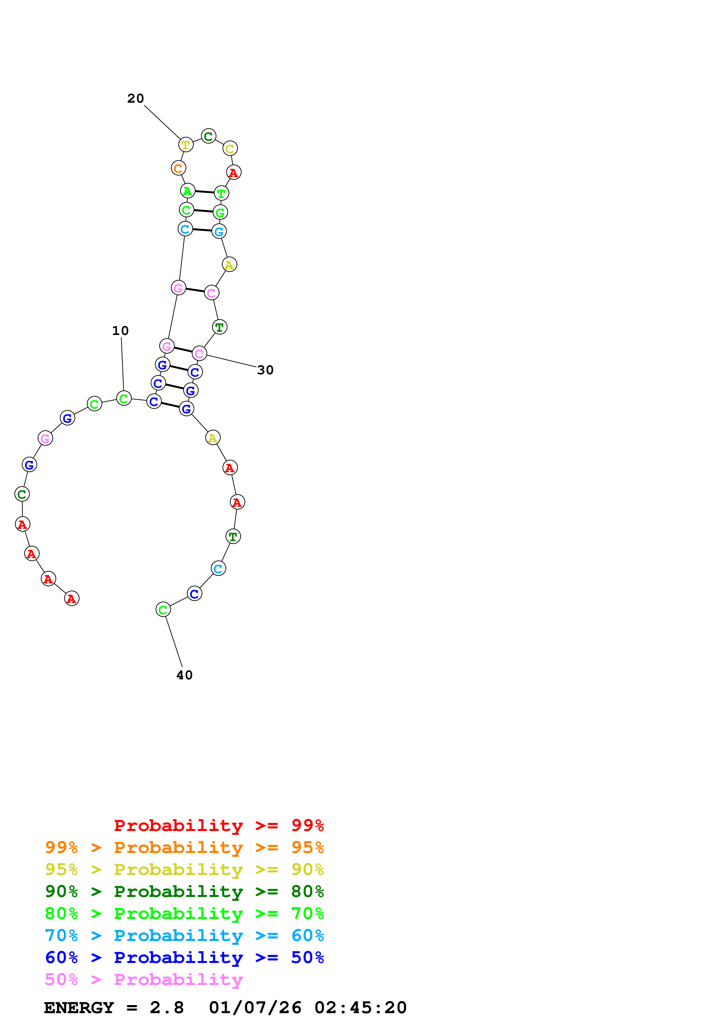 Fold Predict1.fasta Fold.ct --DNA --loop 30 --maximum 20 --percent 10 --temperature 310.15 --window 3