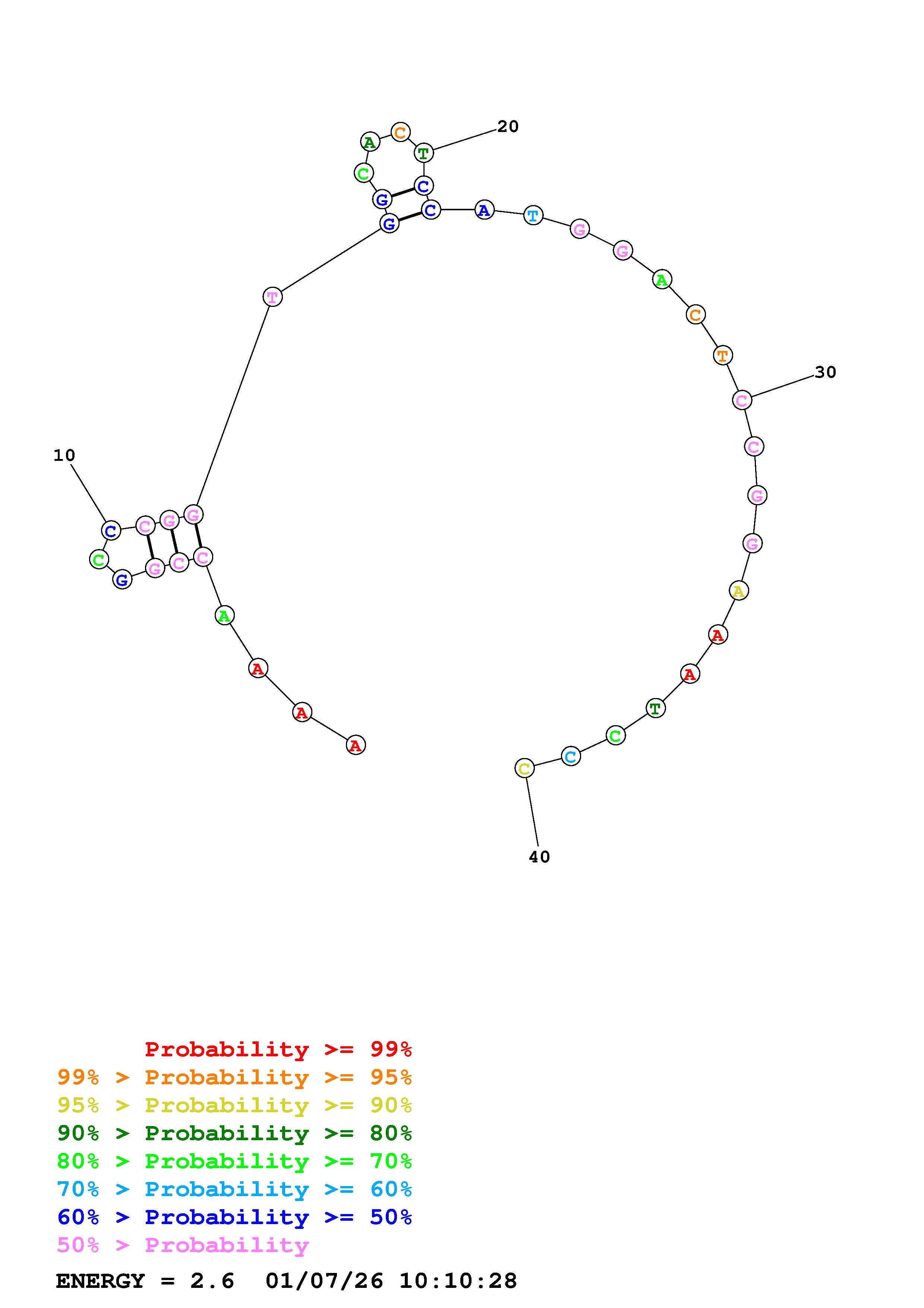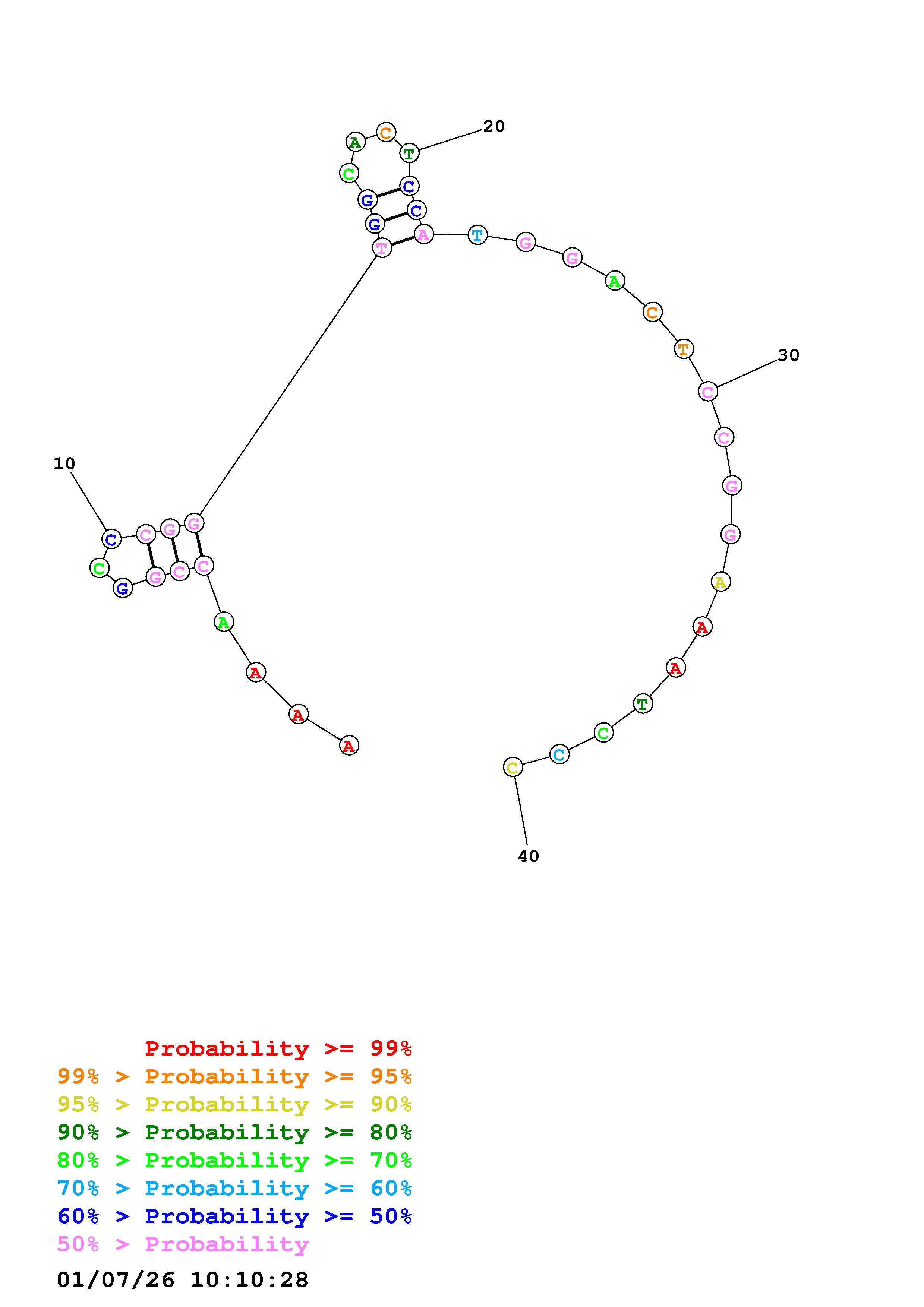 Fold Predict1.fasta Fold.ct --DNA --loop 30 --maximum 20 --percent 10 --temperature 310.15 --window 3