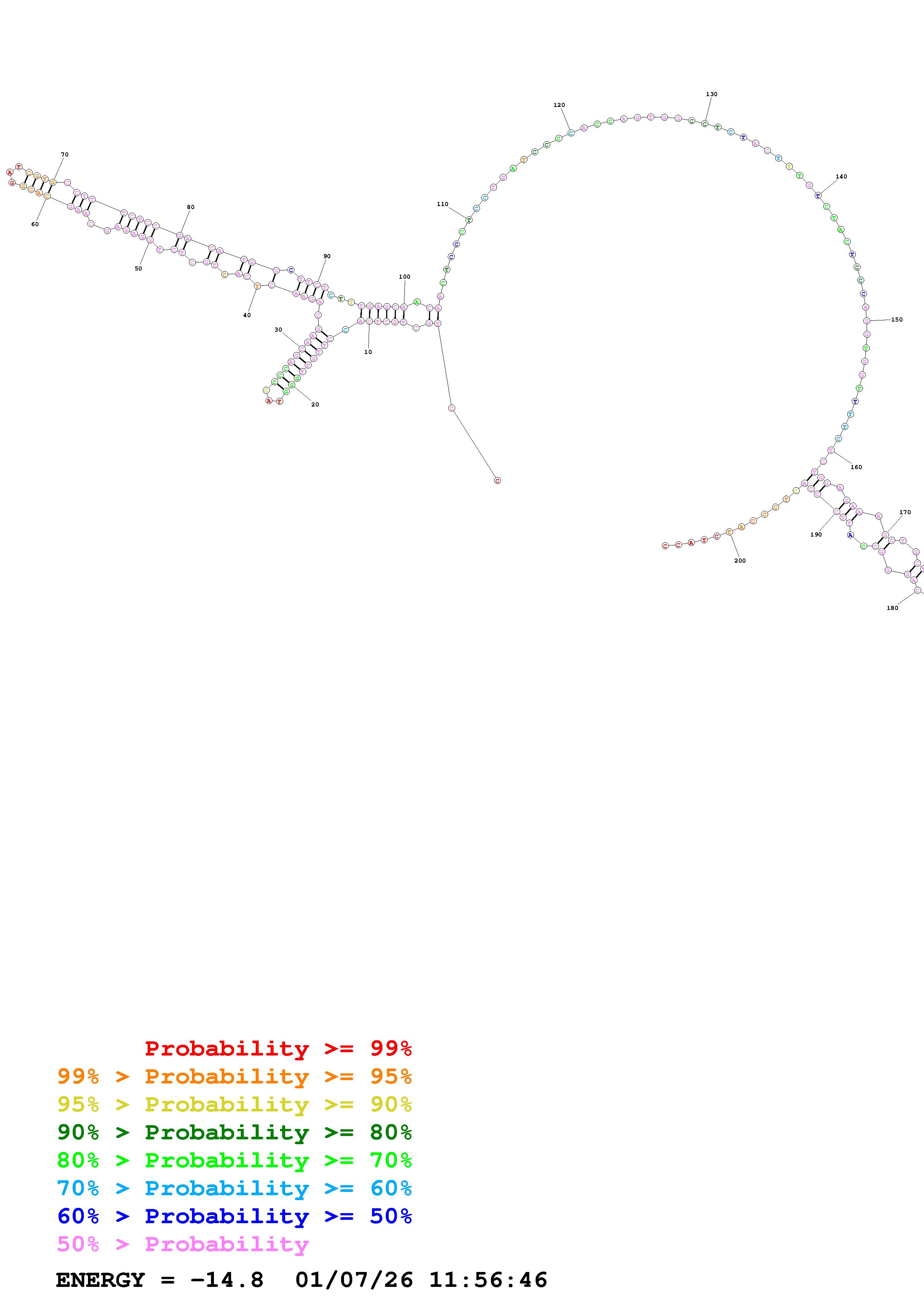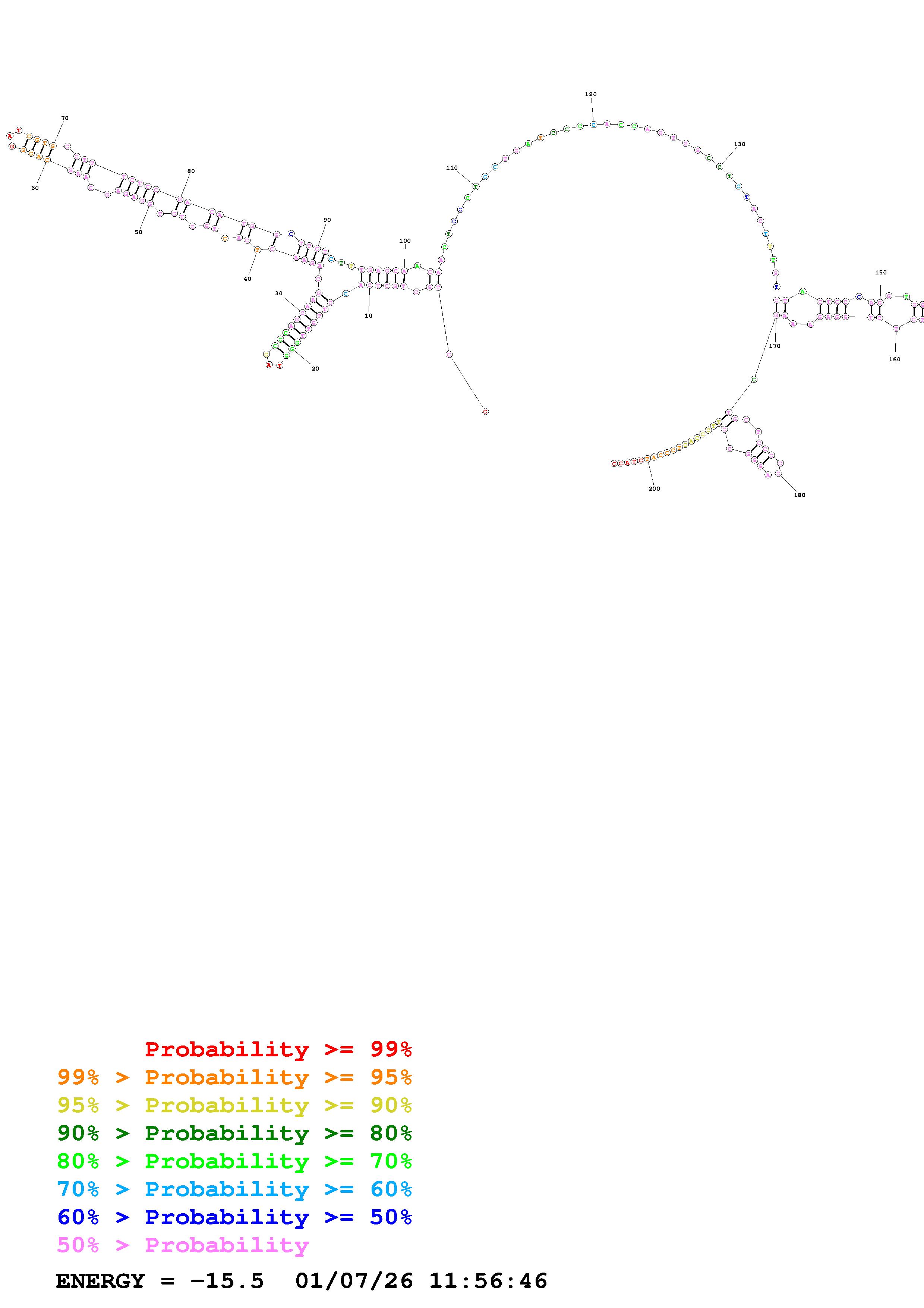 Fold Predict1.fasta Fold.ct --DNA --loop 30 --maximum 20 --percent 10 --temperature 331 --window 3