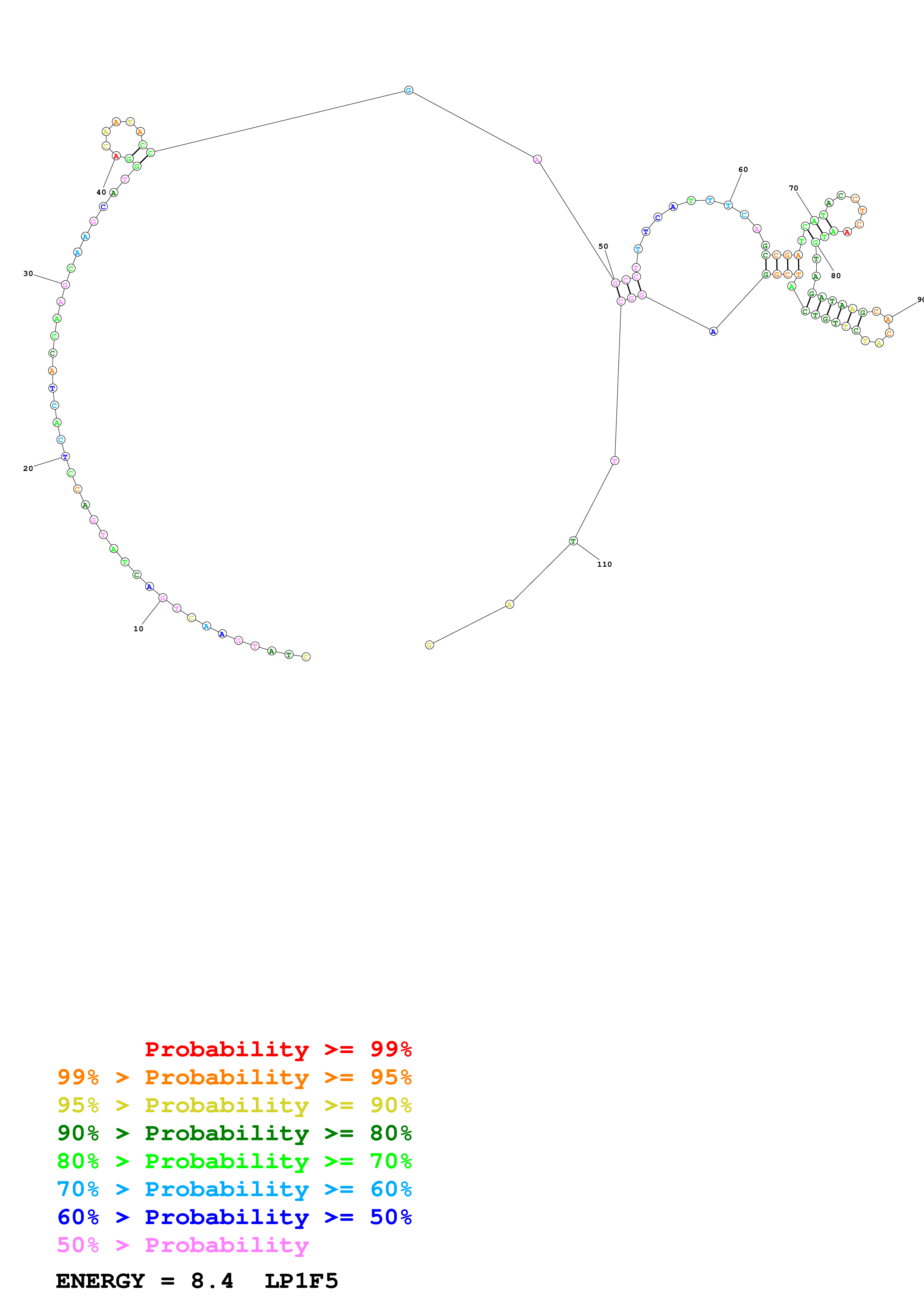 Fold Predict1.fasta Fold.ct --DNA --loop 30 --maximum 20 --percent 10 --temperature 297 --window 3