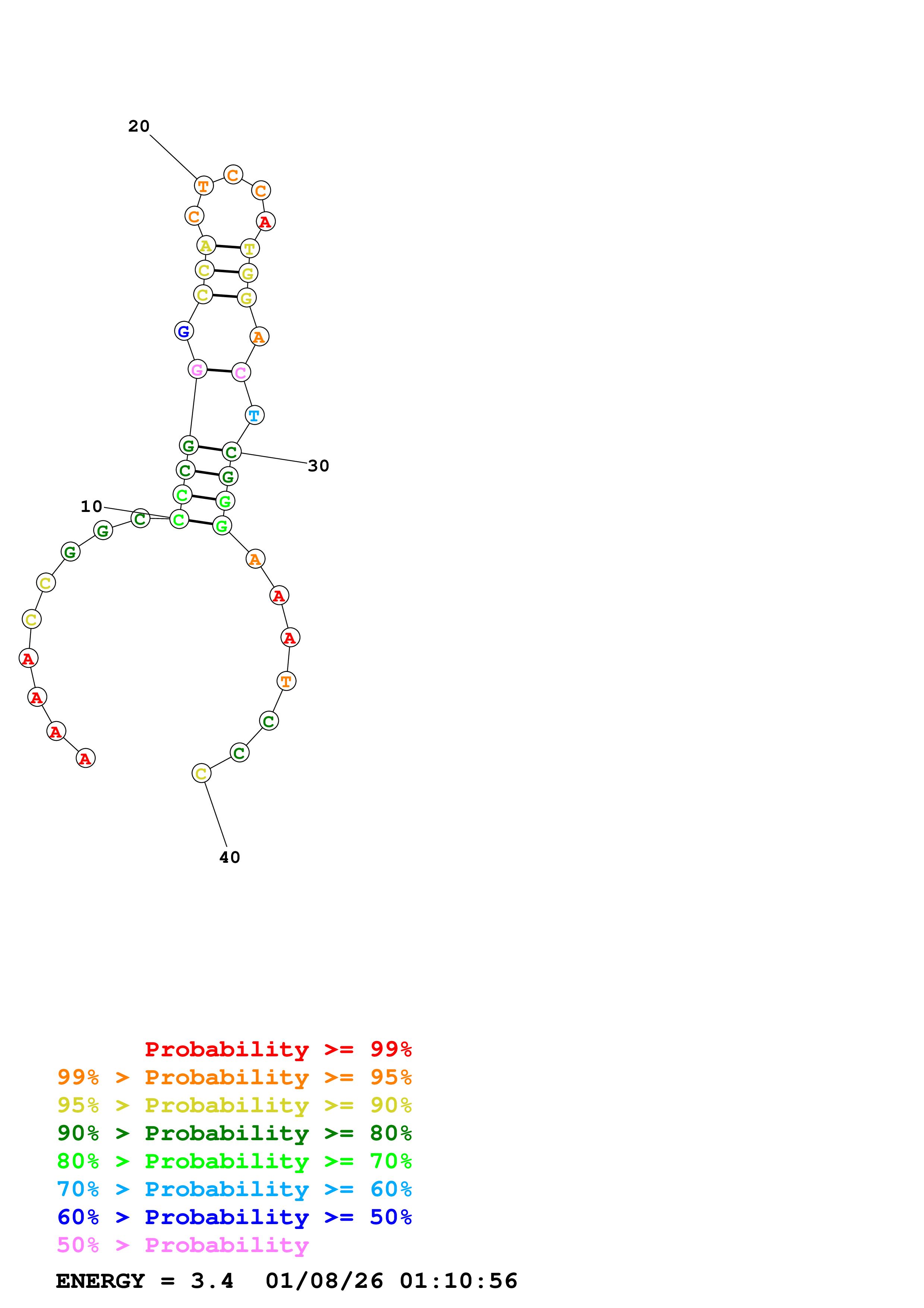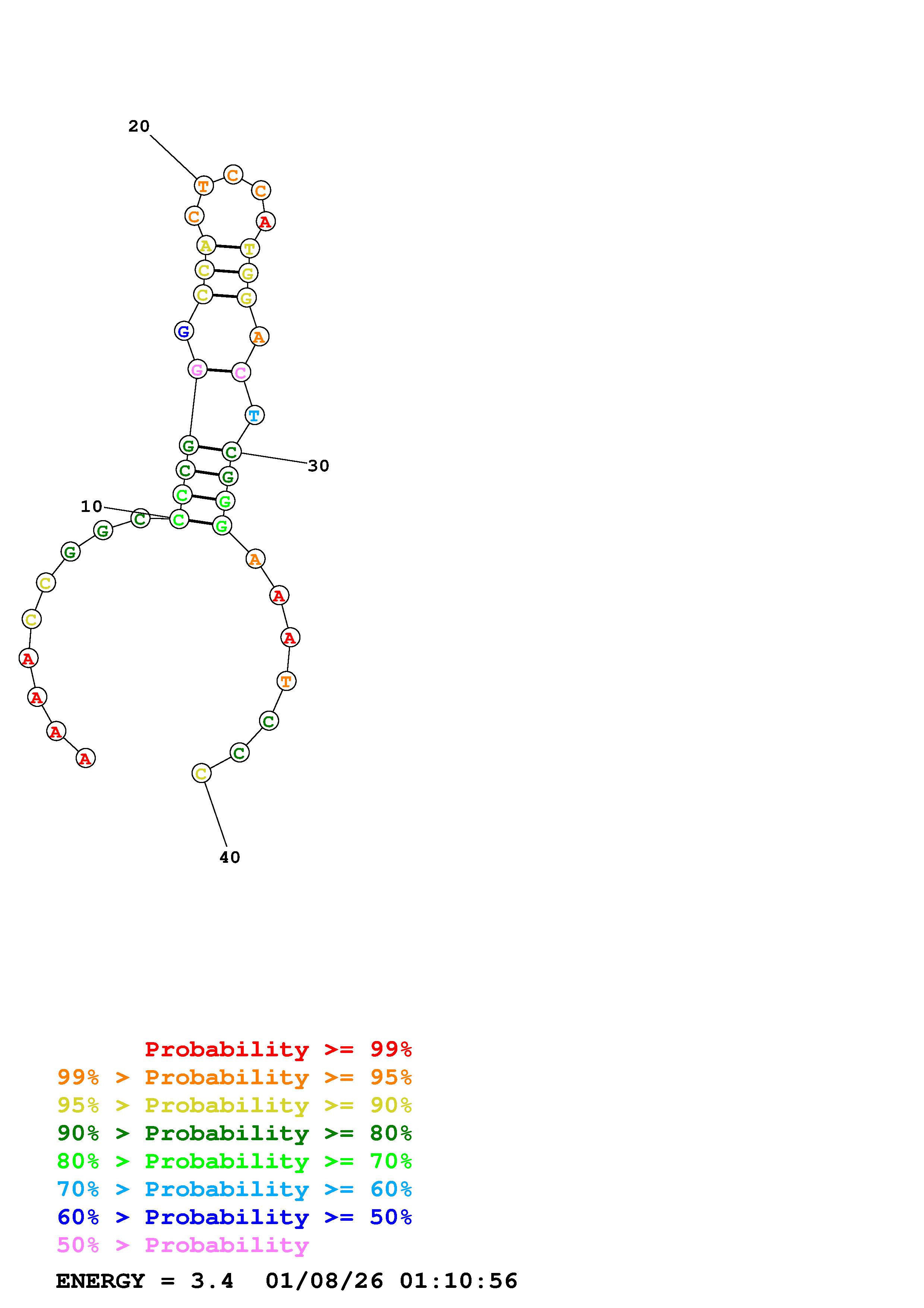 Fold Predict1.fasta Fold.ct --DNA --loop 30 --maximum 20 --percent 10 --temperature 310.15 --window 3
