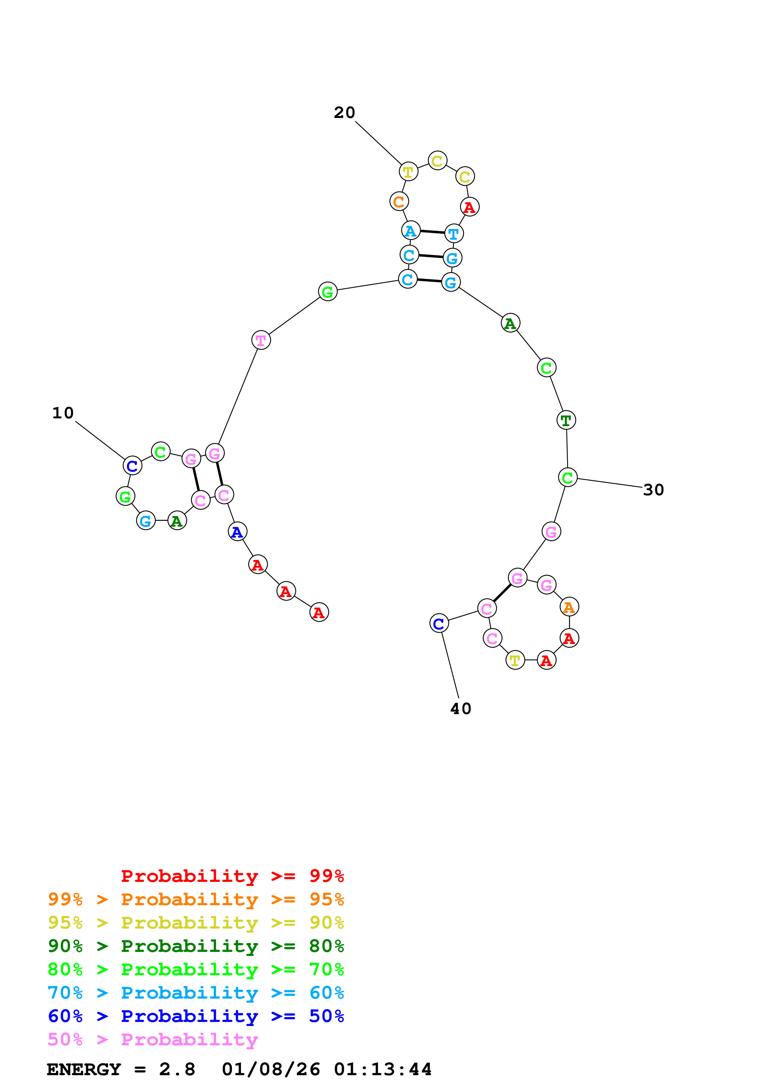 Fold Predict1.fasta Fold.ct --DNA --loop 30 --maximum 20 --percent 10 --temperature 310.15 --window 3