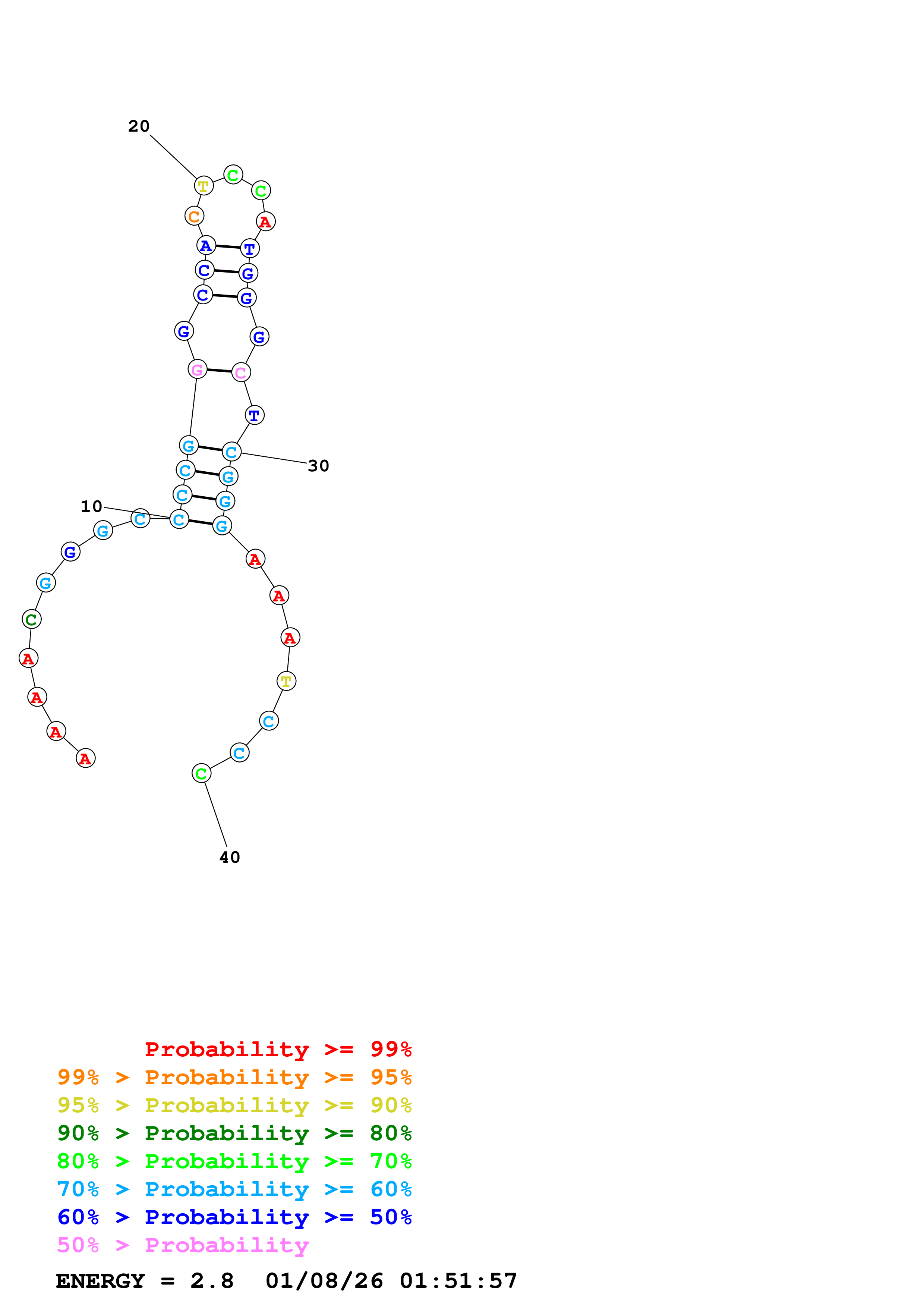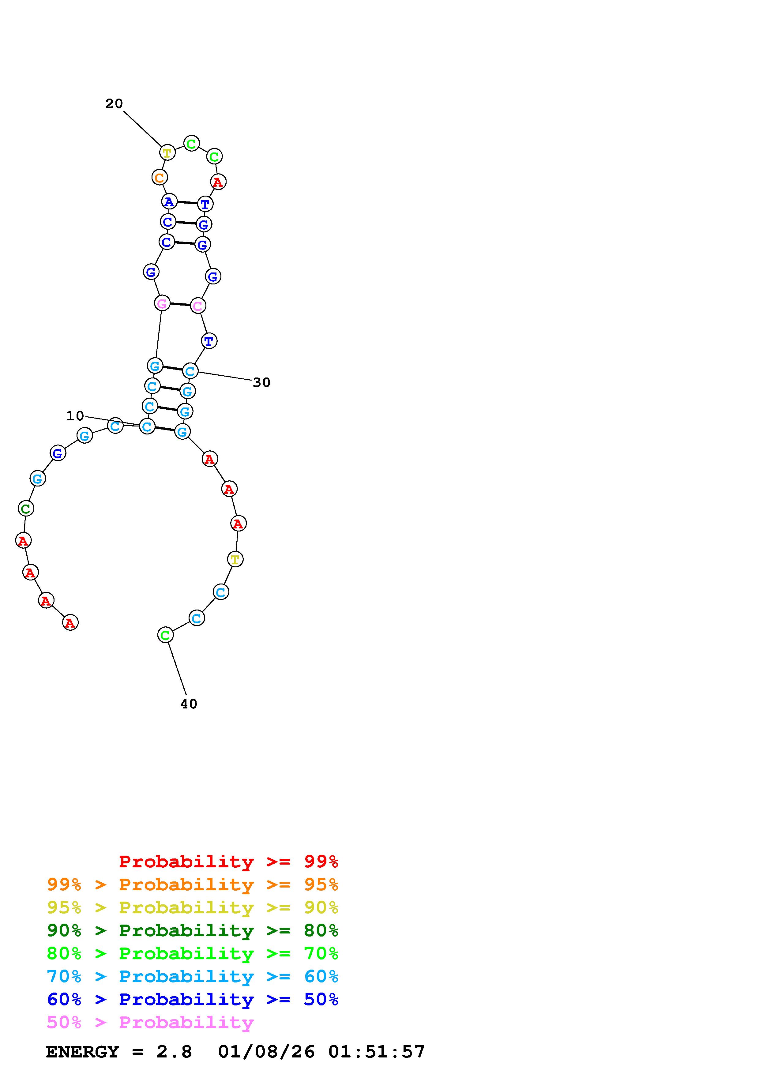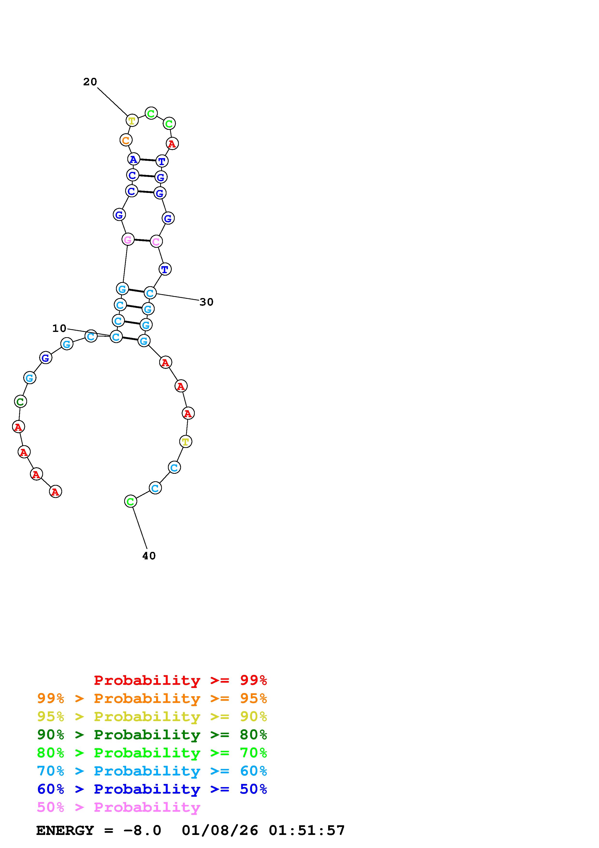 Fold Predict1.fasta Fold.ct --DNA --loop 30 --maximum 20 --percent 10 --temperature 310.15 --window 3