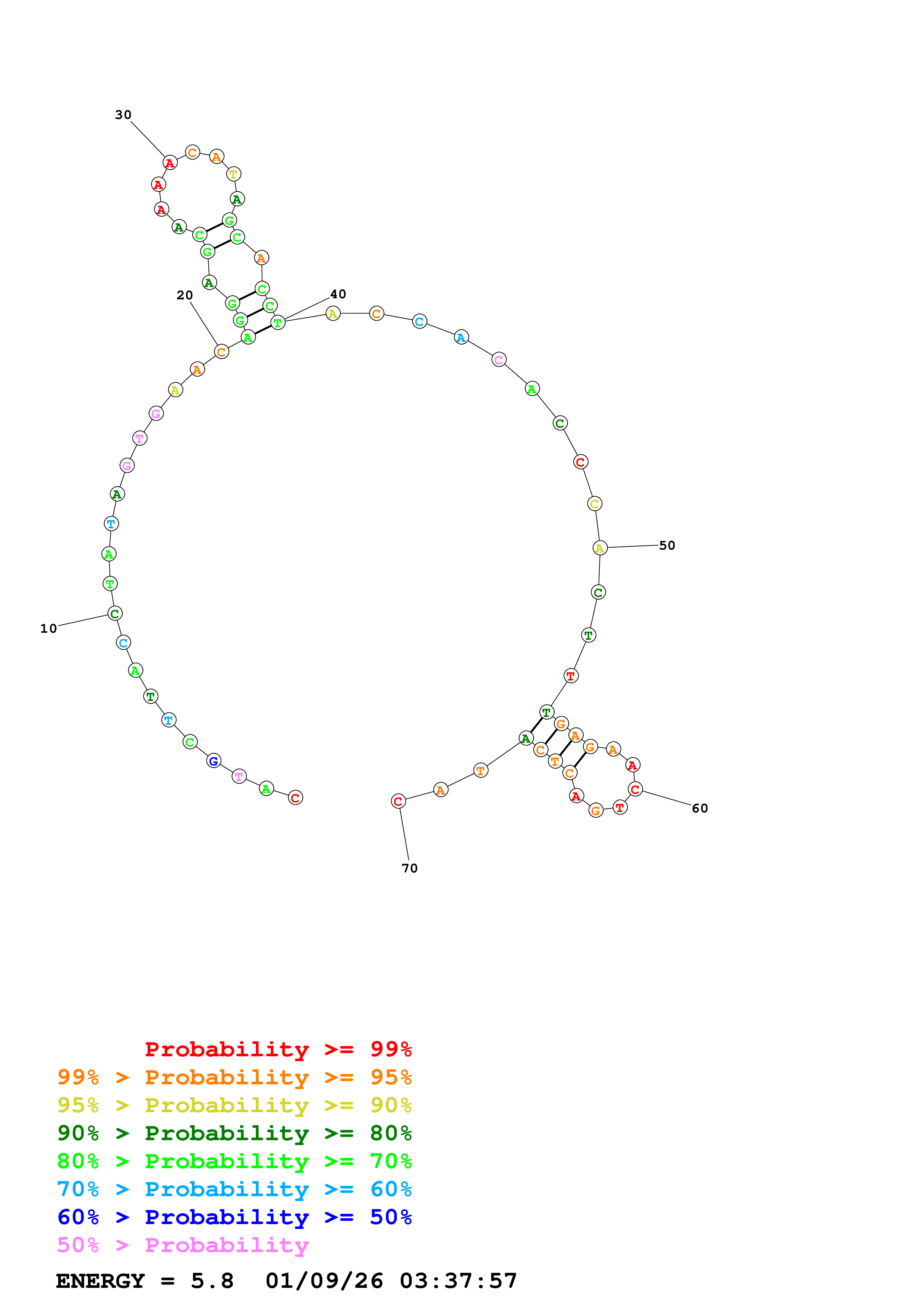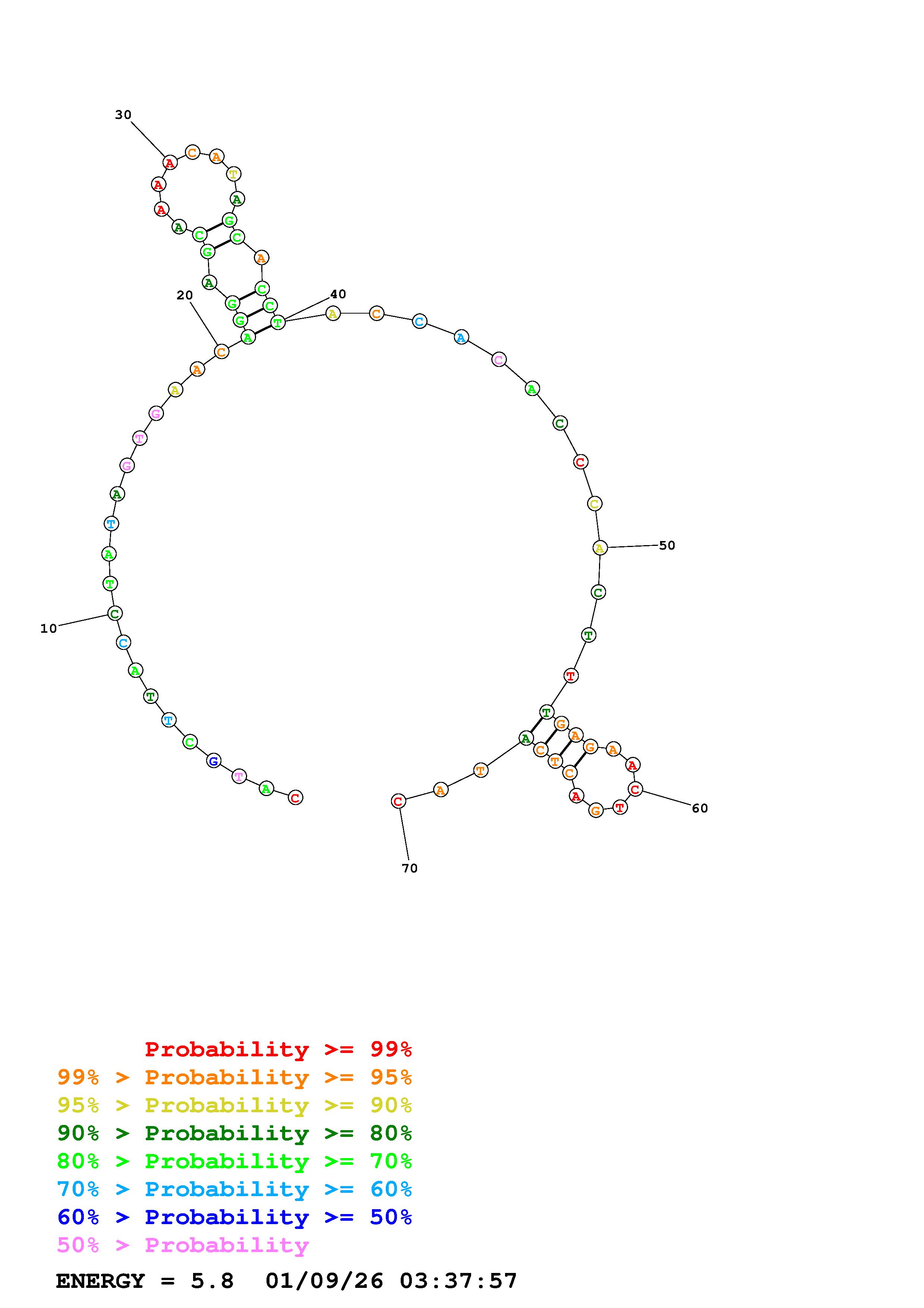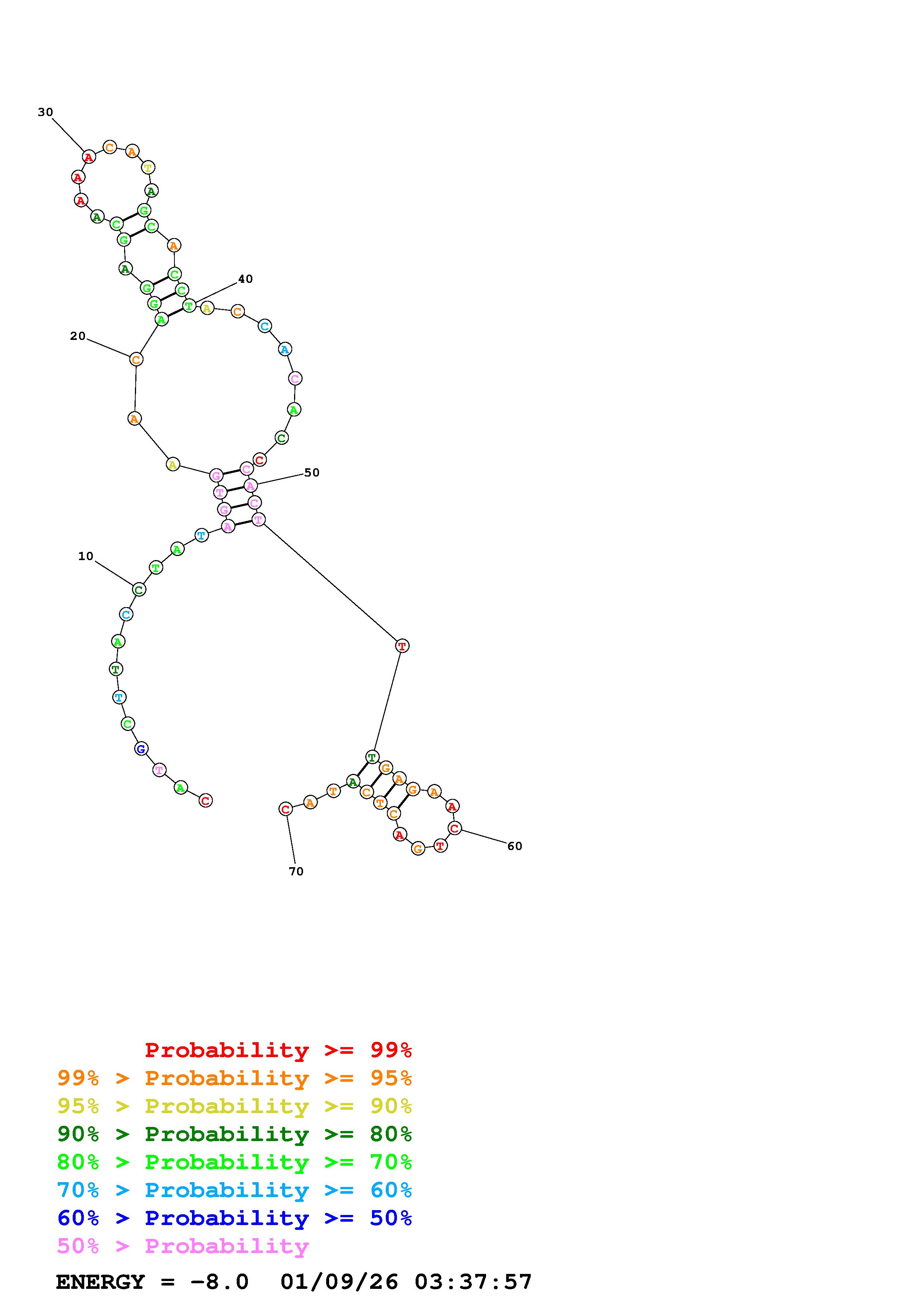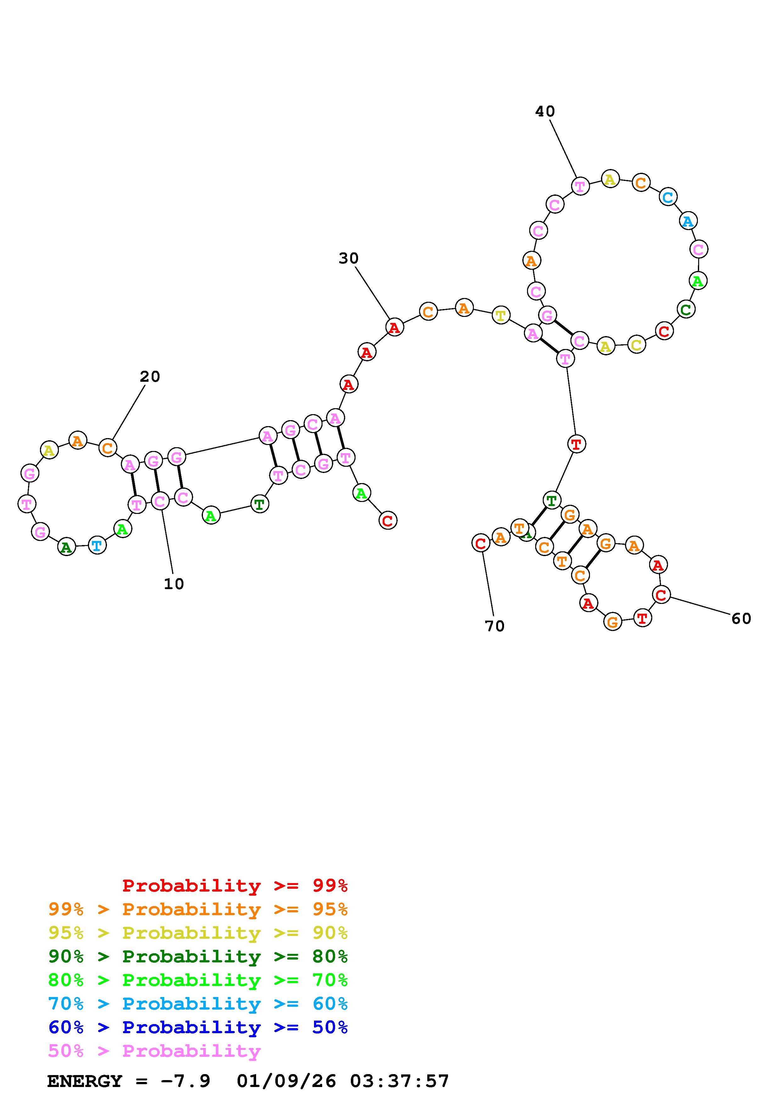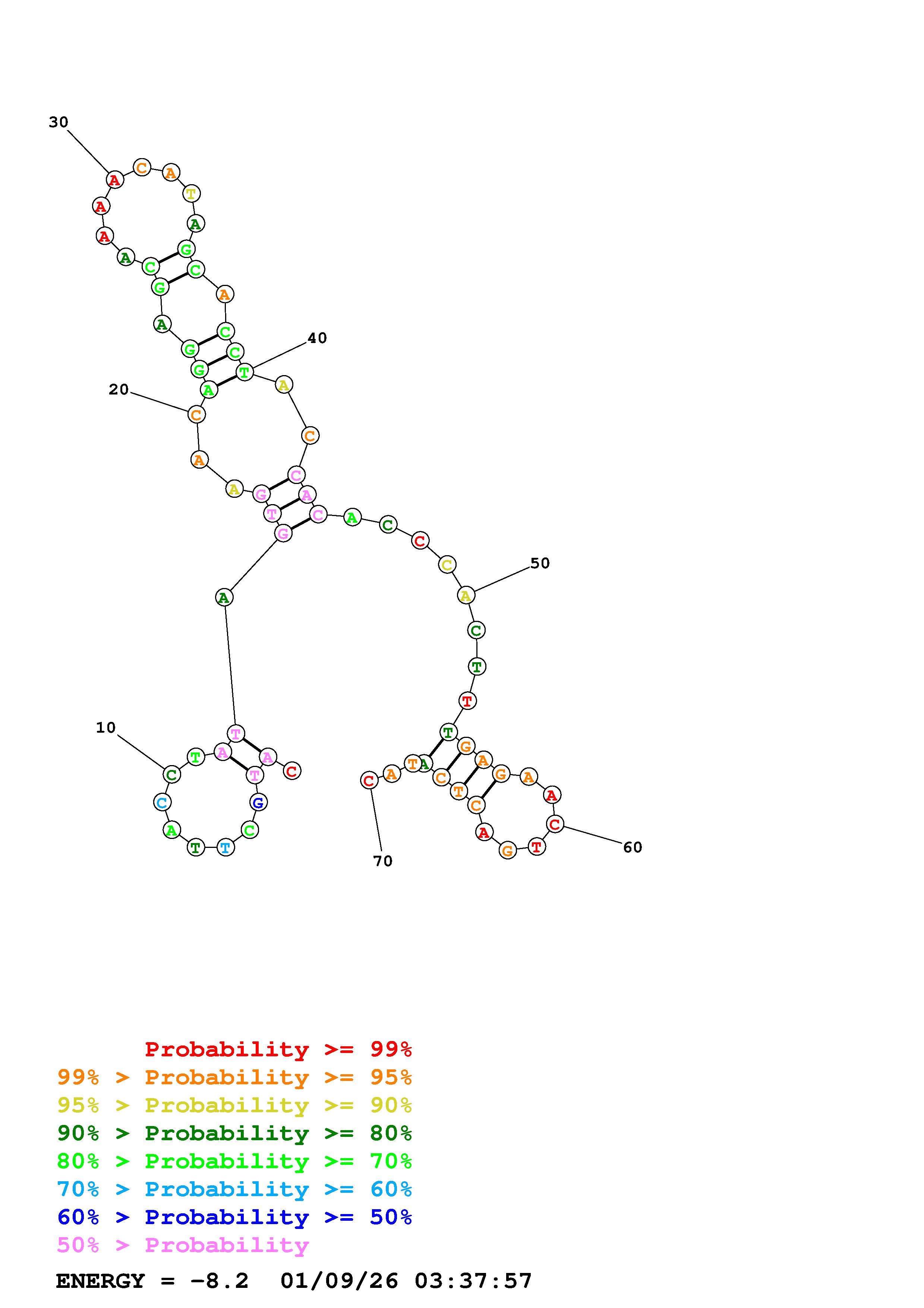 Fold Predict1.fasta Fold.ct --DNA --loop 30 --maximum 20 --percent 10 --temperature 298 --window 3