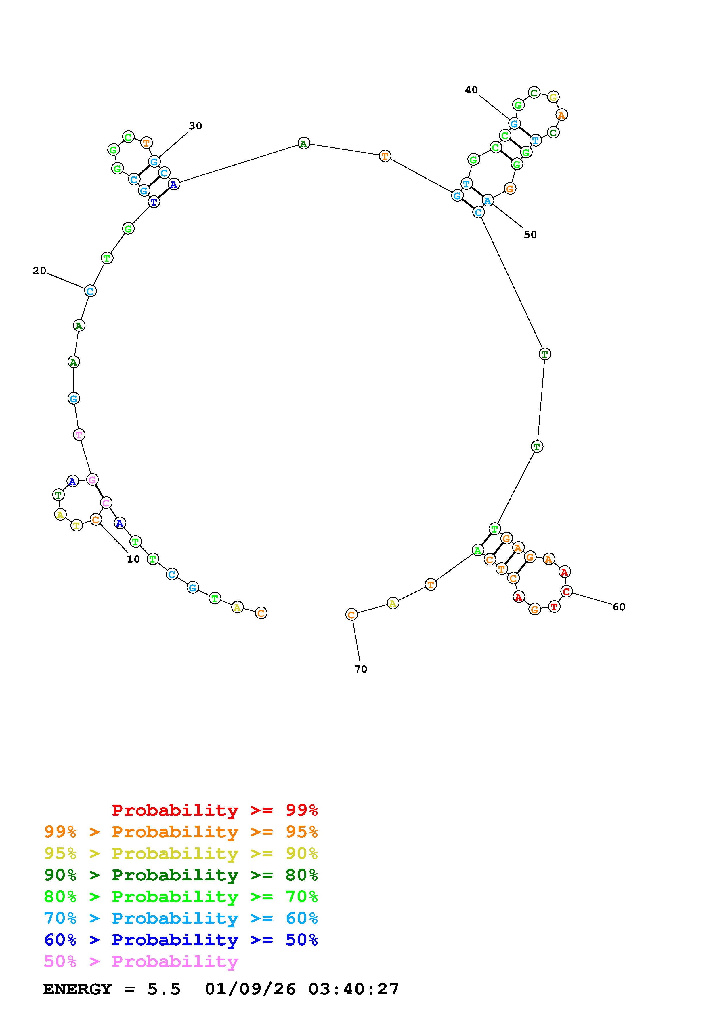Fold Predict1.fasta Fold.ct --DNA --loop 30 --maximum 20 --percent 10 --temperature 298 --window 3
