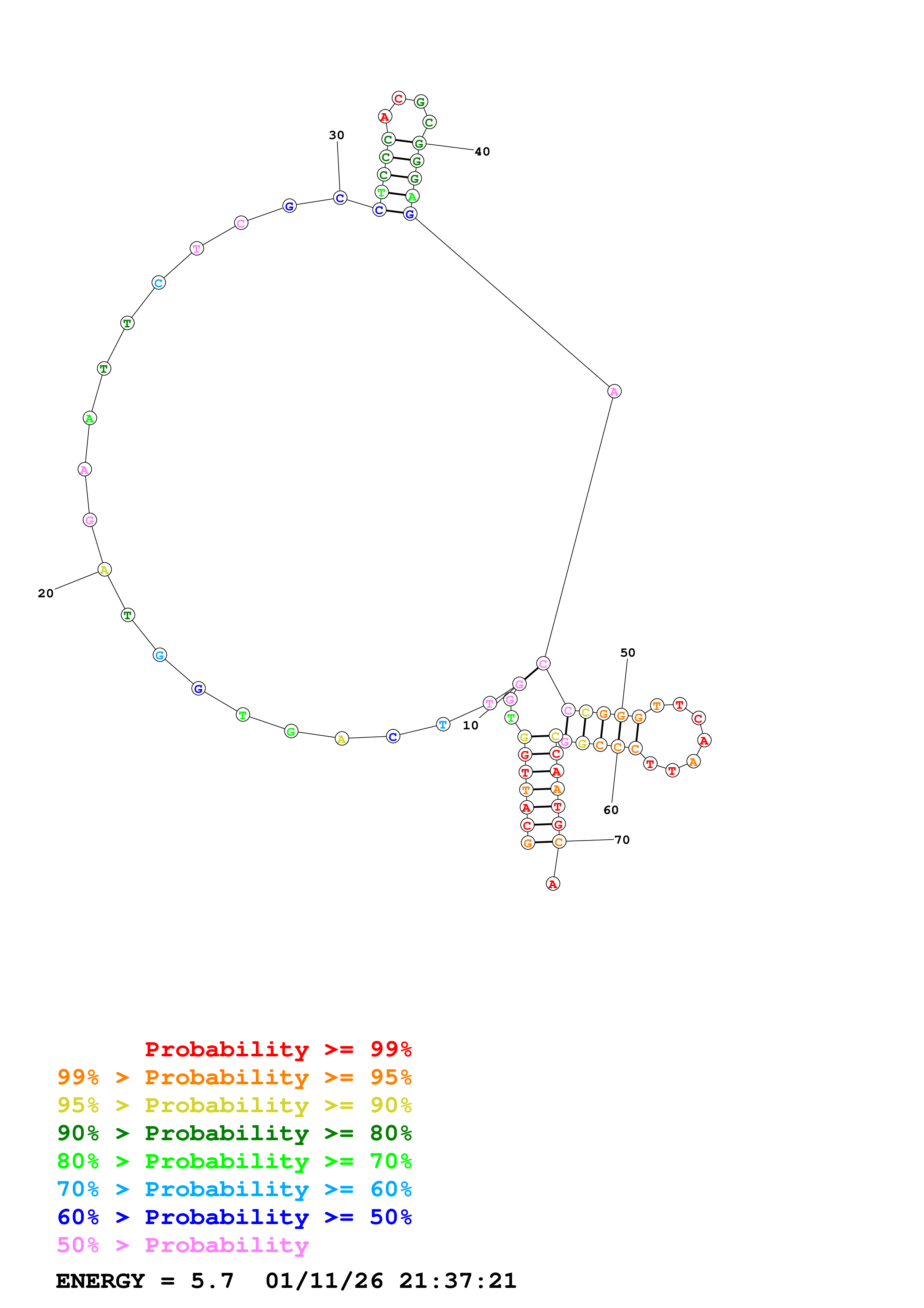 Fold Predict1.fasta Fold.ct --DNA --loop 30 --maximum 20 --percent 10 --temperature 310.15 --window 3