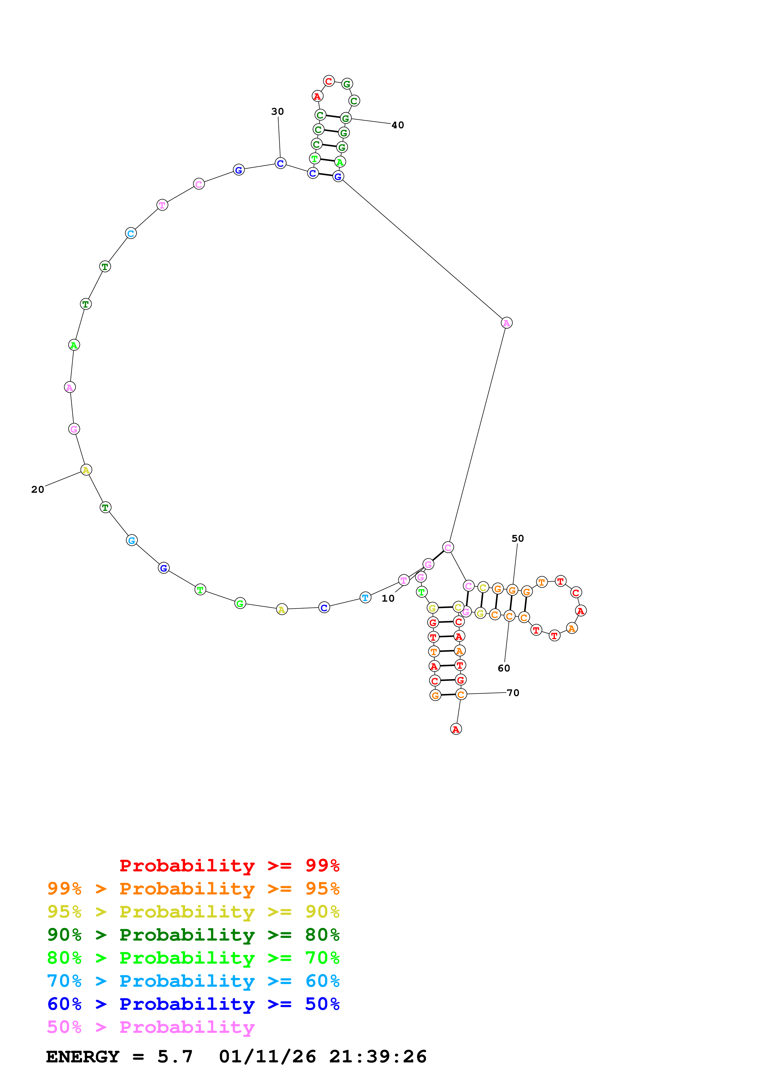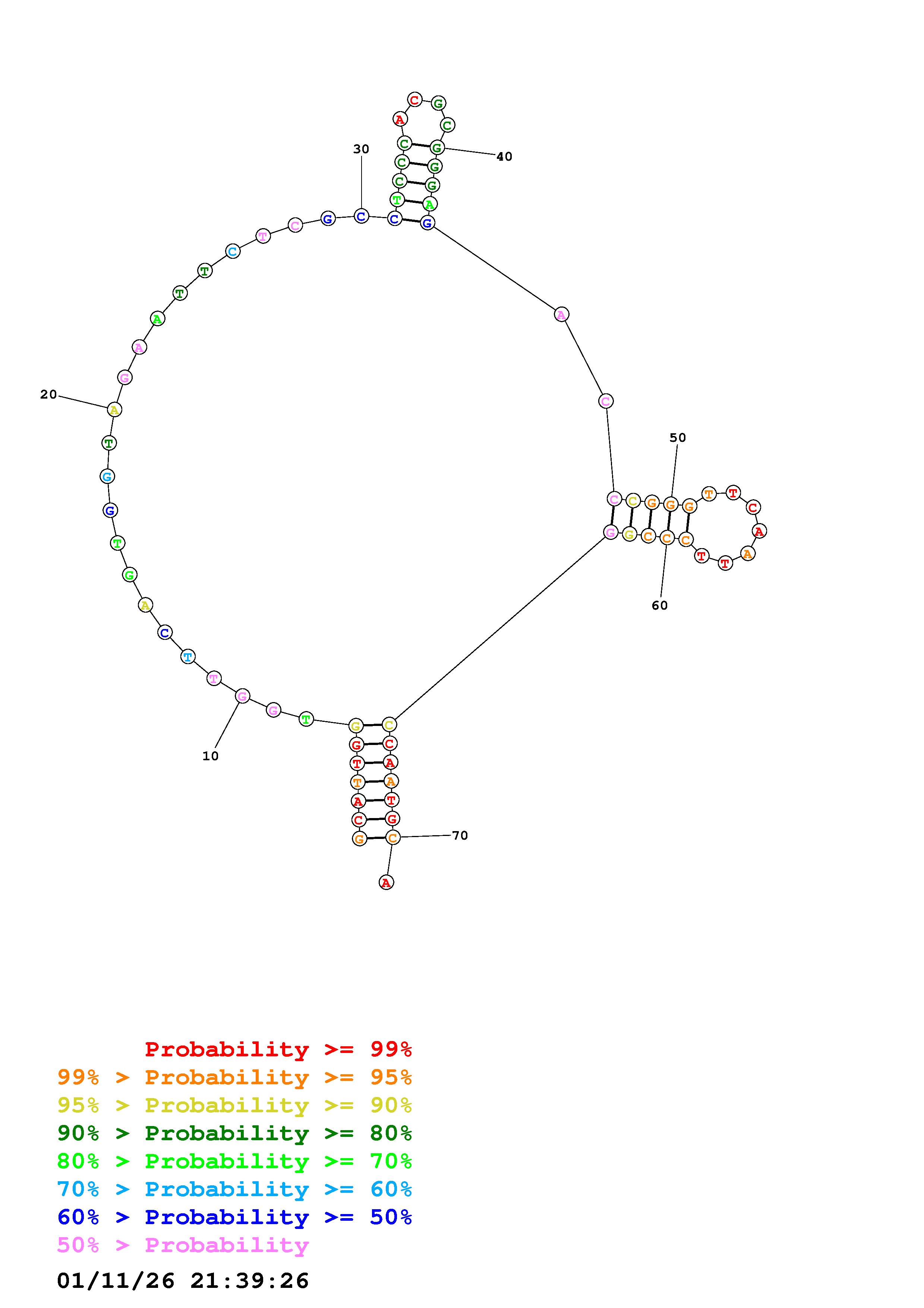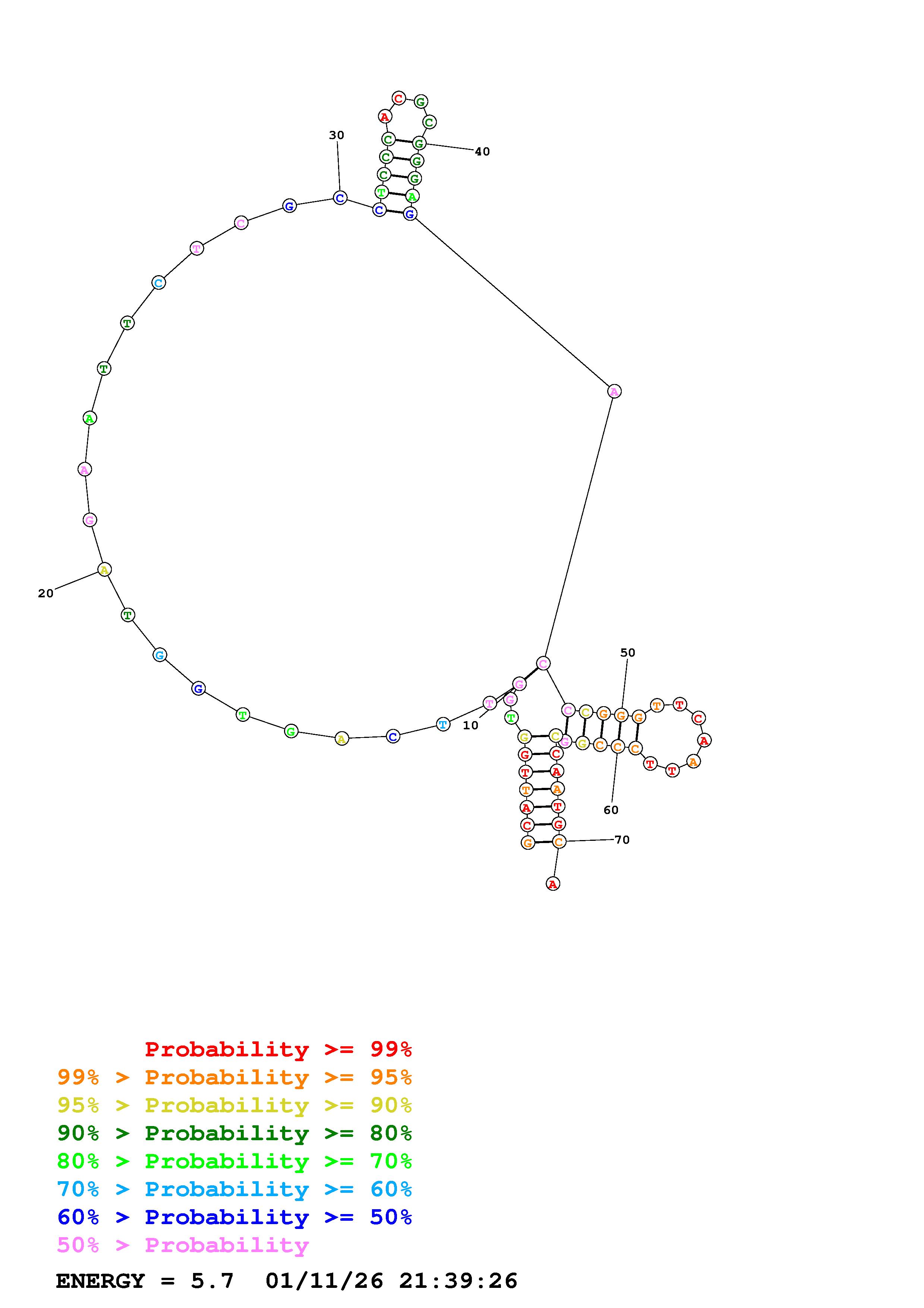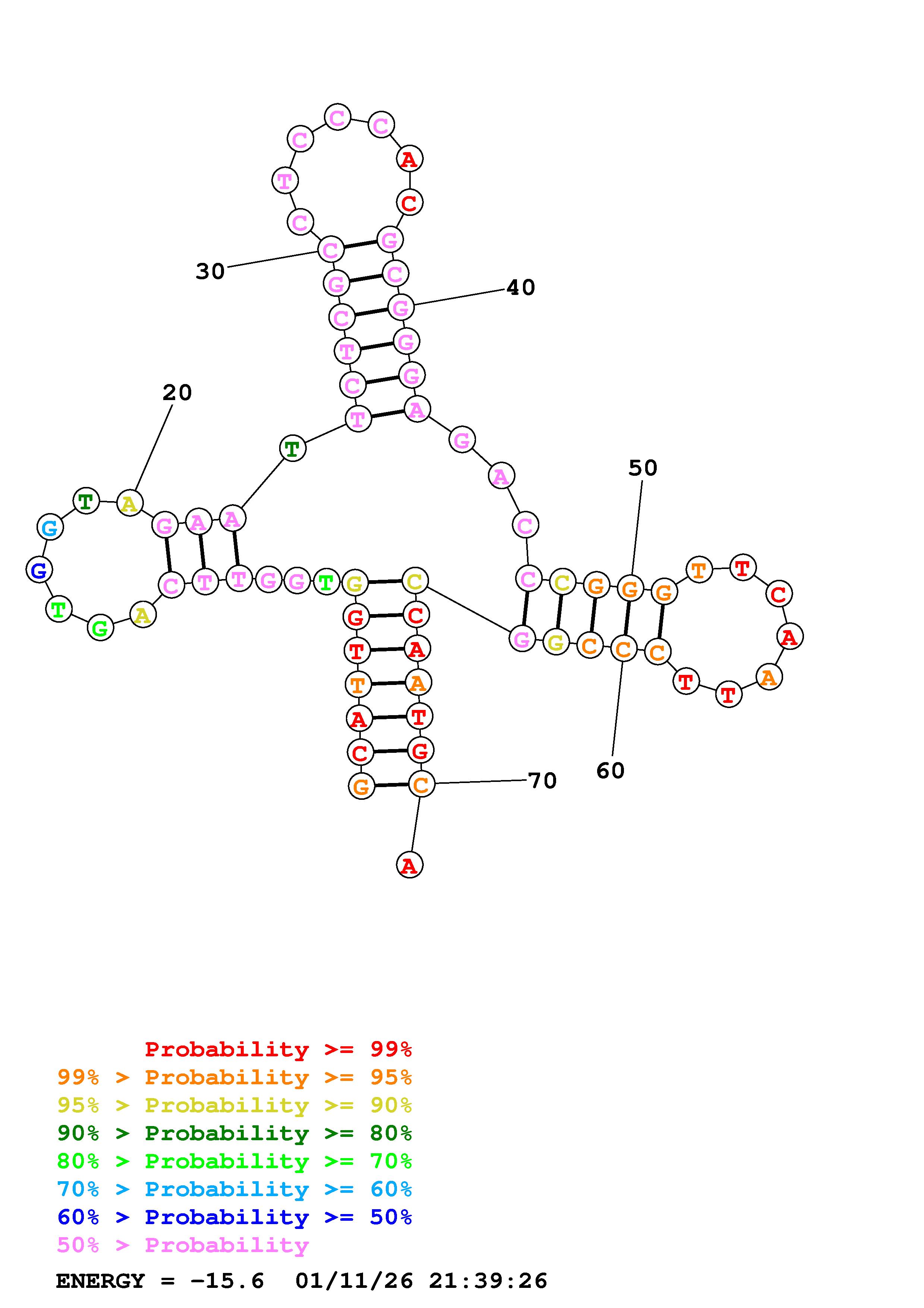 Fold Predict1.fasta Fold.ct --DNA --loop 30 --maximum 20 --percent 10 --temperature 310.15 --window 3