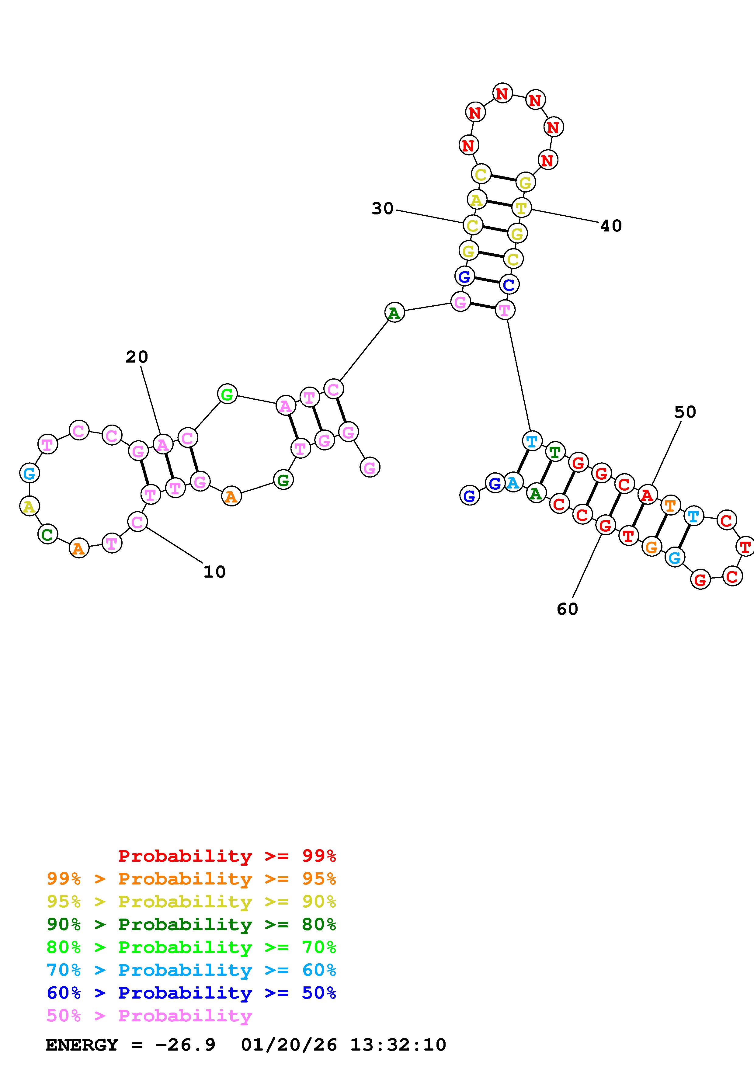 (Generate a structure or structures composed of highly probable base pairs. This is an alternative method for structure prediction that may have higher fidelity in structure prediction.)