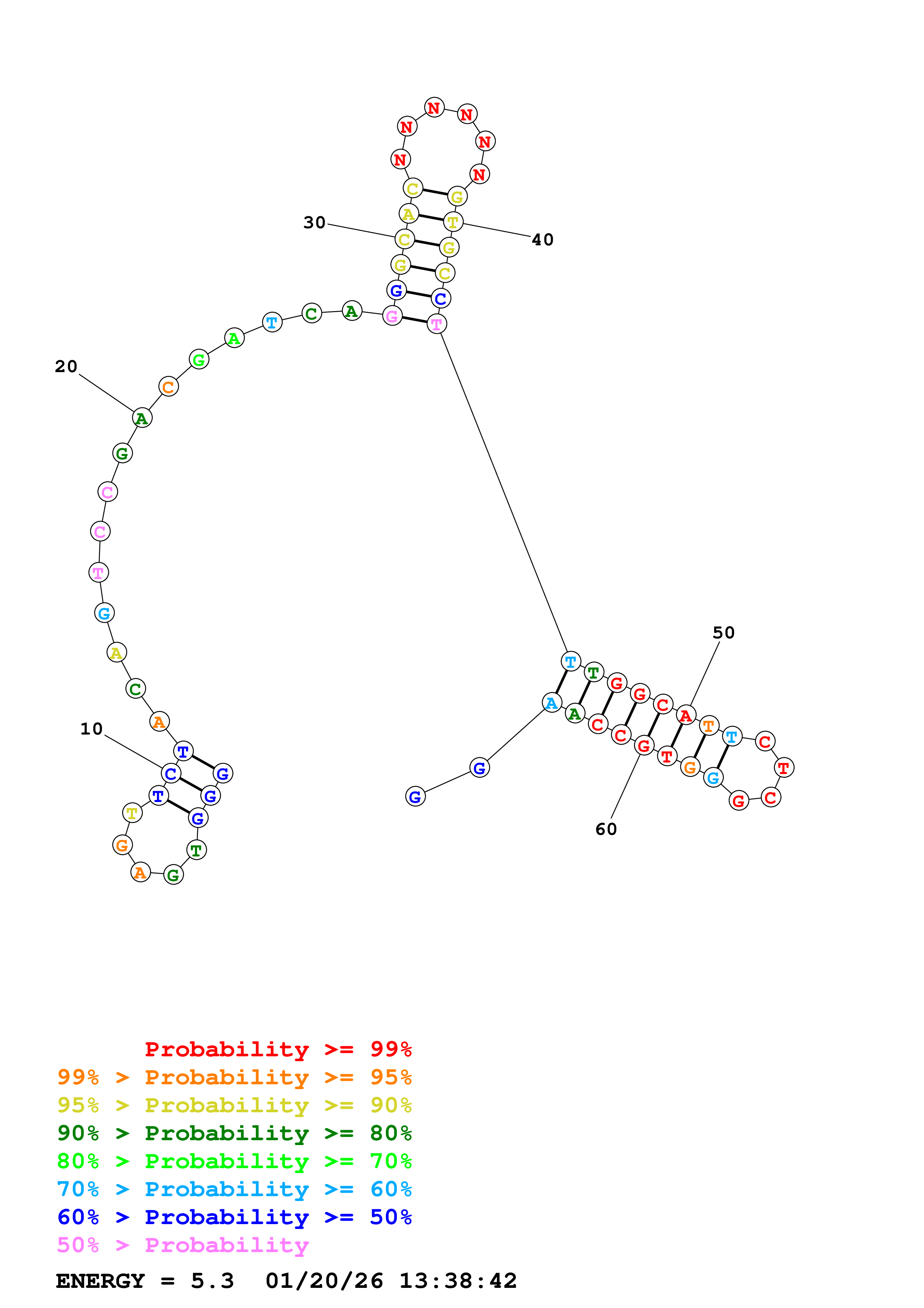(Generate a structure or structures composed of highly probable base pairs. This is an alternative method for structure prediction that may have higher fidelity in structure prediction.)