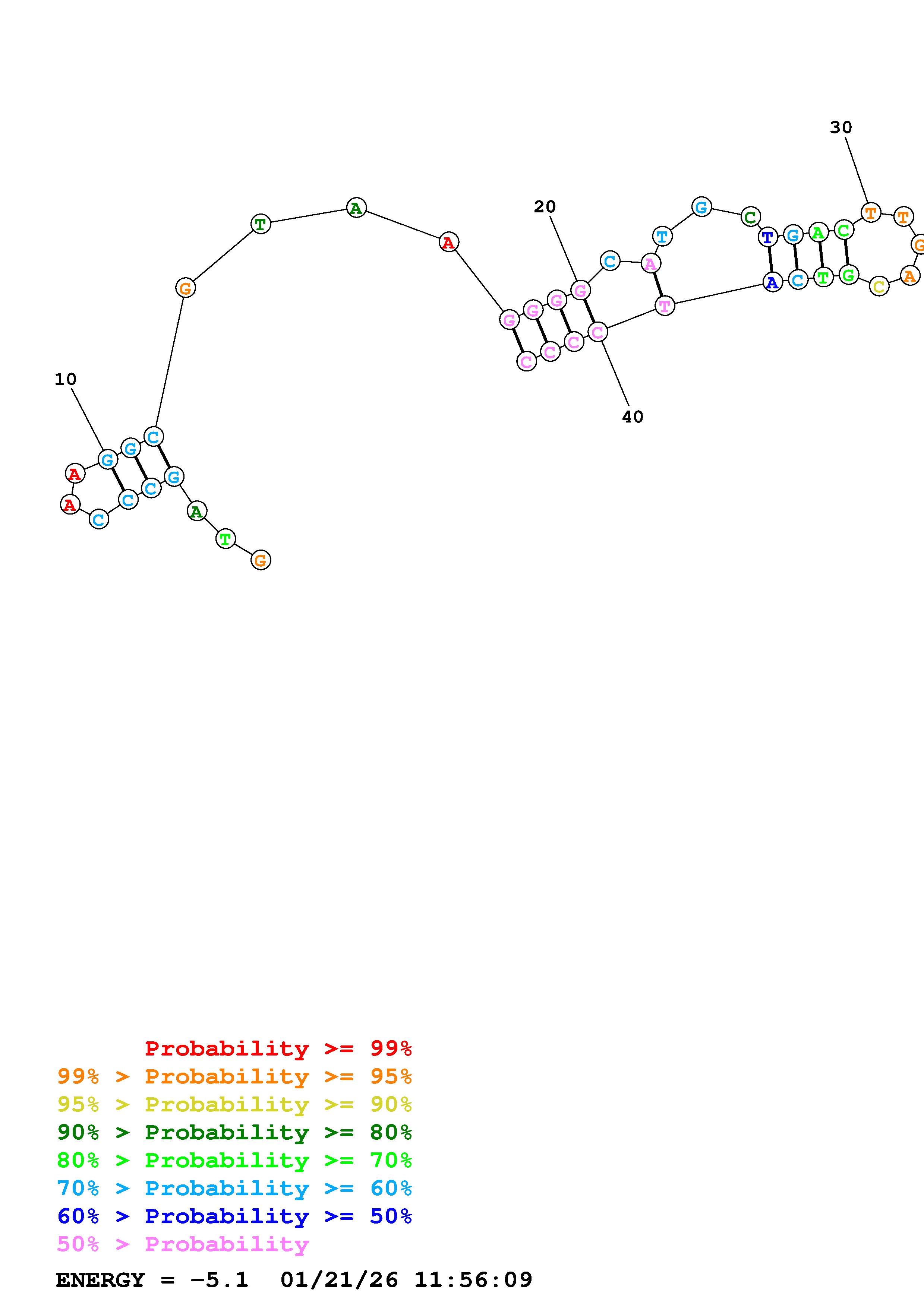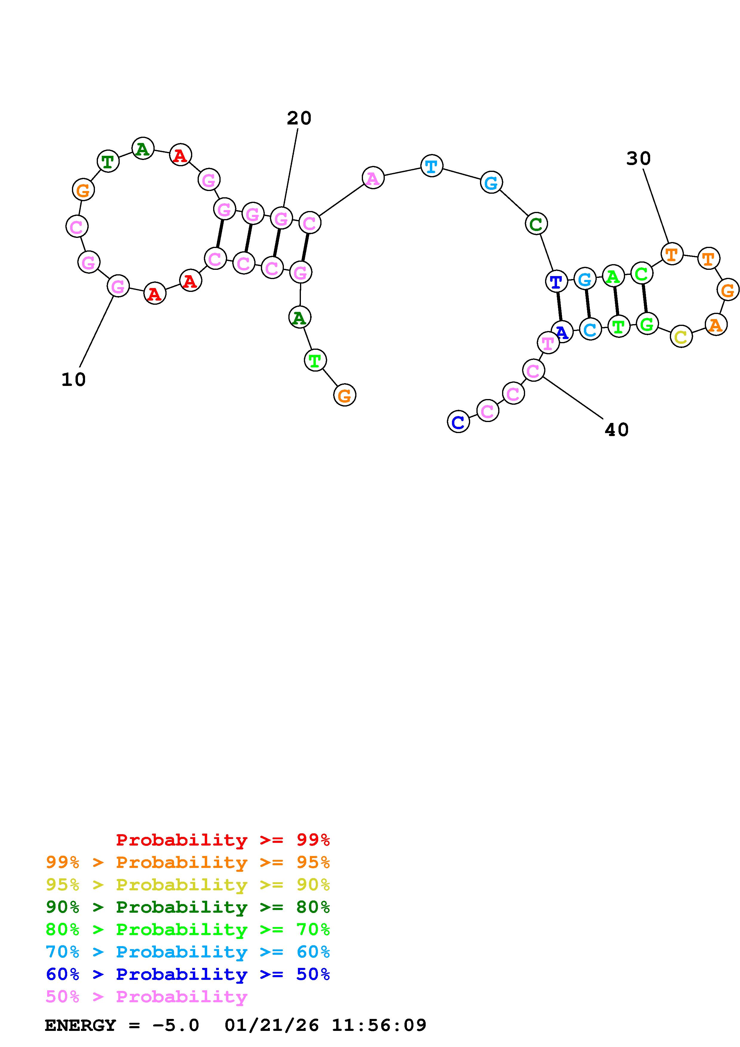 Fold Predict1.fasta Fold.ct --DNA --loop 30 --maximum 20 --percent 10 --temperature 310.15 --window 3