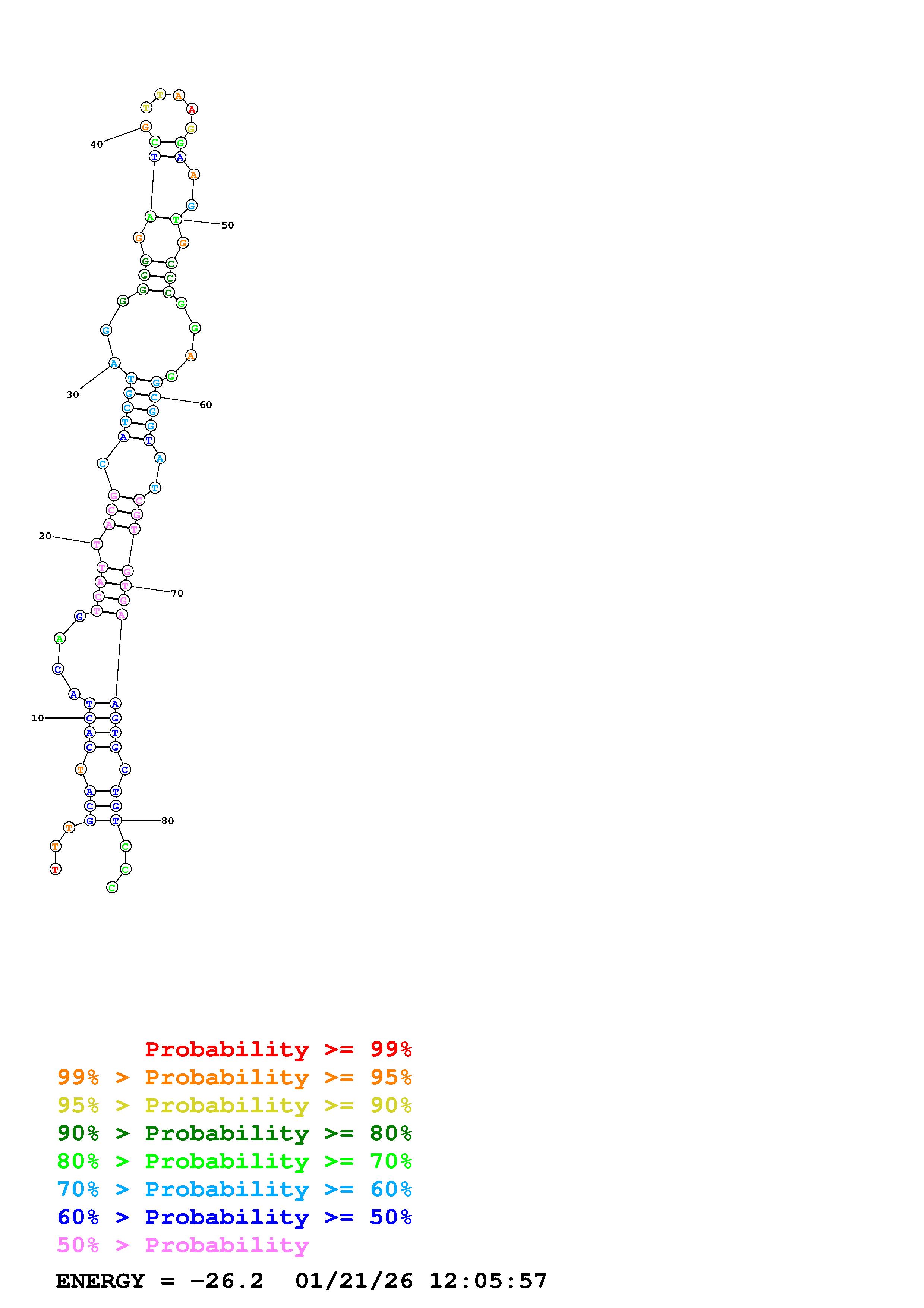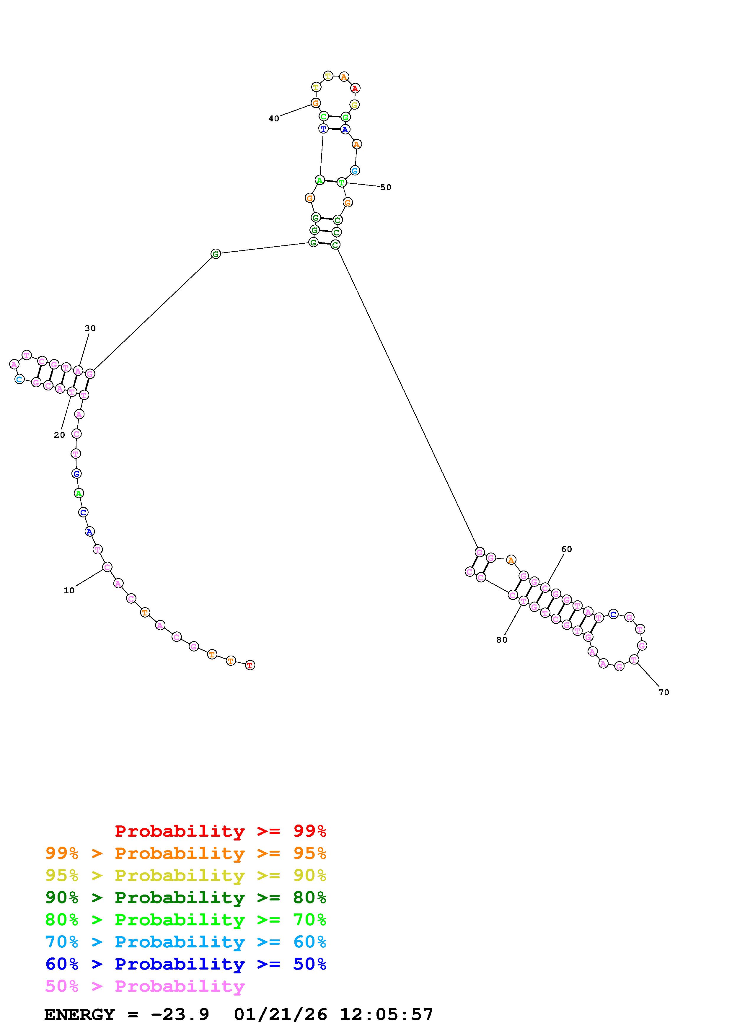 Fold Predict1.fasta Fold.ct --loop 30 --maximum 20 --percent 10 --temperature 298 --window 3
