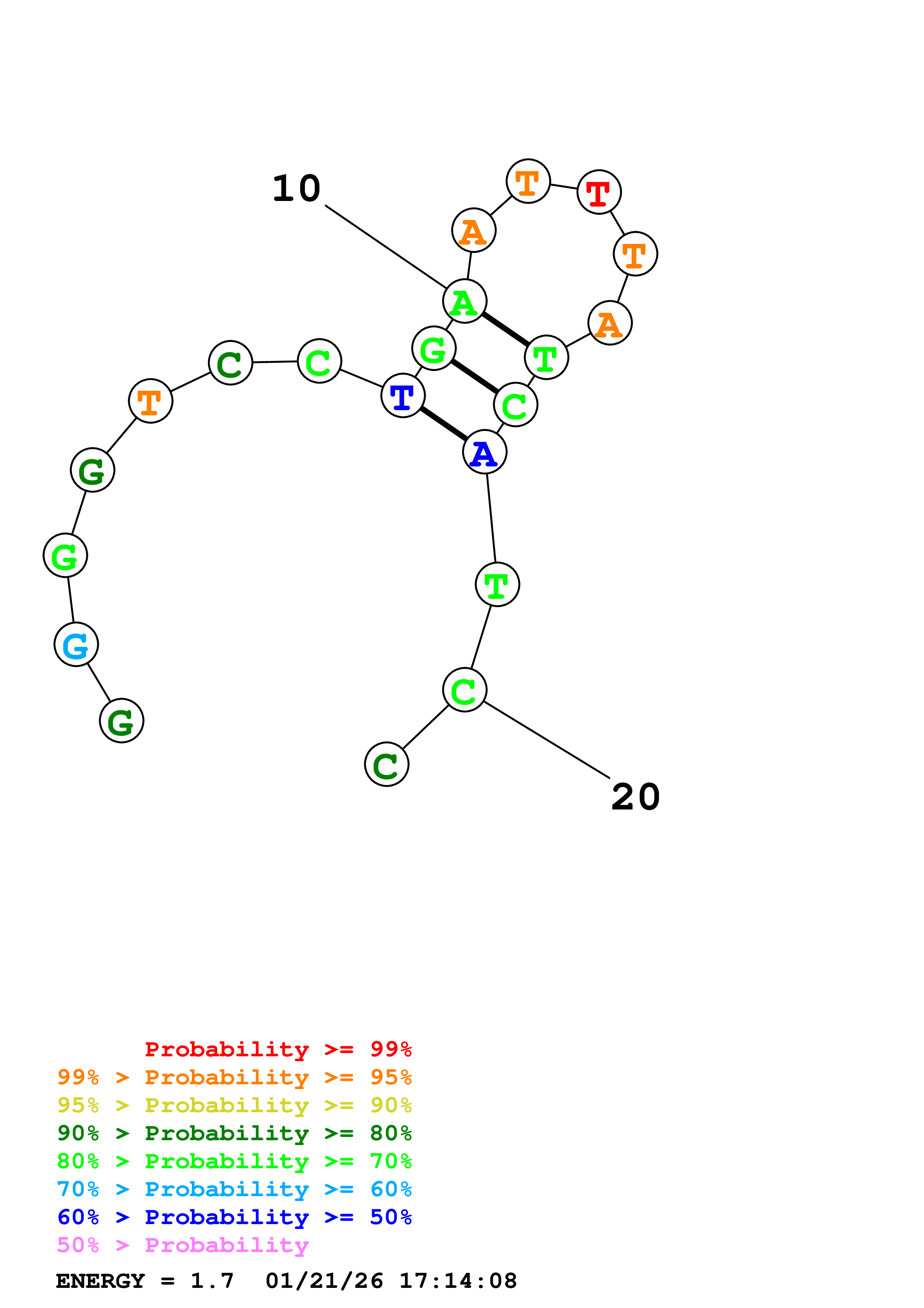 (Generate a structure or structures composed of highly probable base pairs. This is an alternative method for structure prediction that may have higher fidelity in structure prediction.)