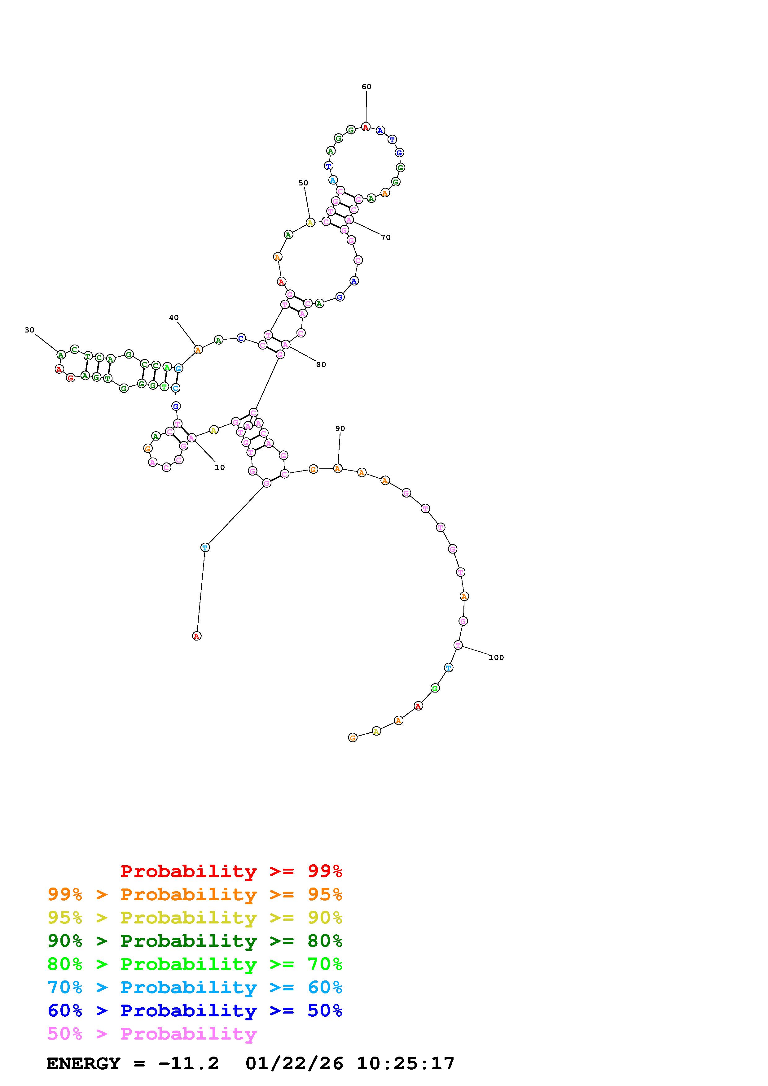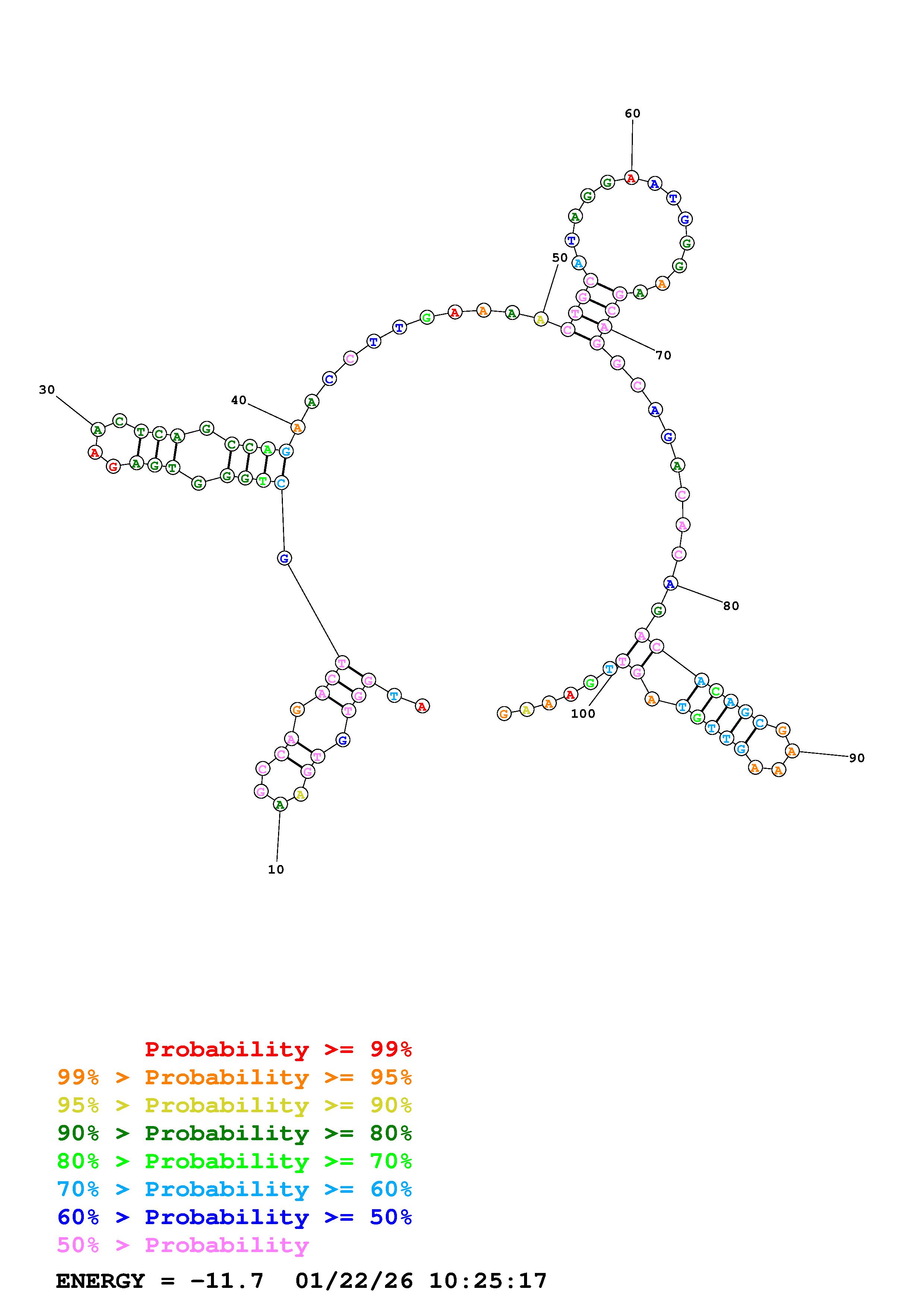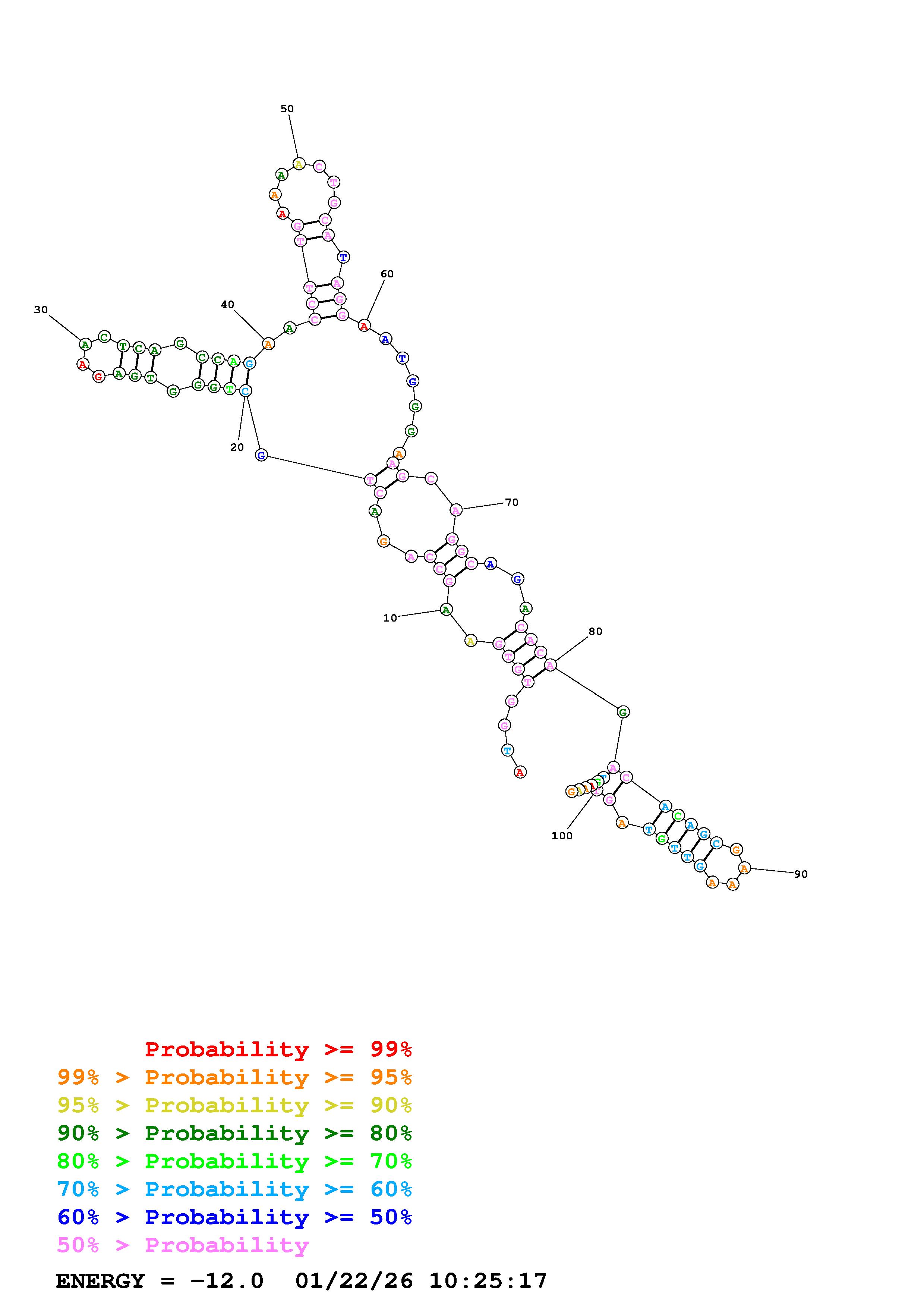 Fold Predict1.fasta Fold.ct --DNA --loop 30 --maximum 20 --percent 10 --temperature 310.15 --window 3