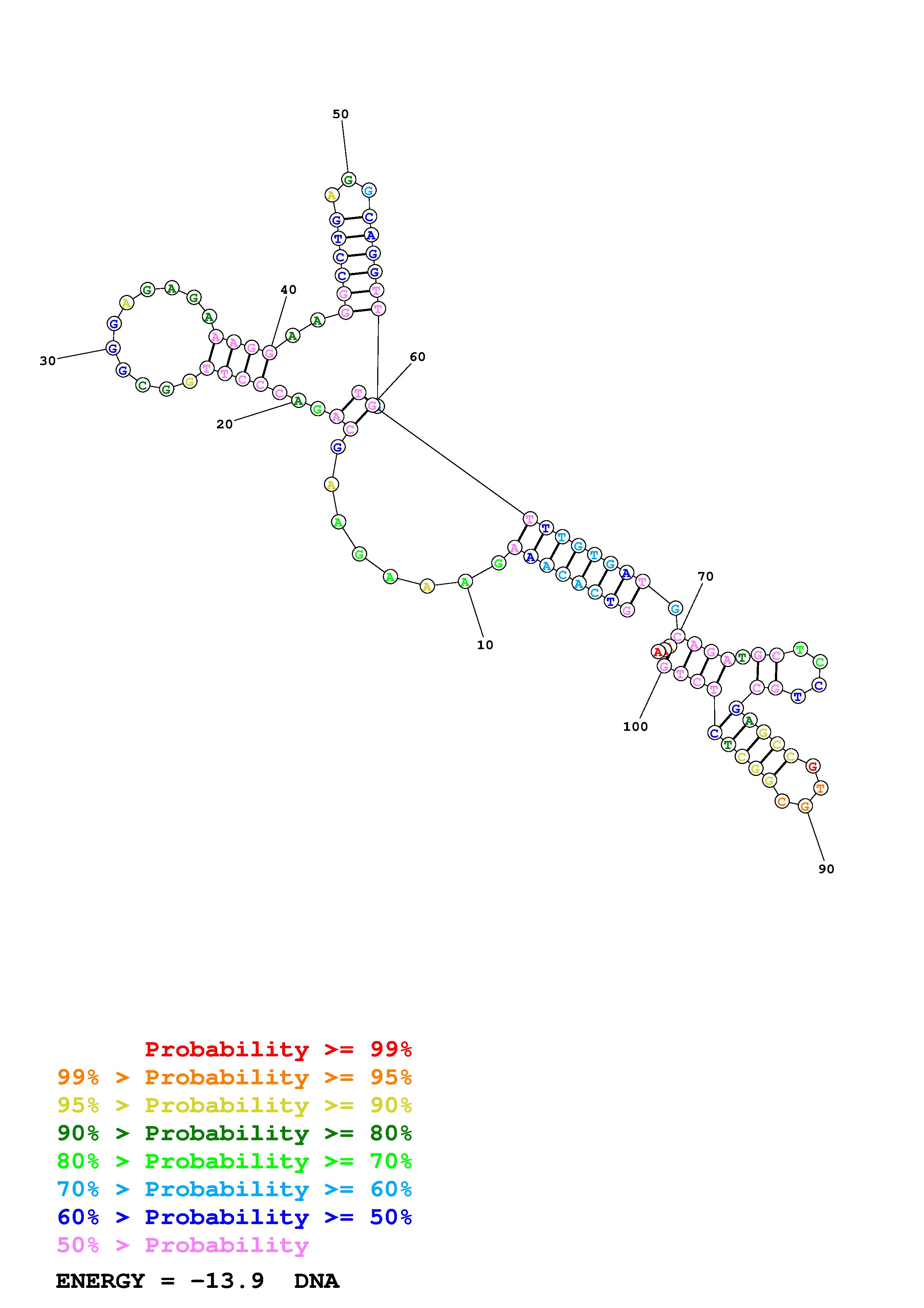 Fold Predict1.fasta Fold.ct --DNA --loop 30 --maximum 20 --percent 10 --temperature 310.15 --window 3