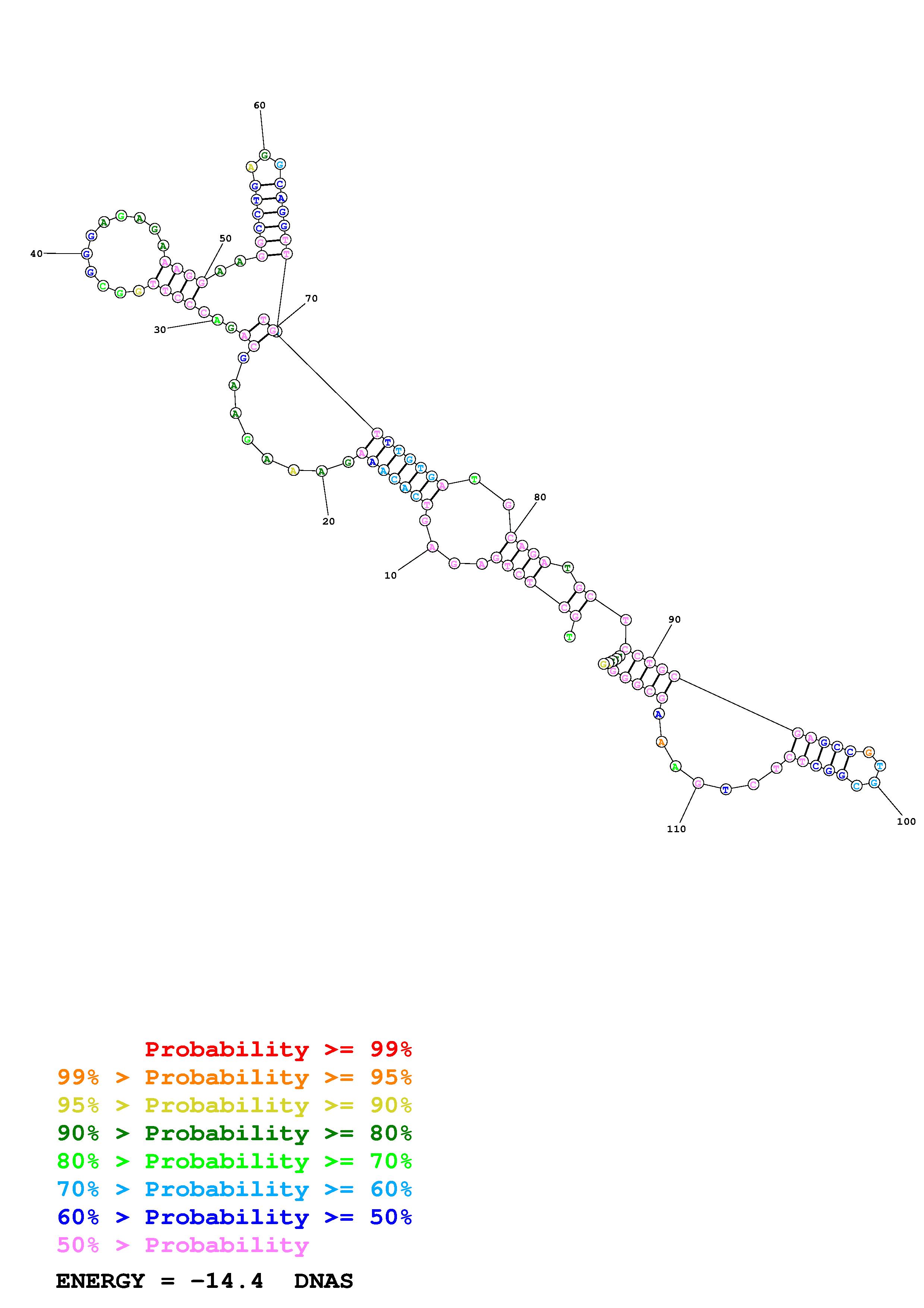 Fold Predict1.fasta Fold.ct --DNA --loop 30 --maximum 20 --percent 10 --temperature 310.15 --window 3